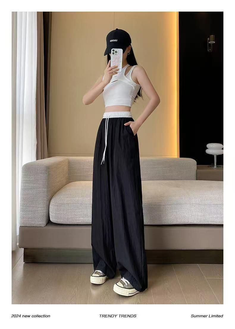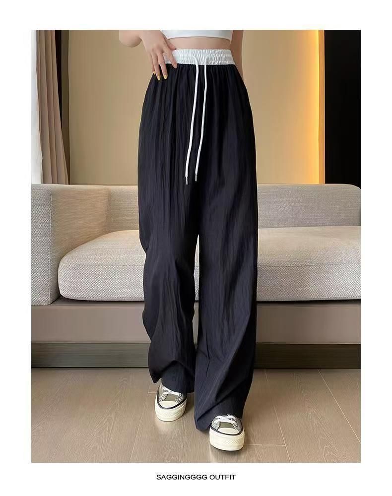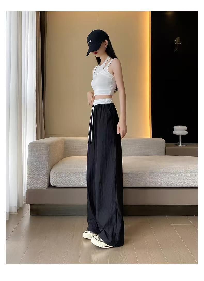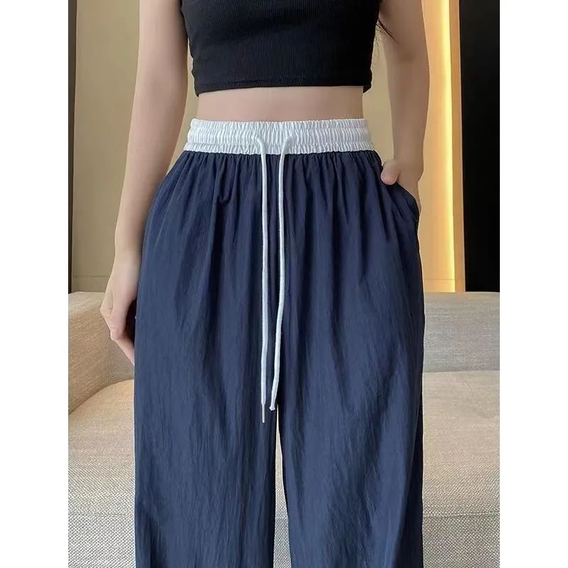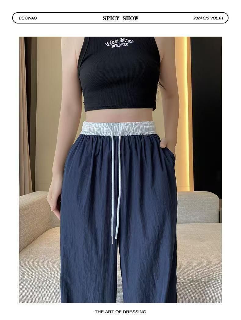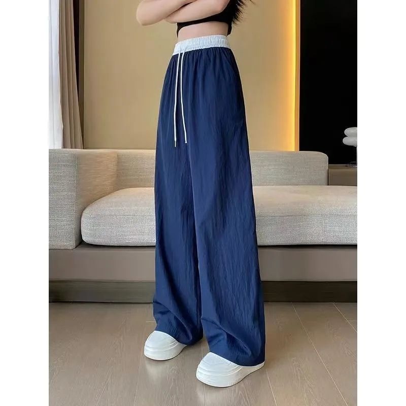 MY15723# 外贸爆款藏青工装直筒裤女春季薄款2026新款宽松休闲撞色运动裤子女裝貨源服裝批發