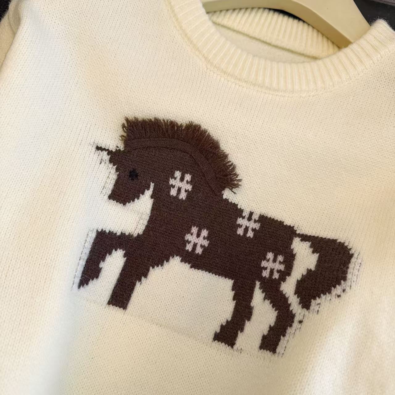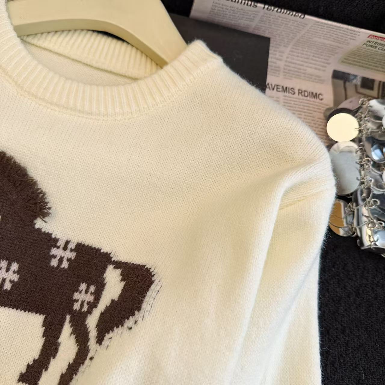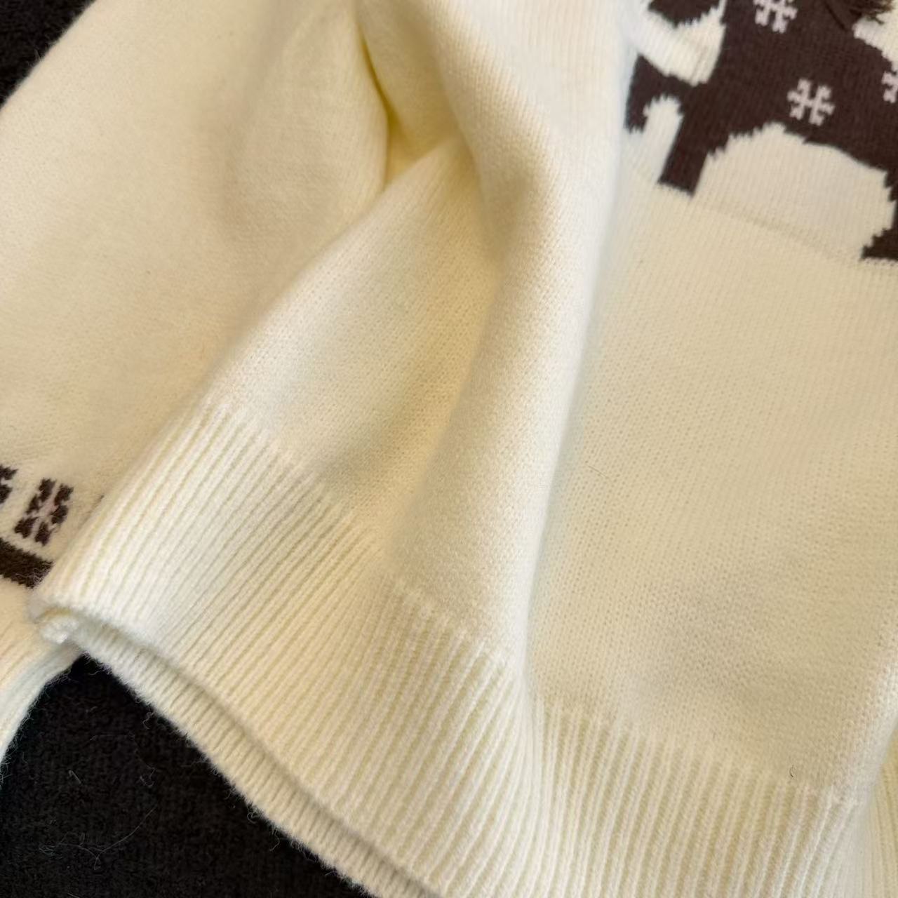 MY15730# 费尔岛冬日白色小鹿套头毛衣女秋冬季加厚提花针织上衣chic女裝貨源服裝批發