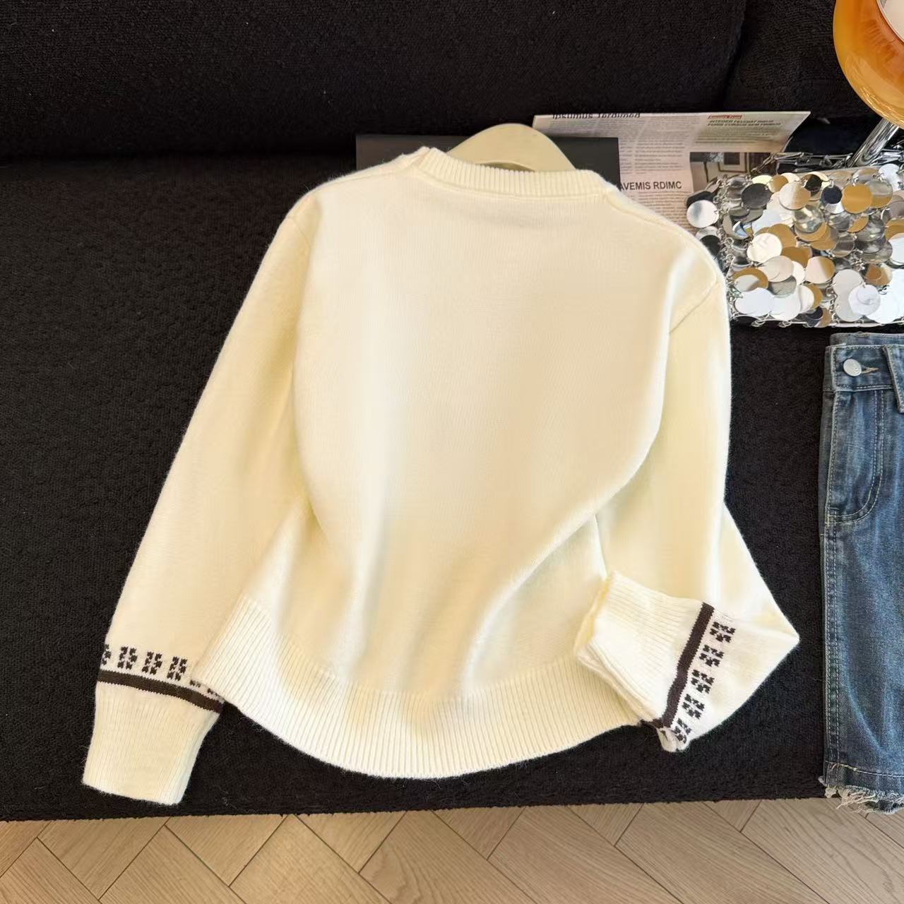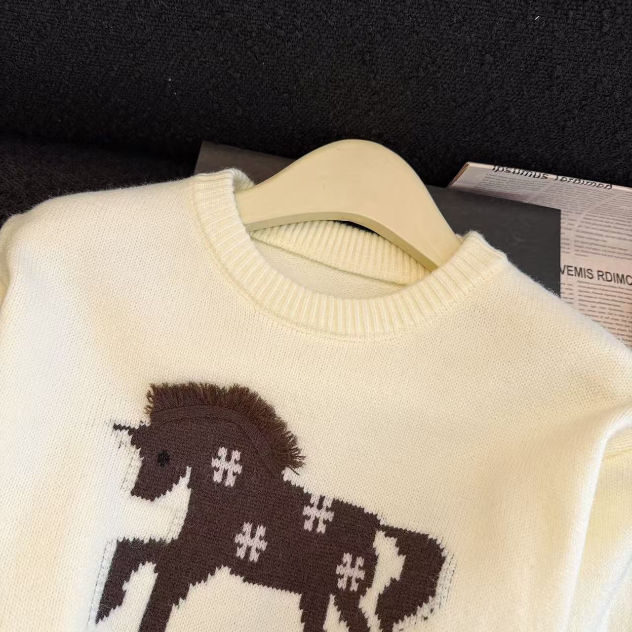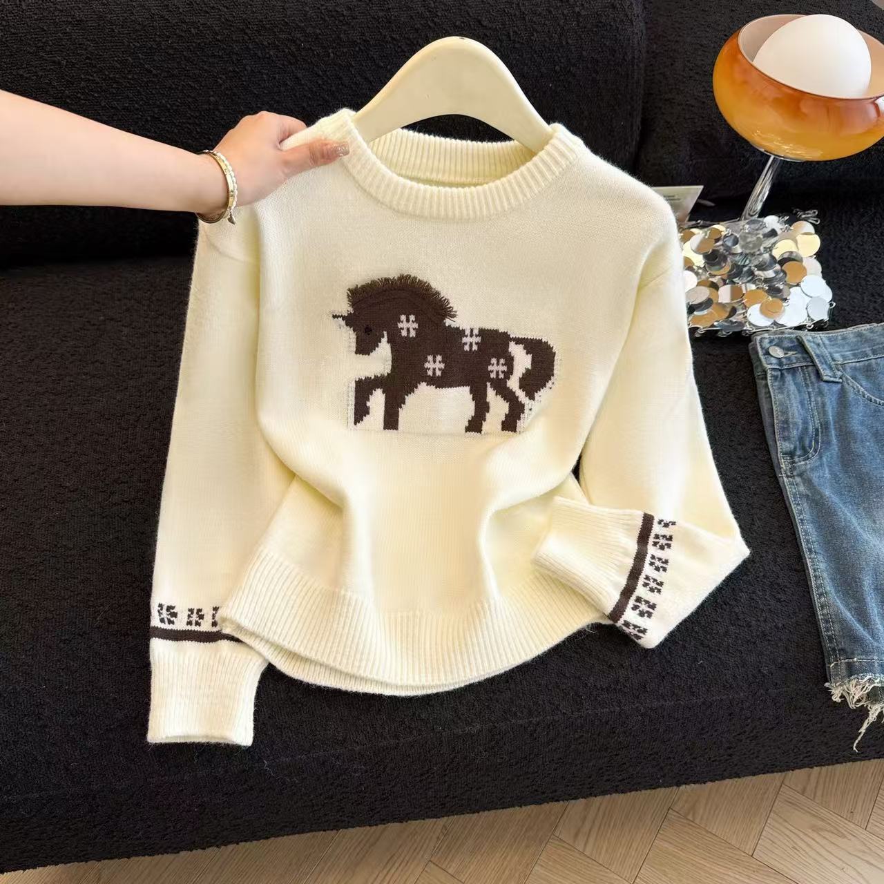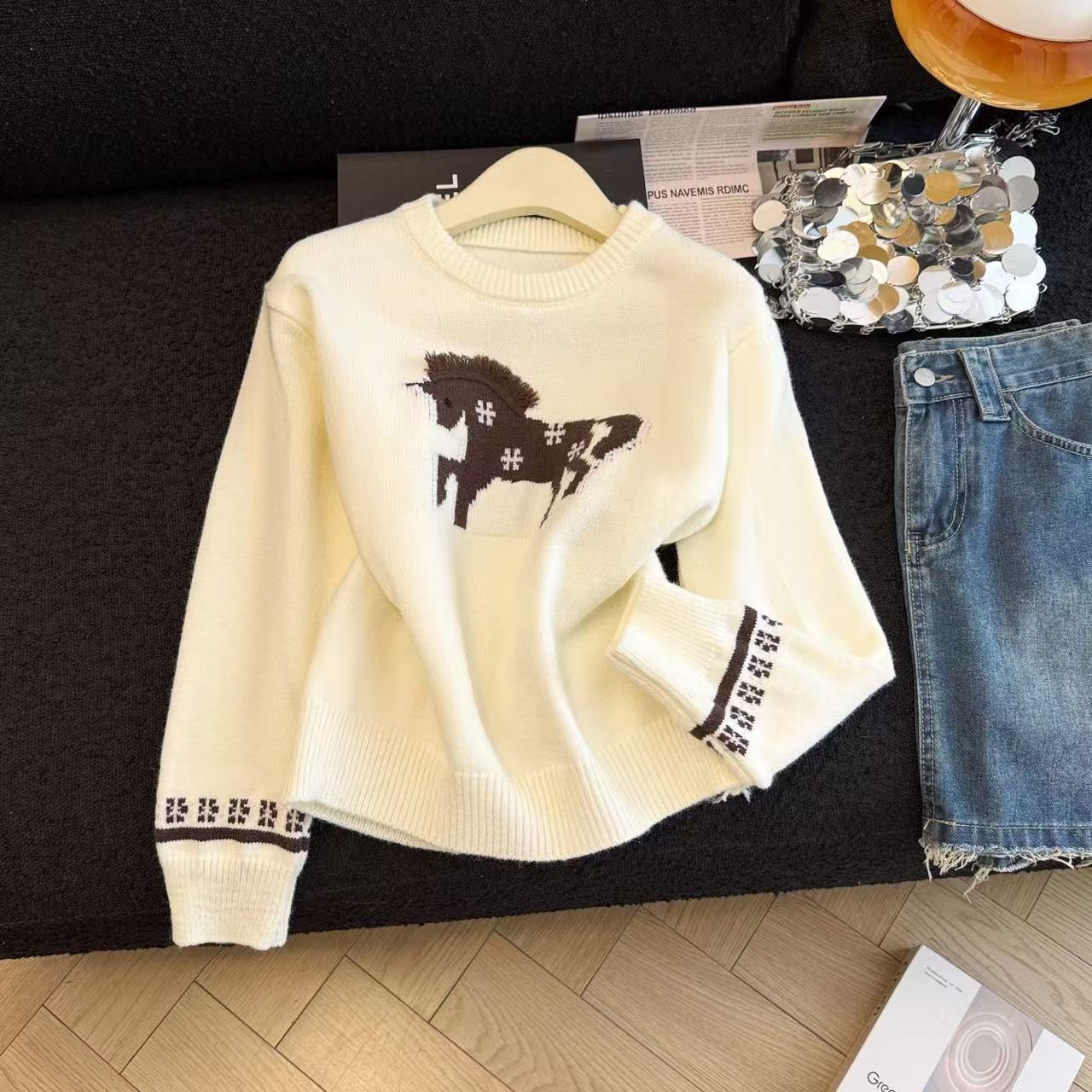 MY15730# 费尔岛冬日白色小鹿套头毛衣女秋冬季加厚提花针织上衣chic女裝貨源服裝批發