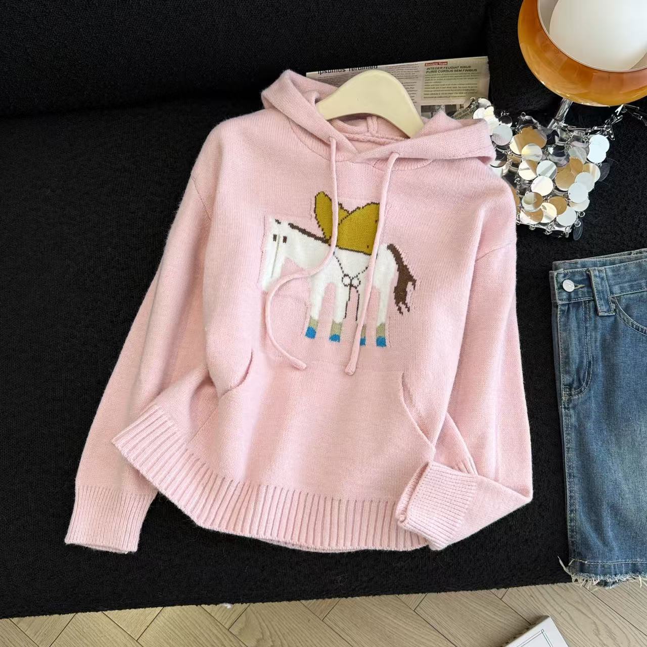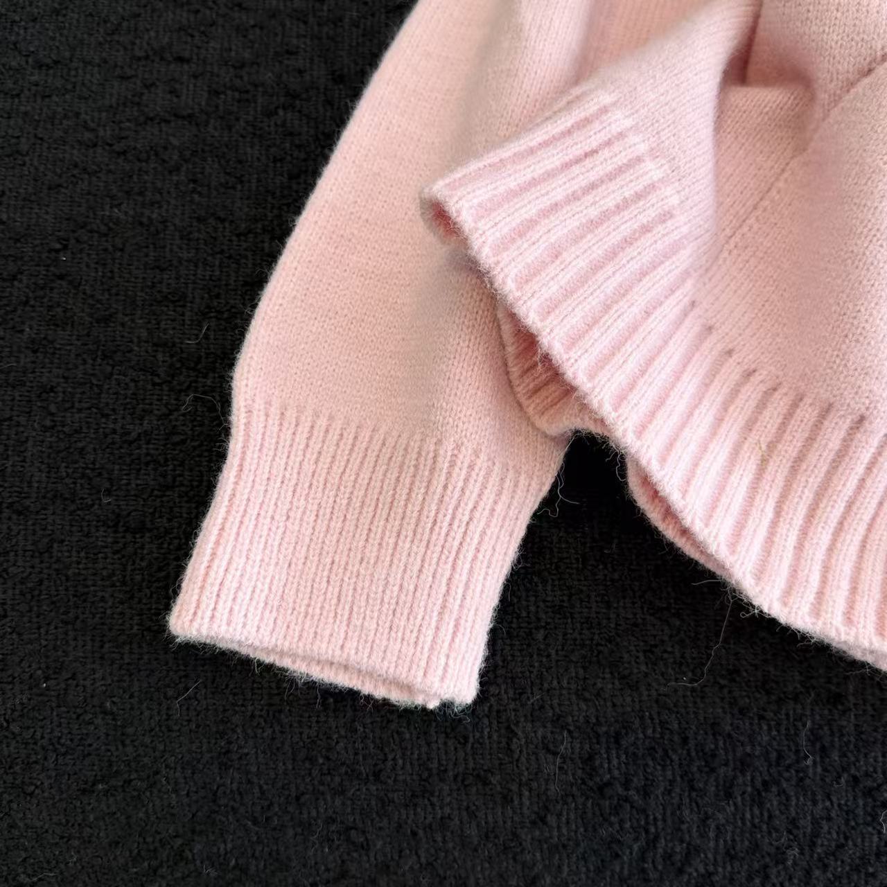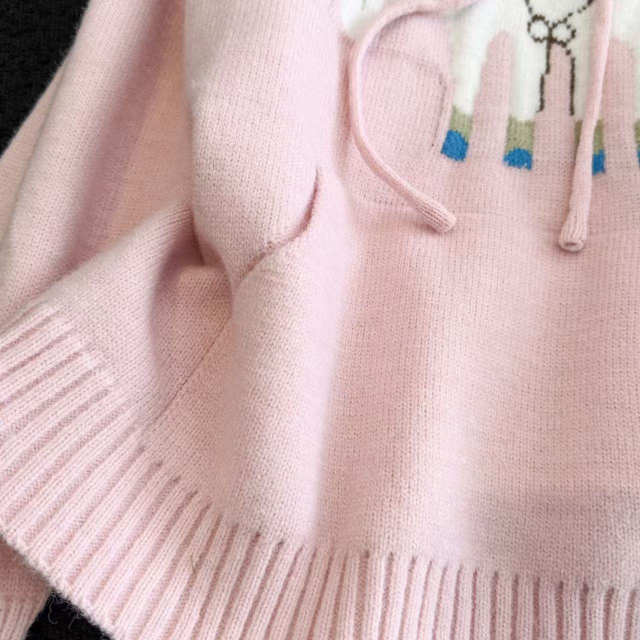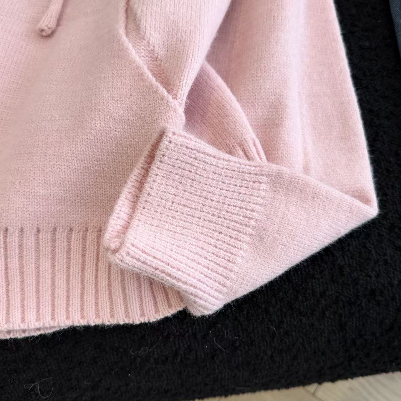 MY15731# 粉色减龄提花连帽毛衣女新款秋冬设计感小个子慵懒软糯针织衫女裝貨源服裝批發