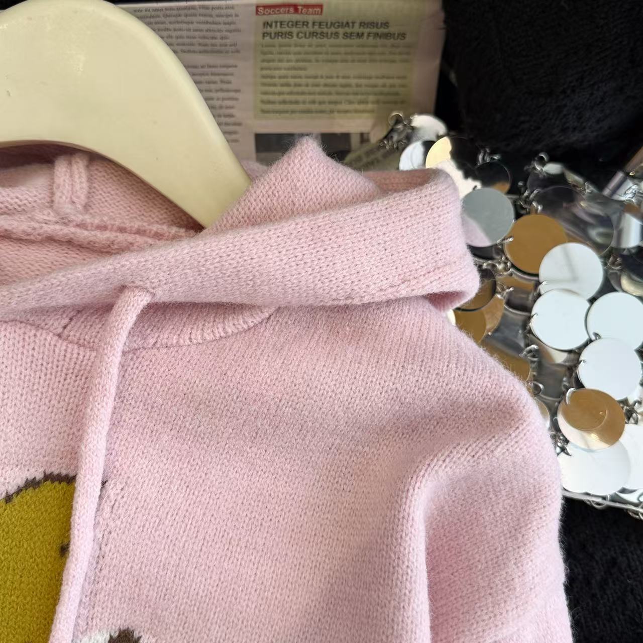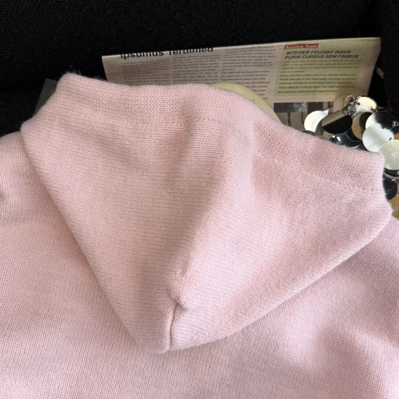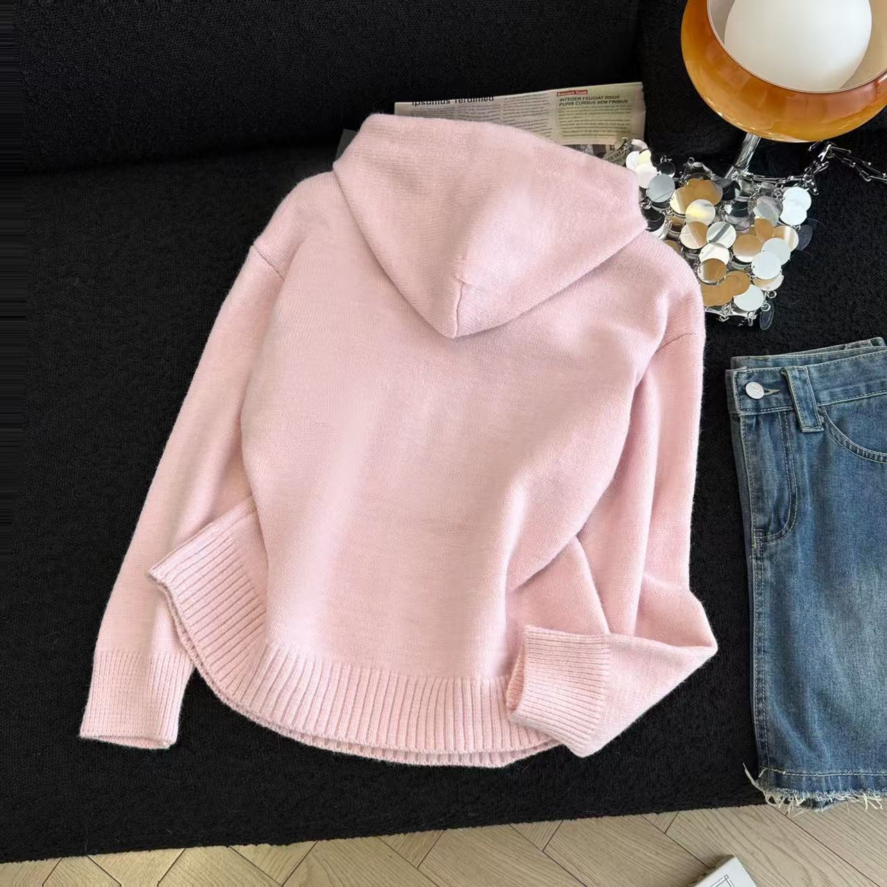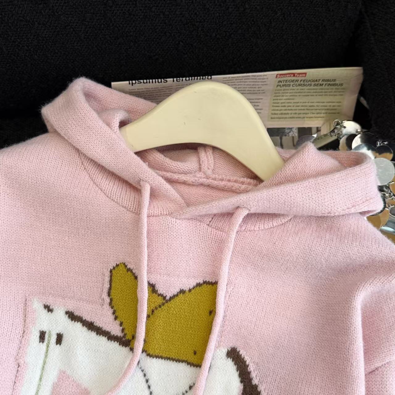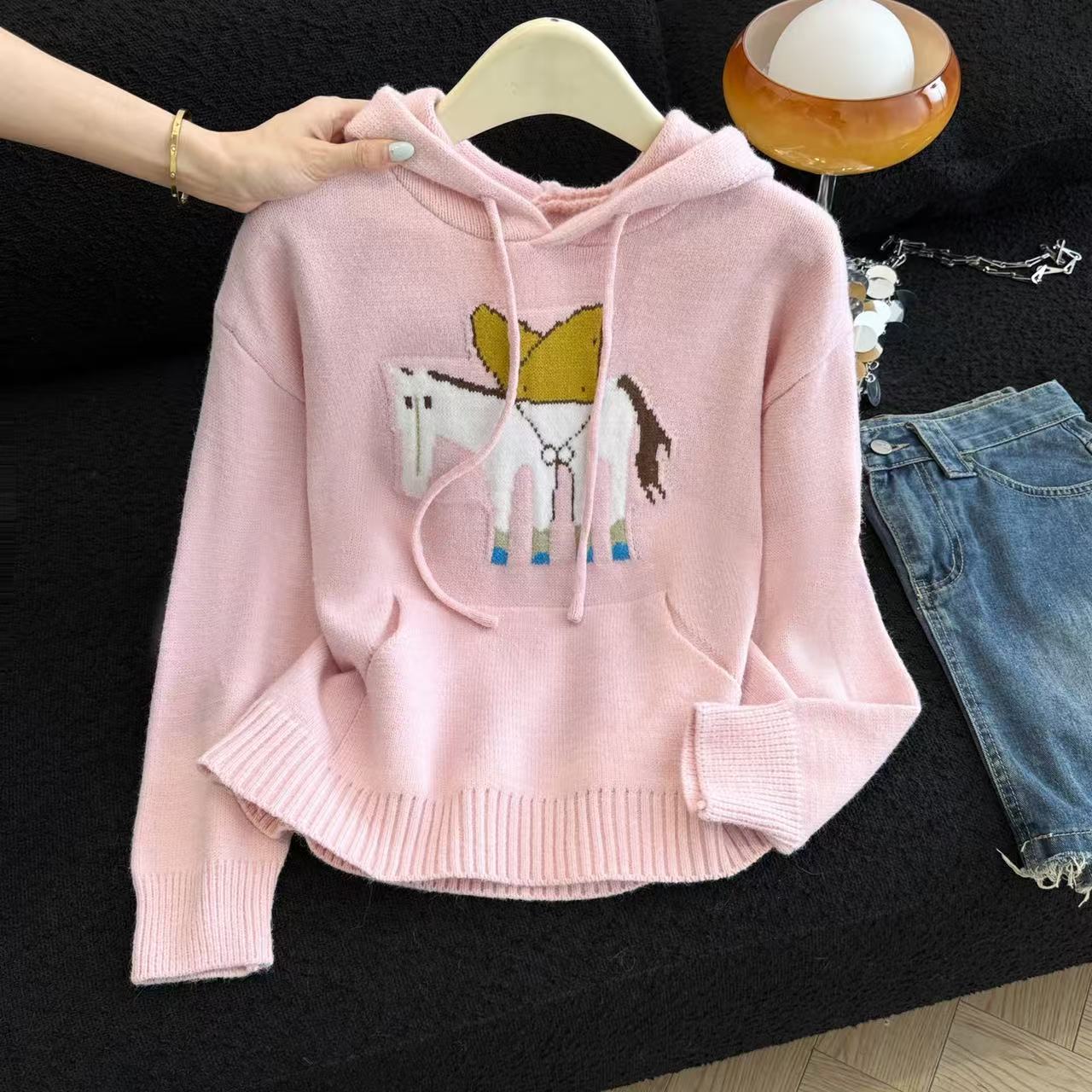 MY15731# 粉色减龄提花连帽毛衣女新款秋冬设计感小个子慵懒软糯针织衫女裝貨源服裝批發
