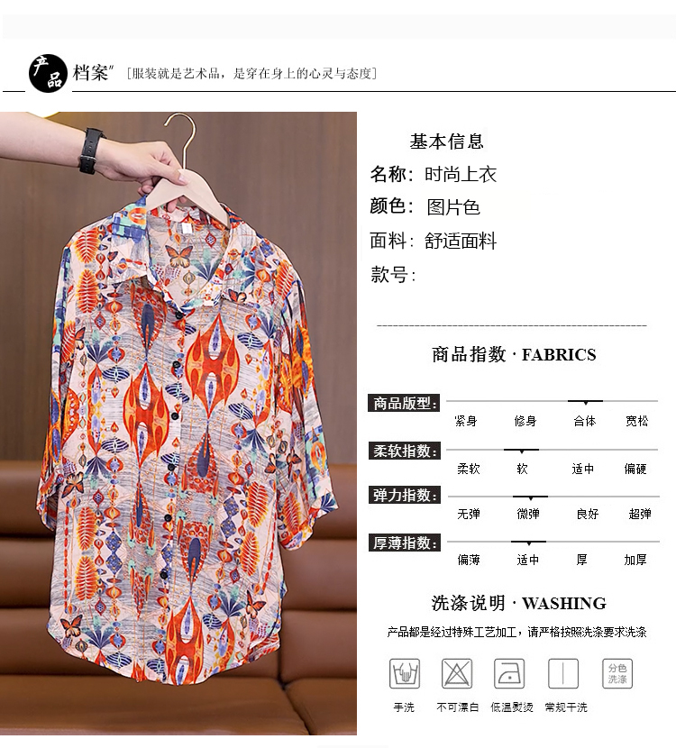BY9186#大码女装夏季女装胖mm度假风印花短袖衬衫上衣