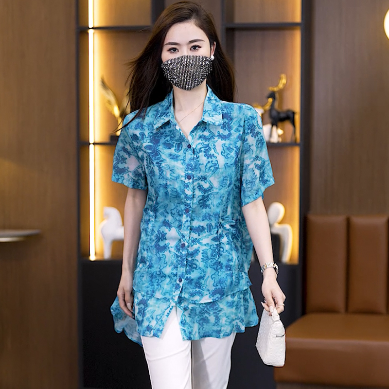 BY9190#大码女装夏装新款时尚百搭胖MM气质衬衫宽松遮肚显瘦小衫