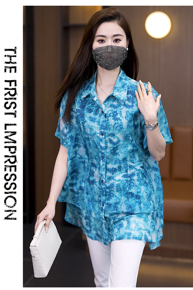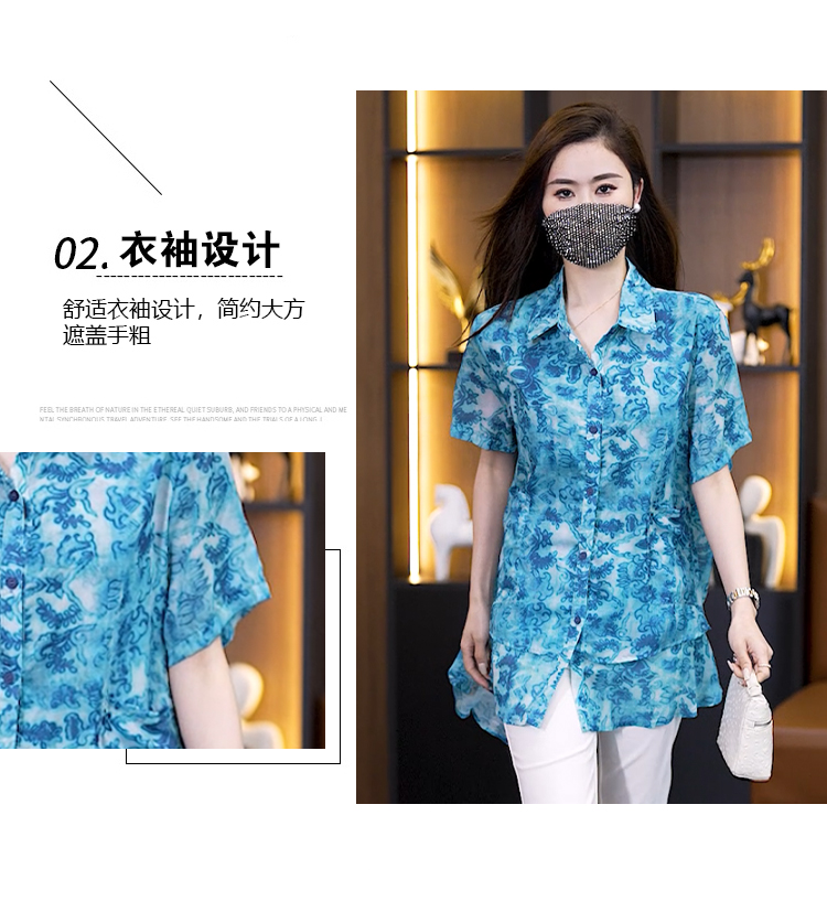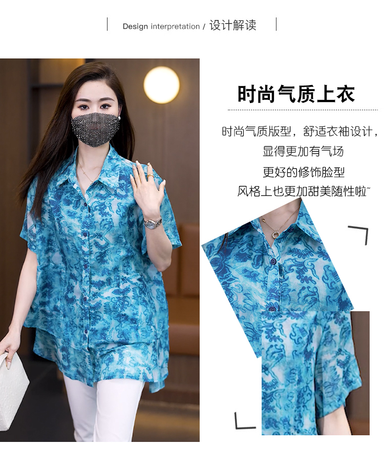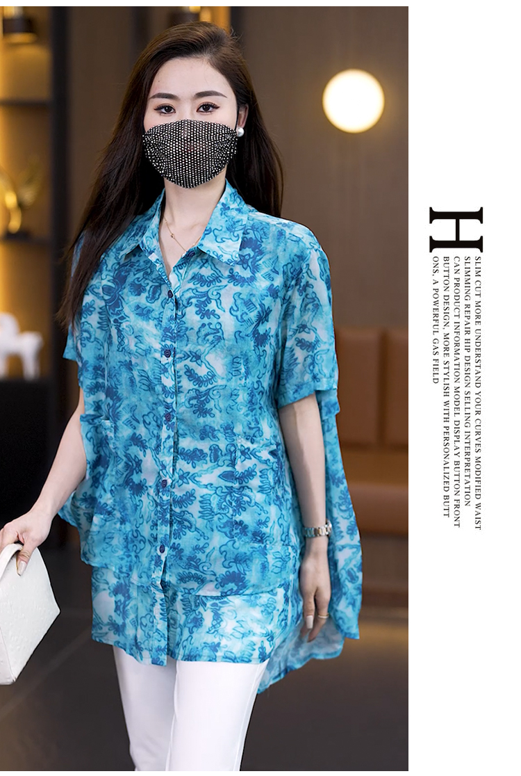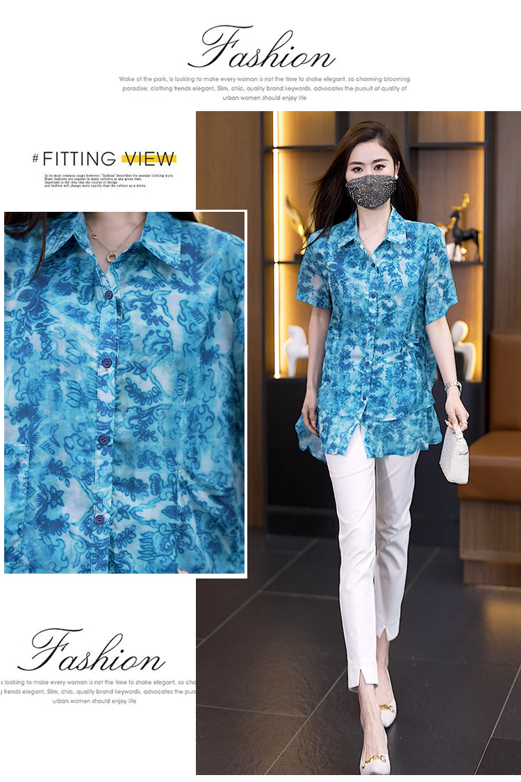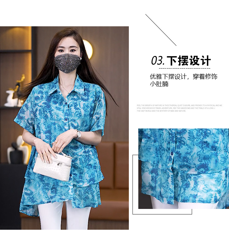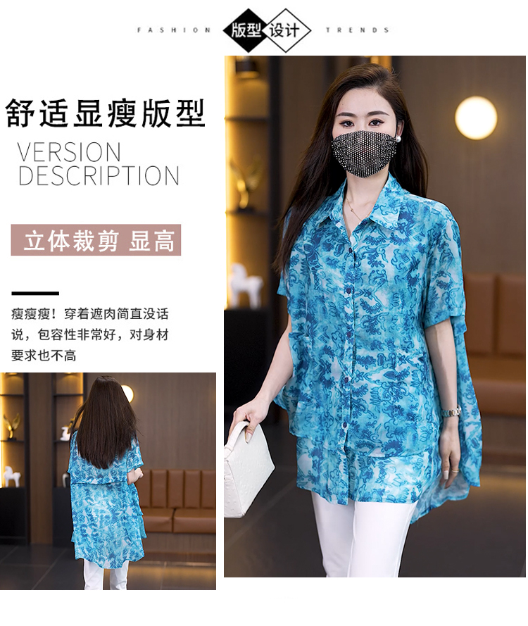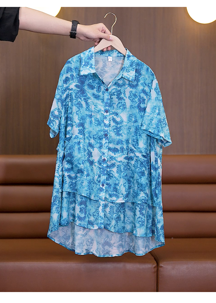 BY9186#大码女装夏季女装胖mm度假风印花短袖衬衫上衣