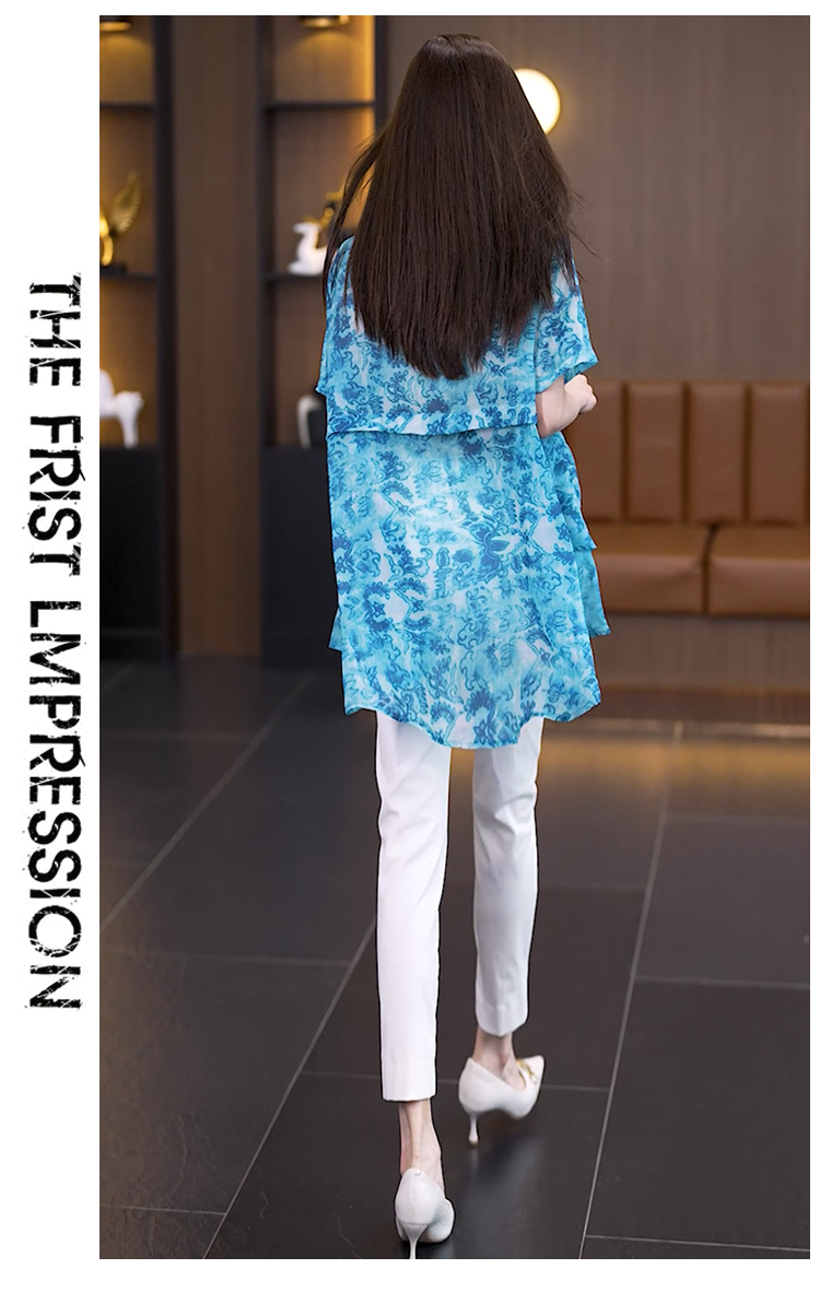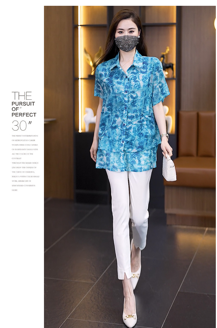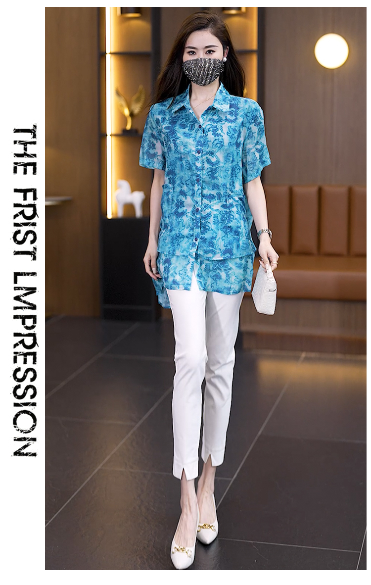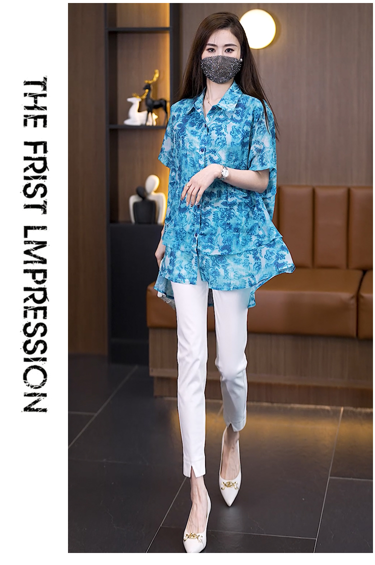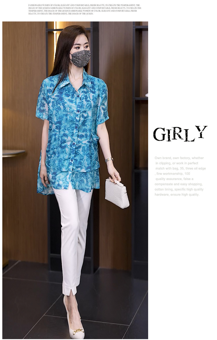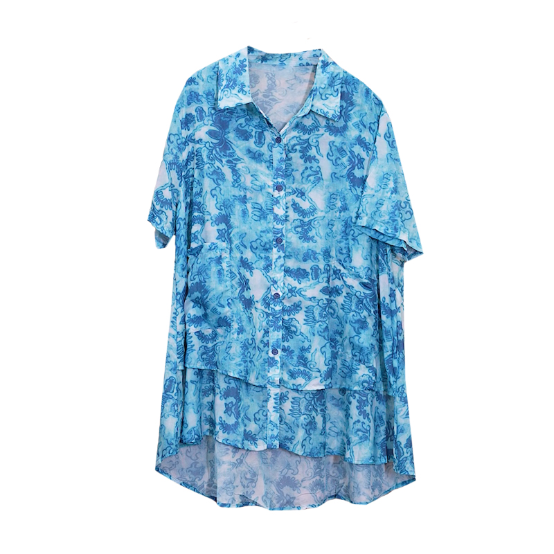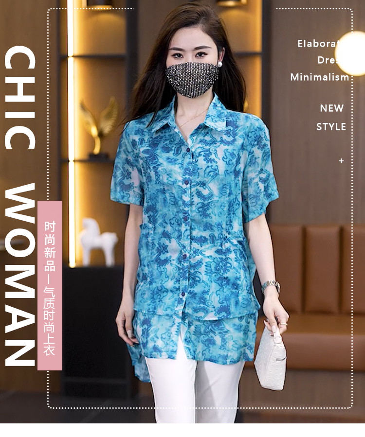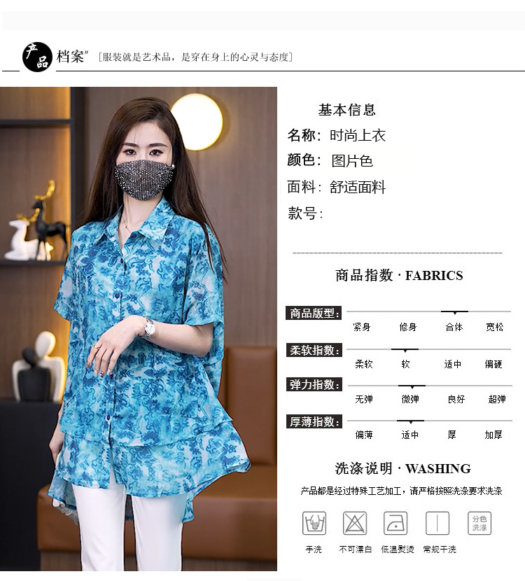 BY9186#大码女装夏季女装胖mm度假风印花短袖衬衫上衣