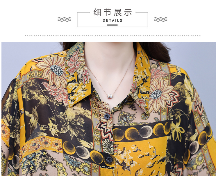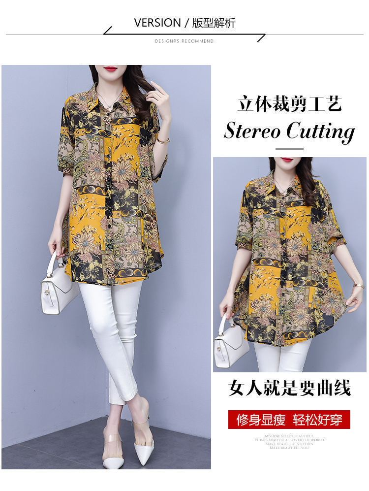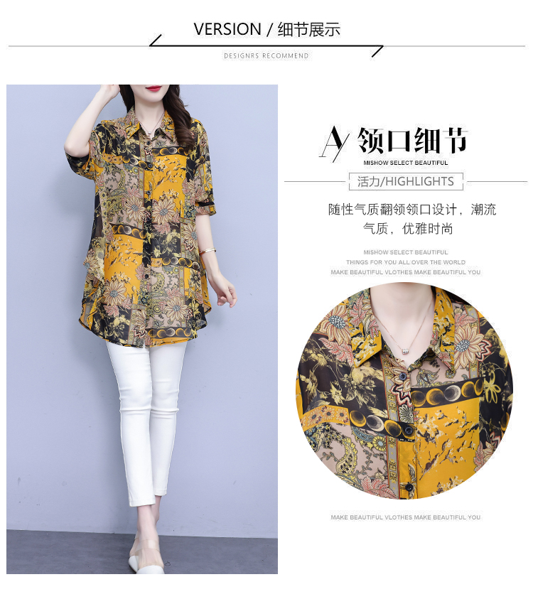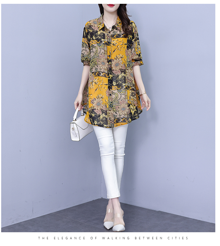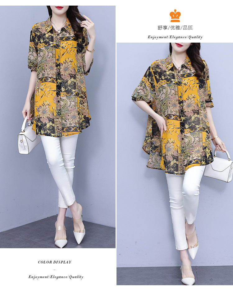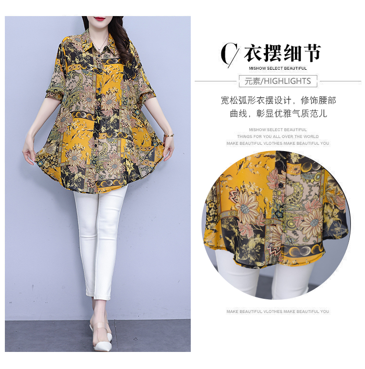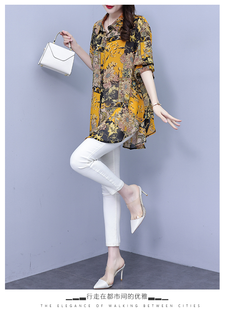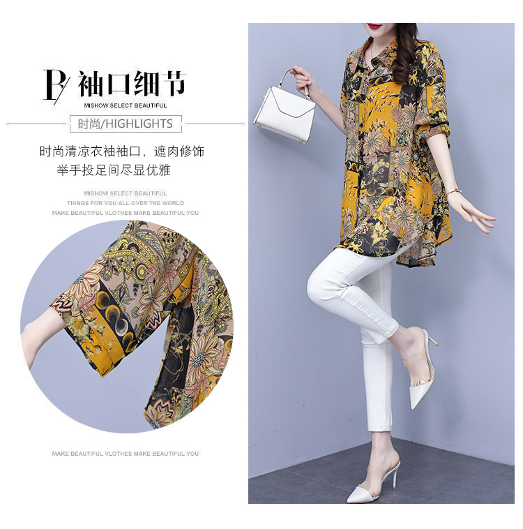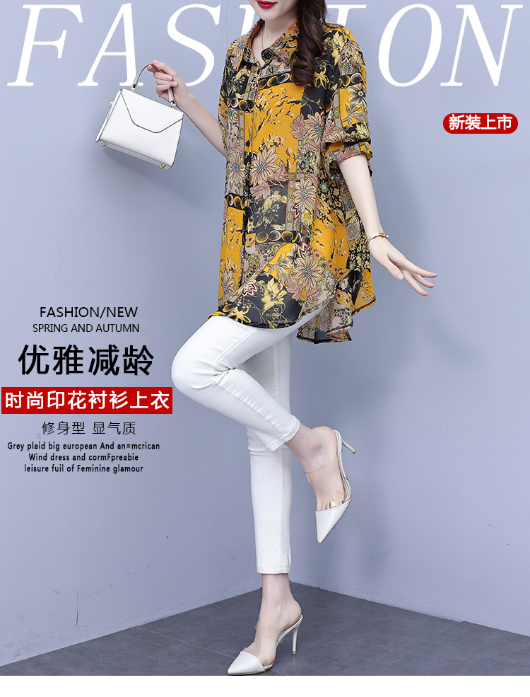 BY9191#夏季新款七分袖花色翻领防晒衬衫女装上衣妈妈中长款小衫