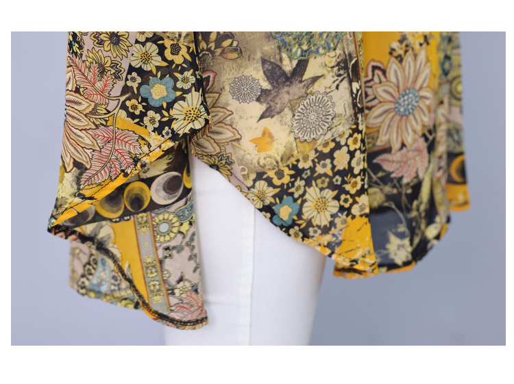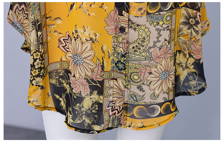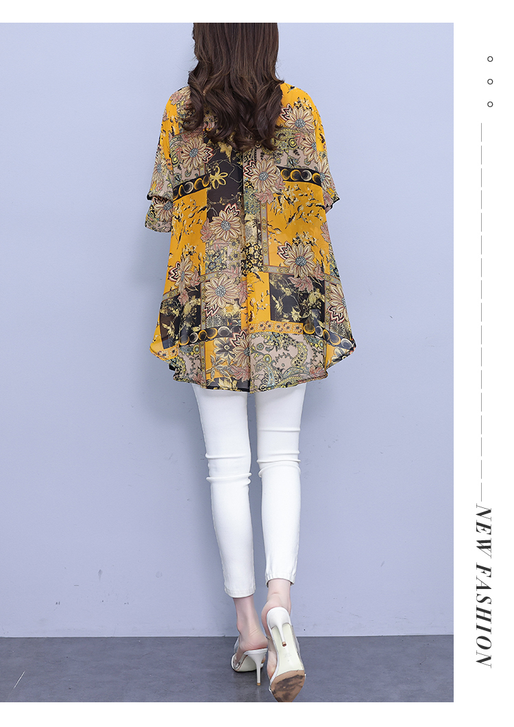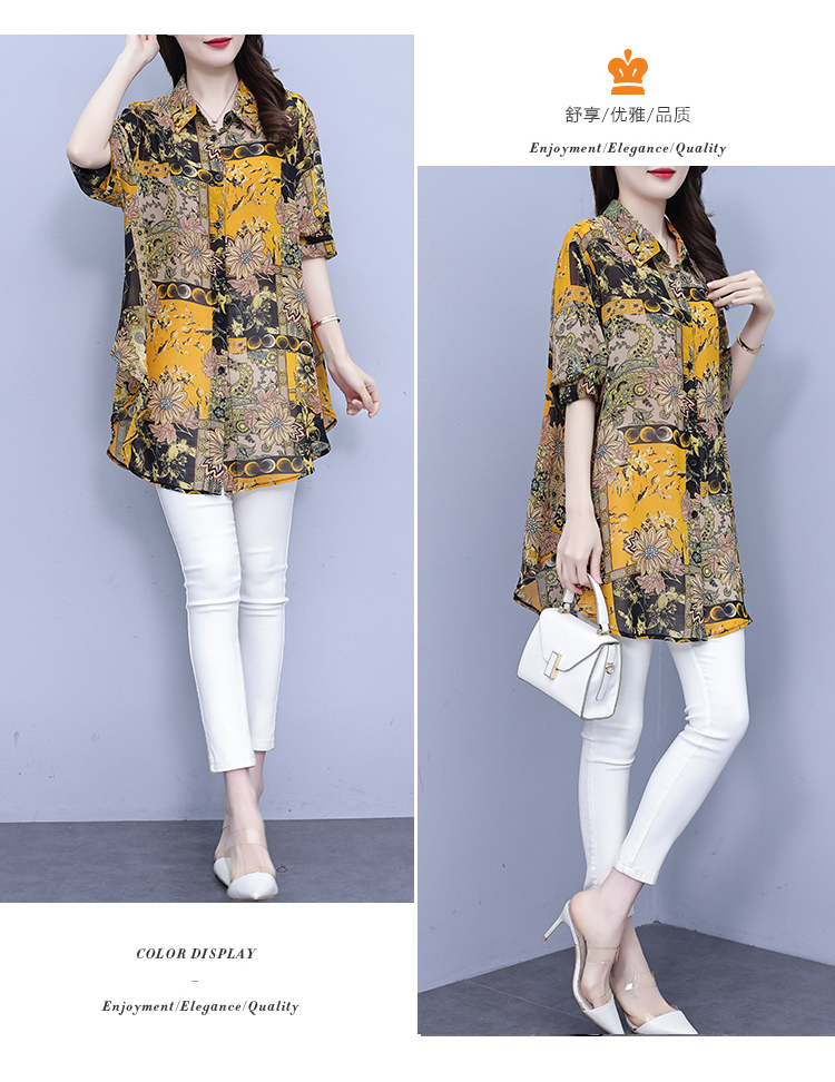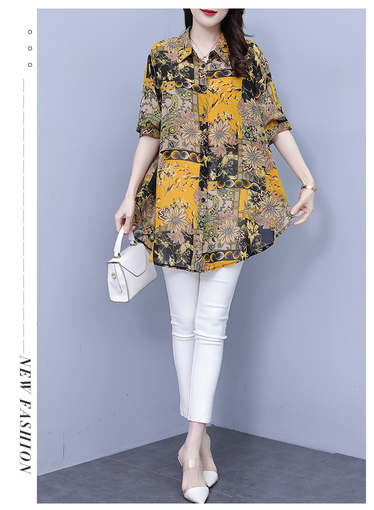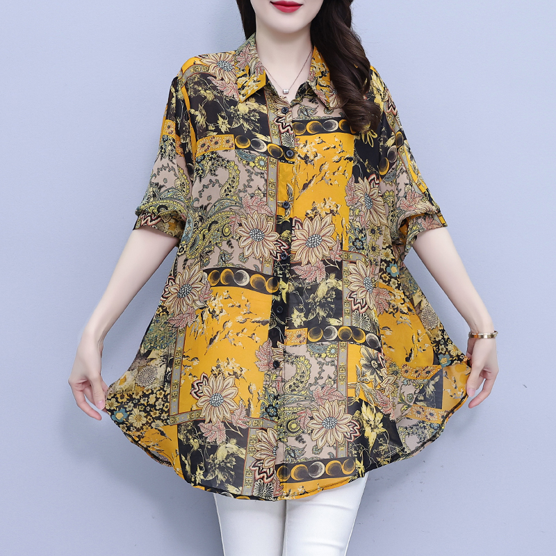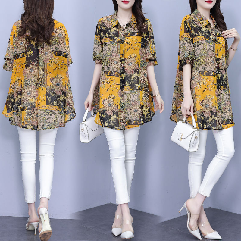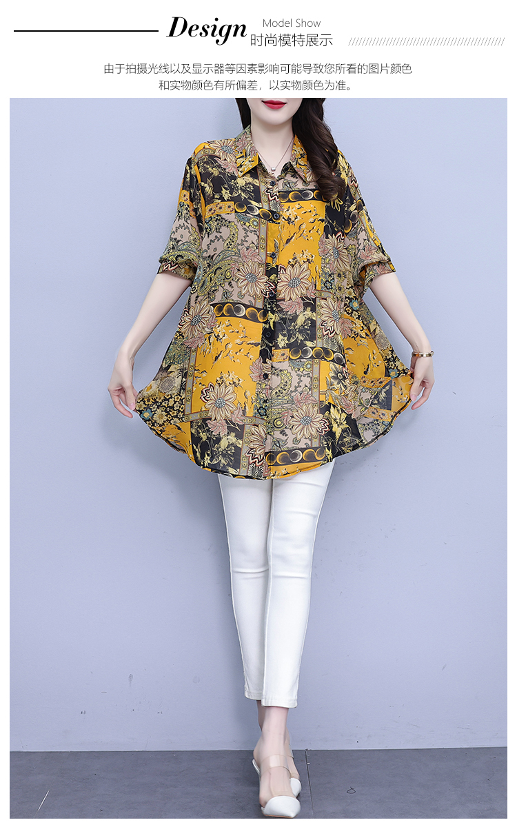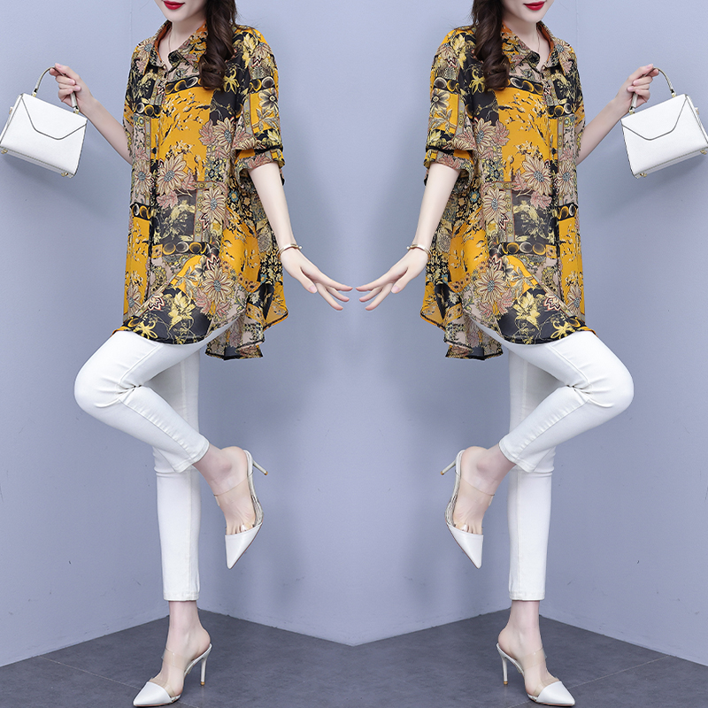 BY9191#夏季新款七分袖花色翻领防晒衬衫女装上衣妈妈中长款小衫