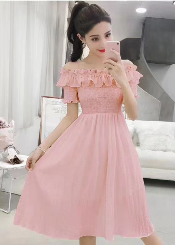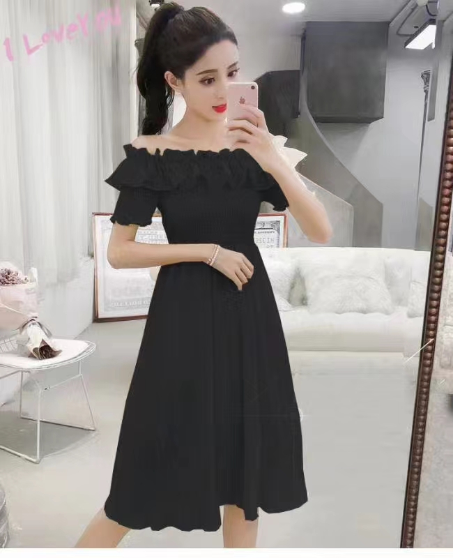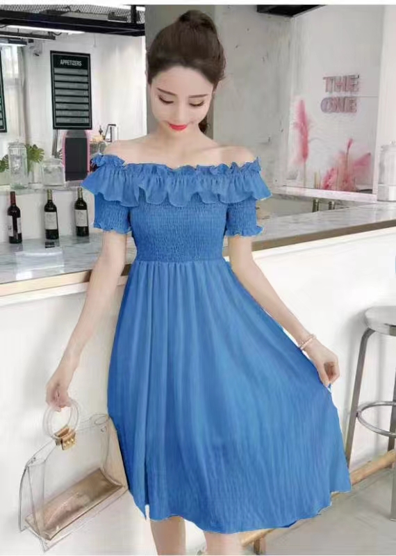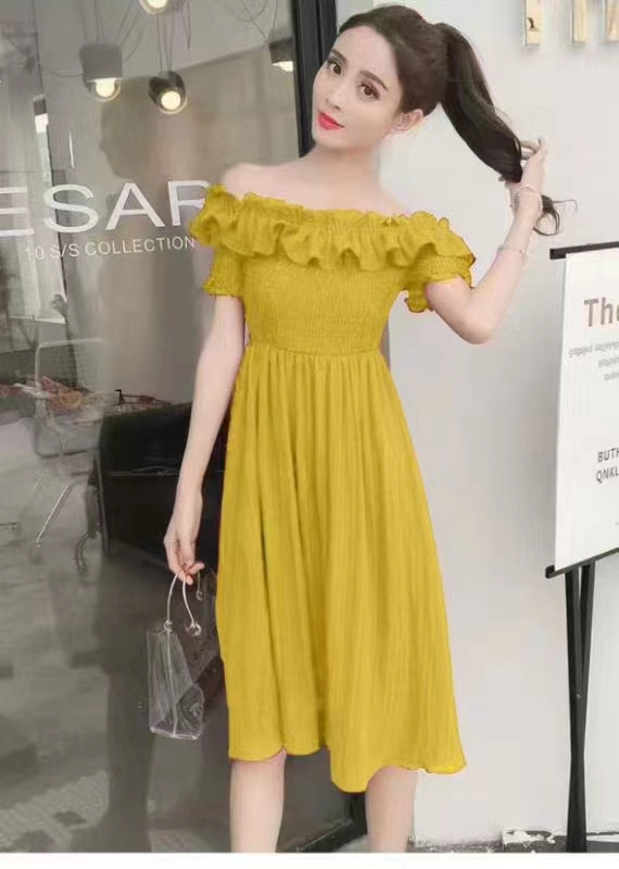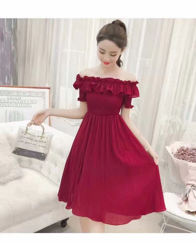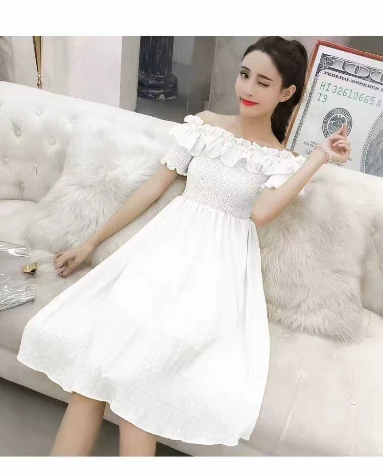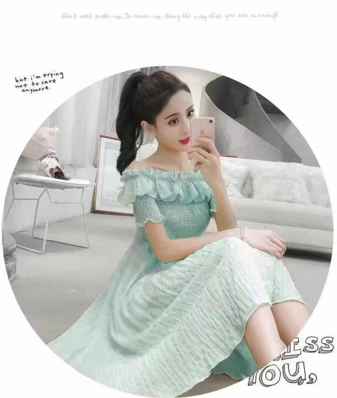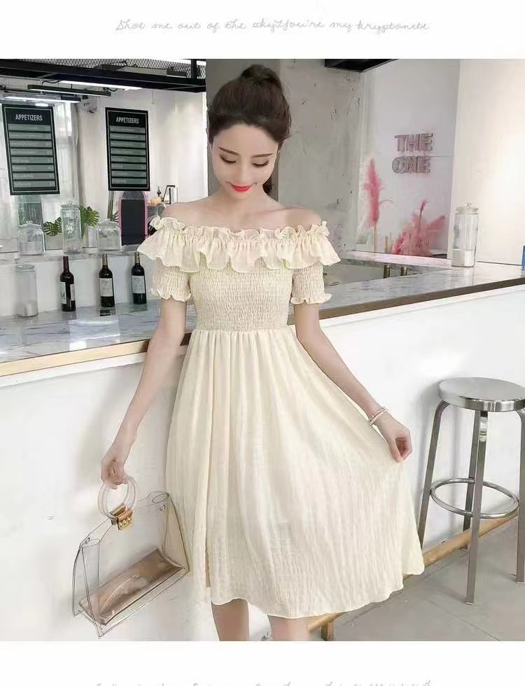 MY15738# 巴厘岛海边度假沙滩裙性感露肩一字领大摆长裙子女裝貨源服裝批發