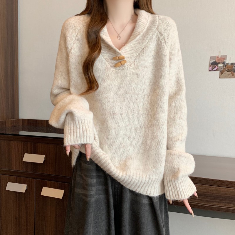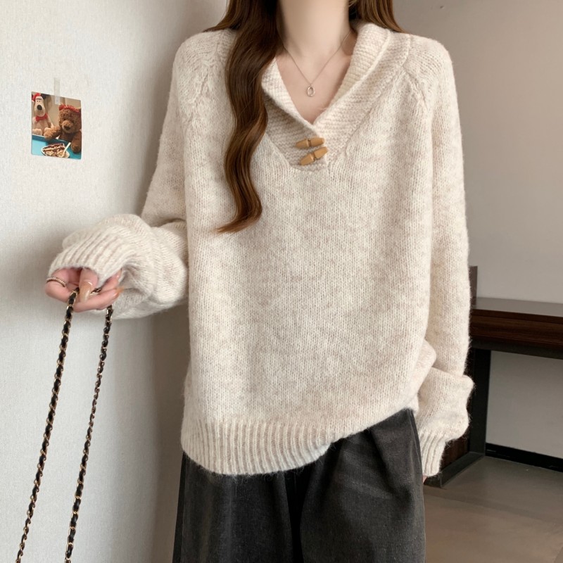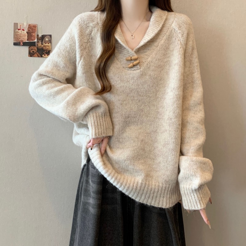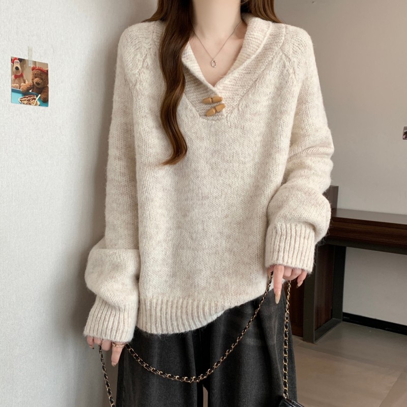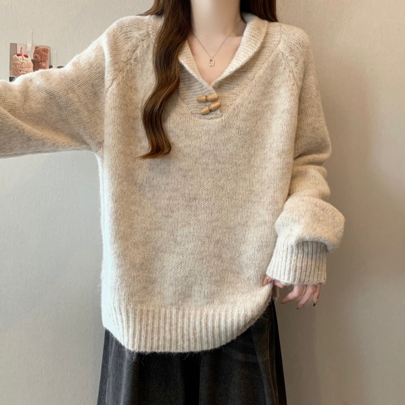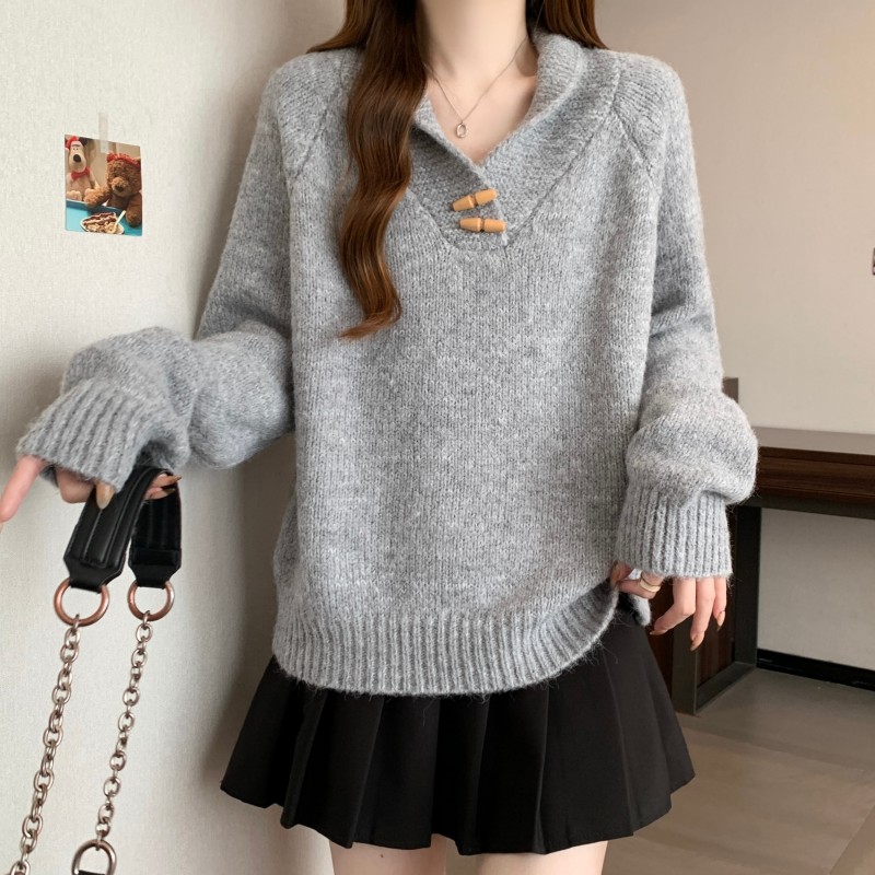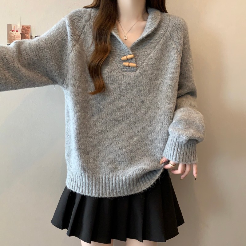 MY15760# 大码胖MM新款设计高级感翻领简约套头长袖毛衣女裝貨源服裝批發