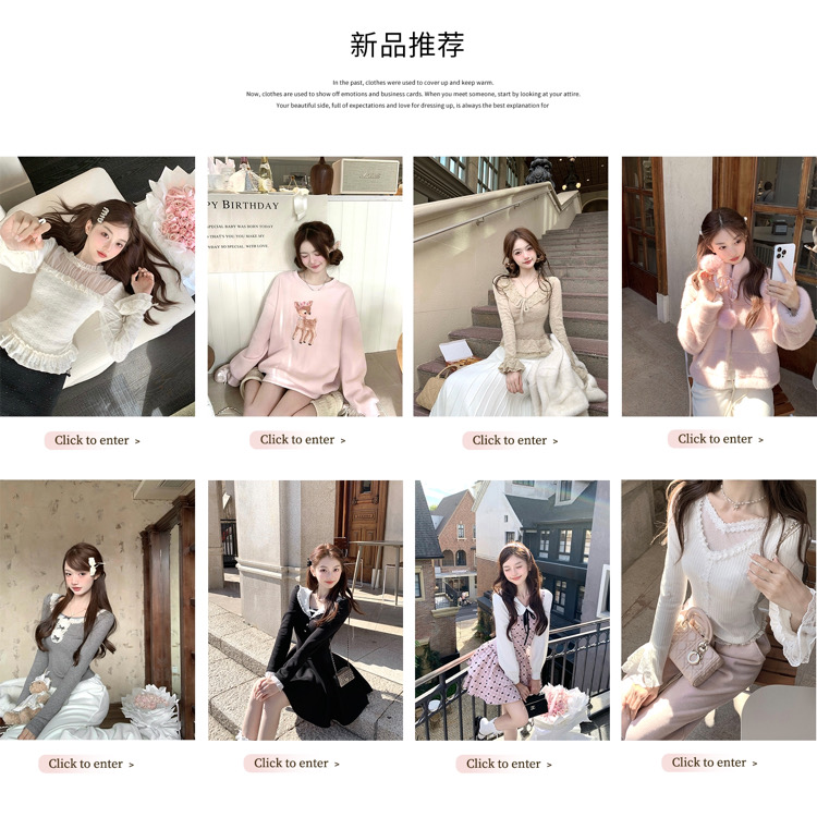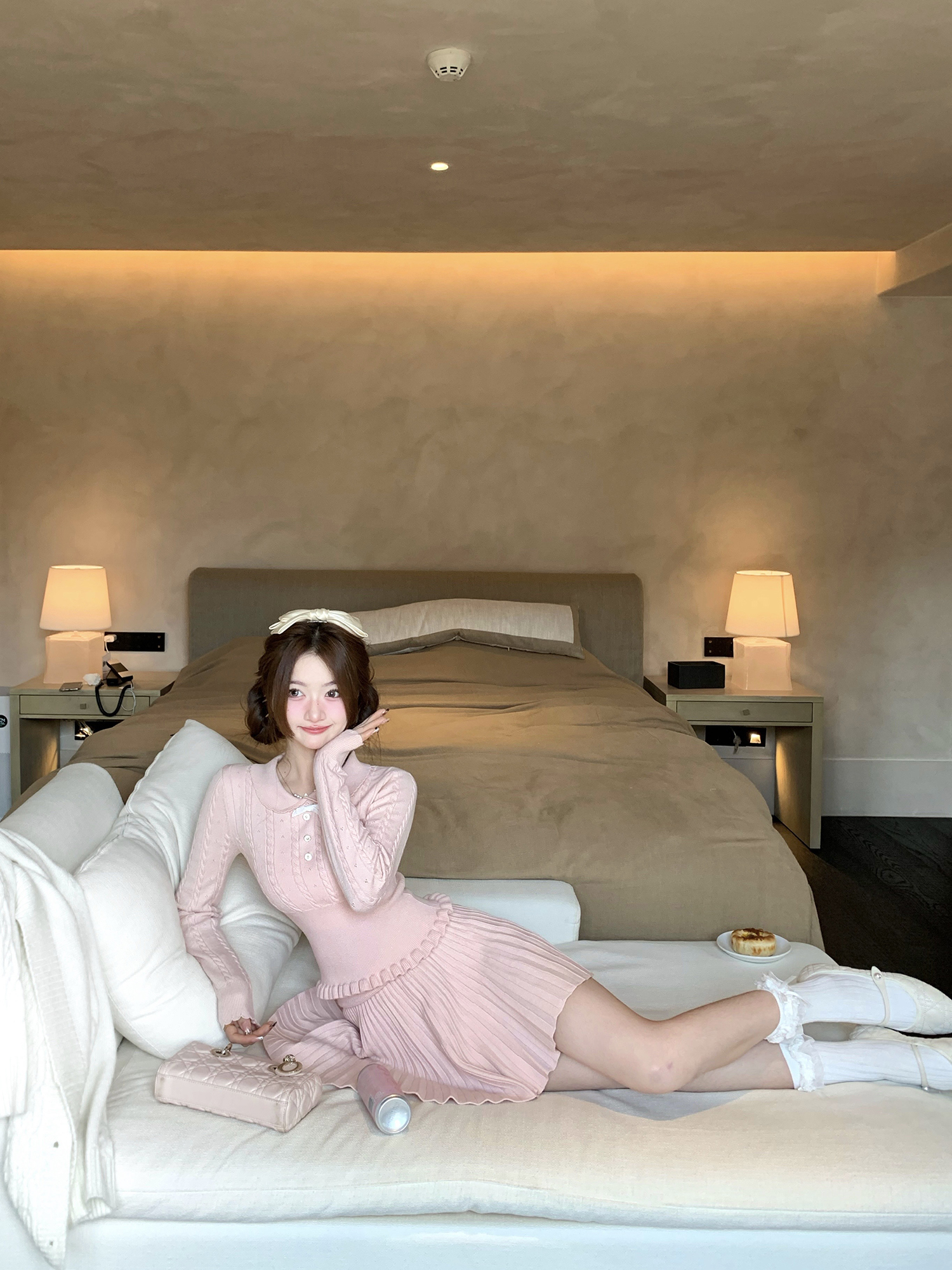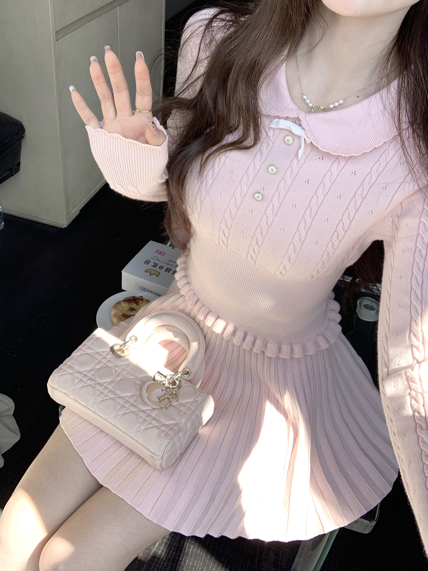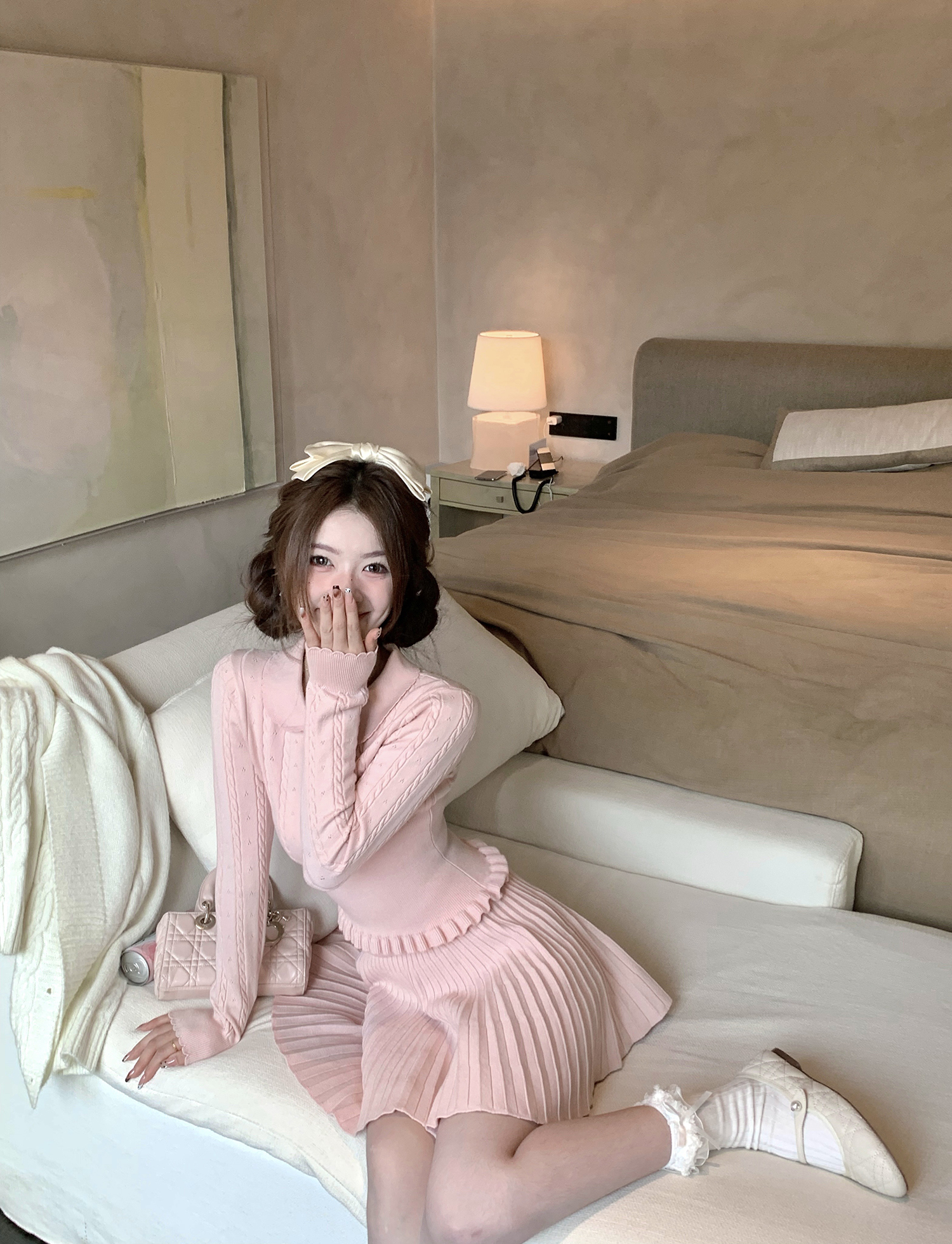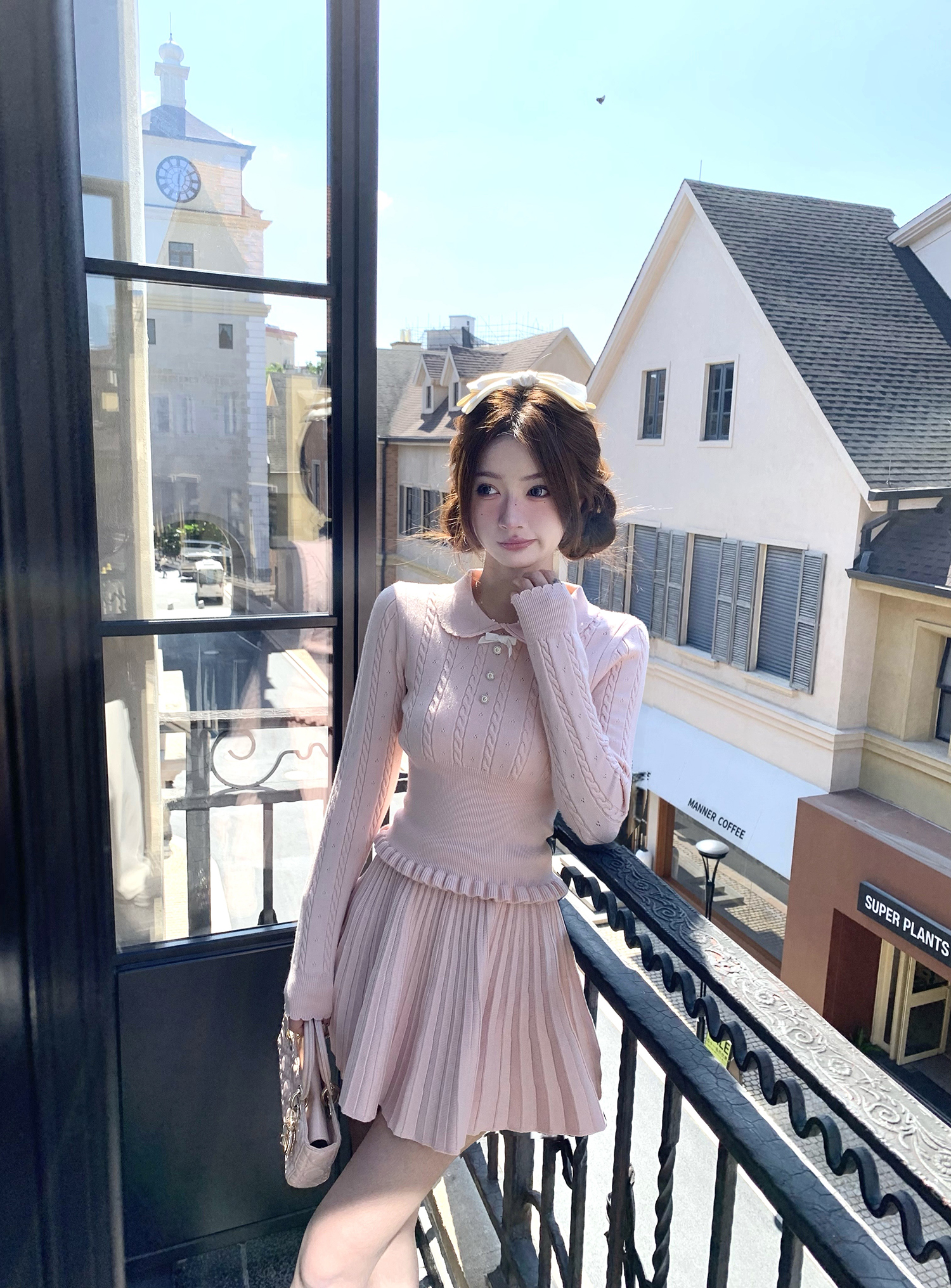 MY15774# 进修校花/千金感粉色长袖上衣针织毛衣超好看秋冬裙子套装女裝貨源服裝批發