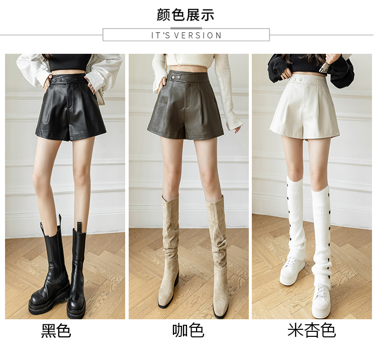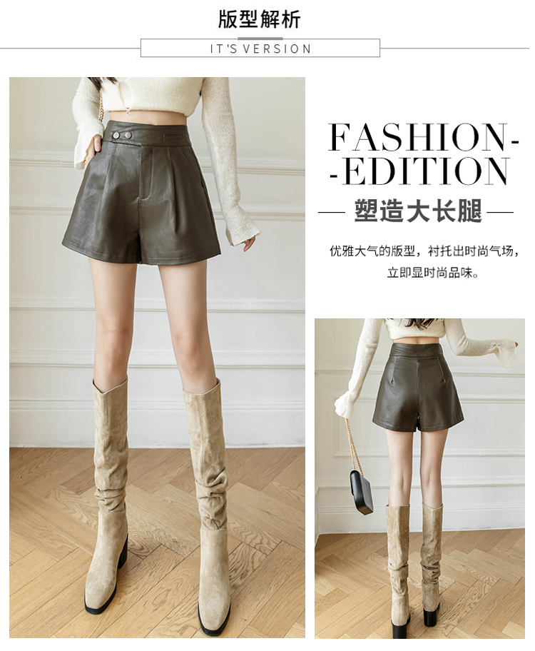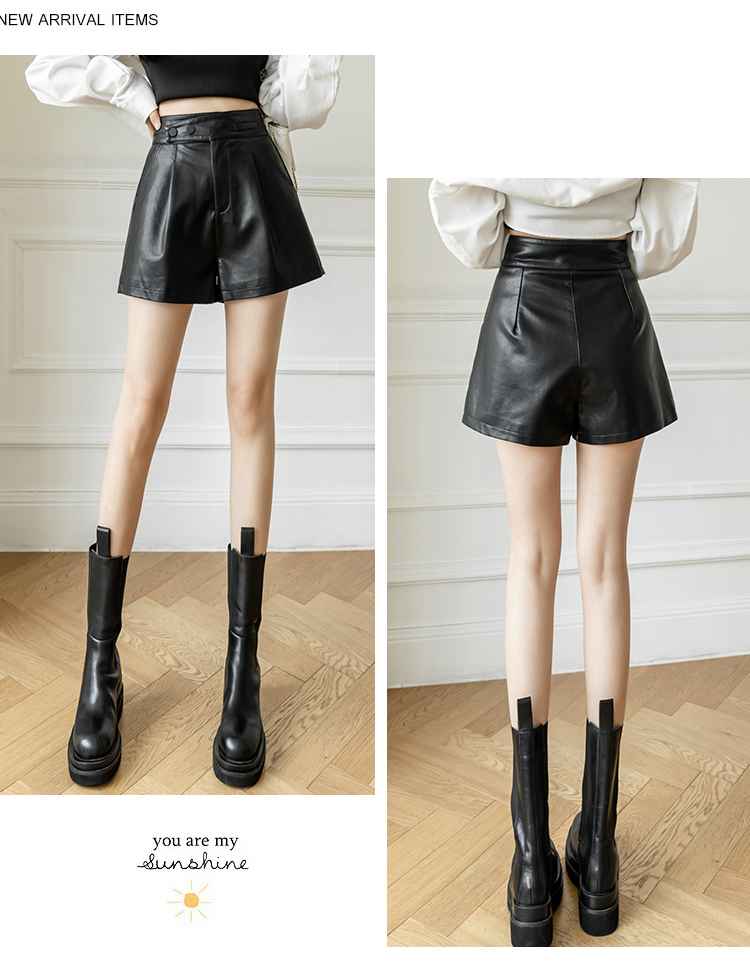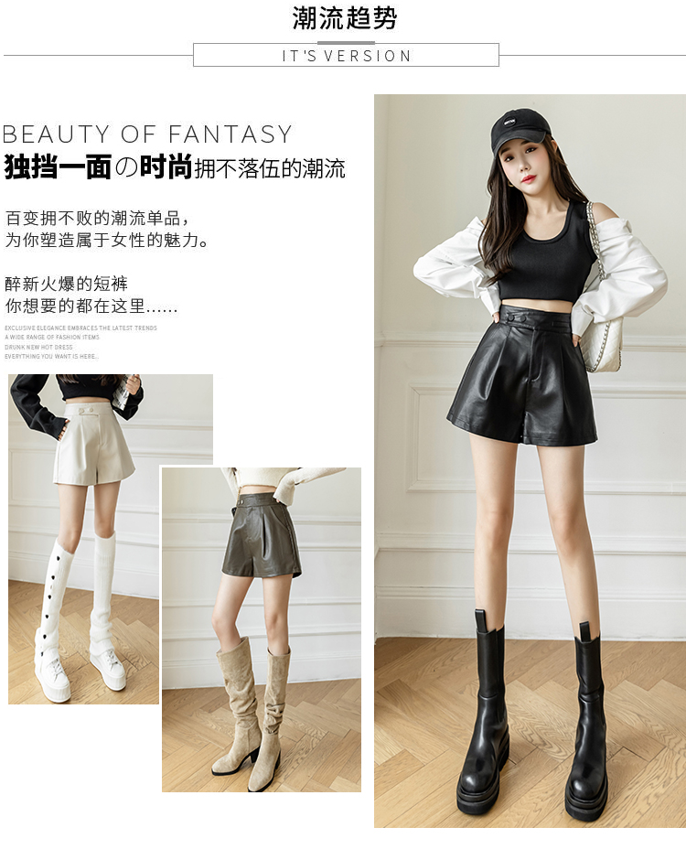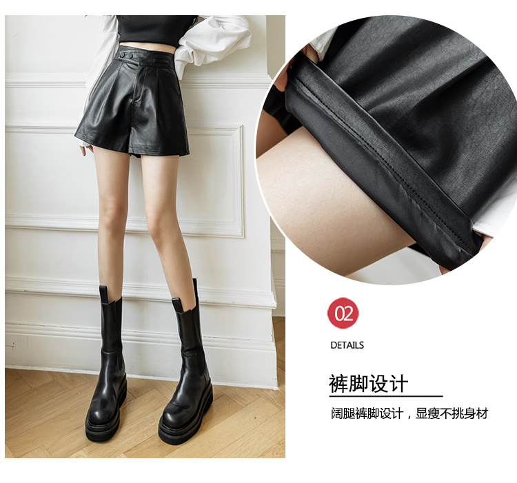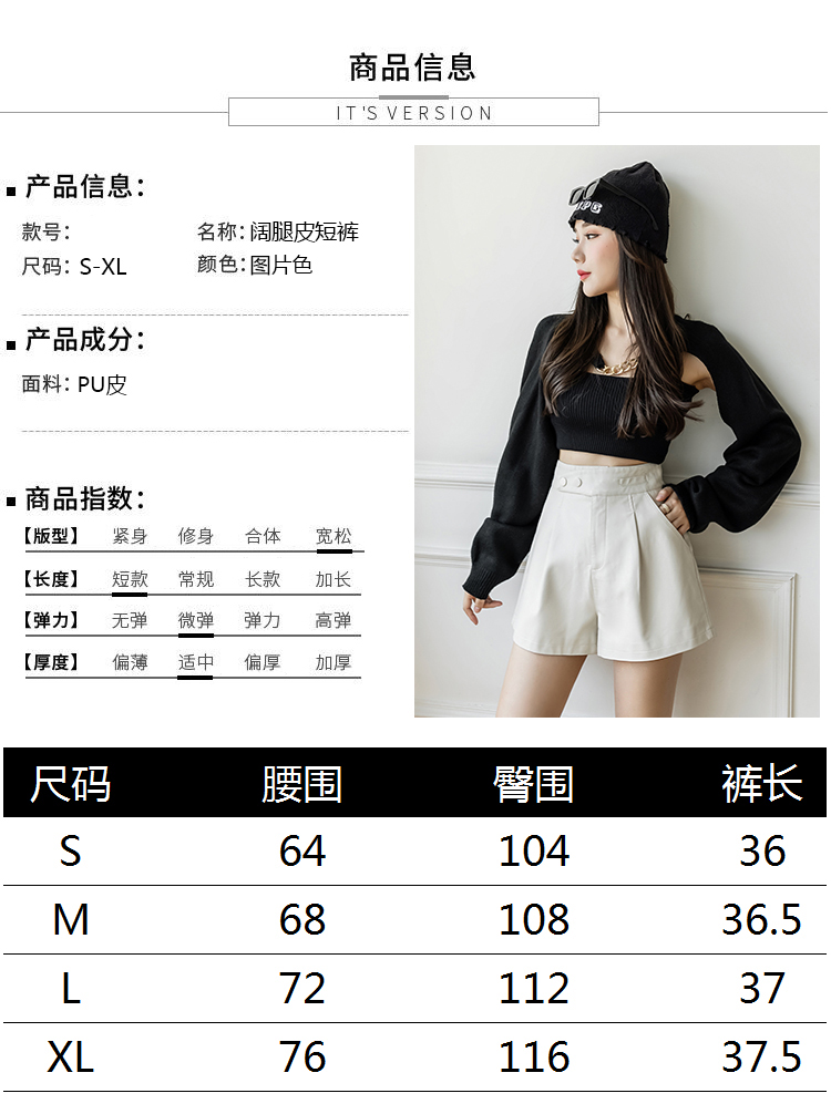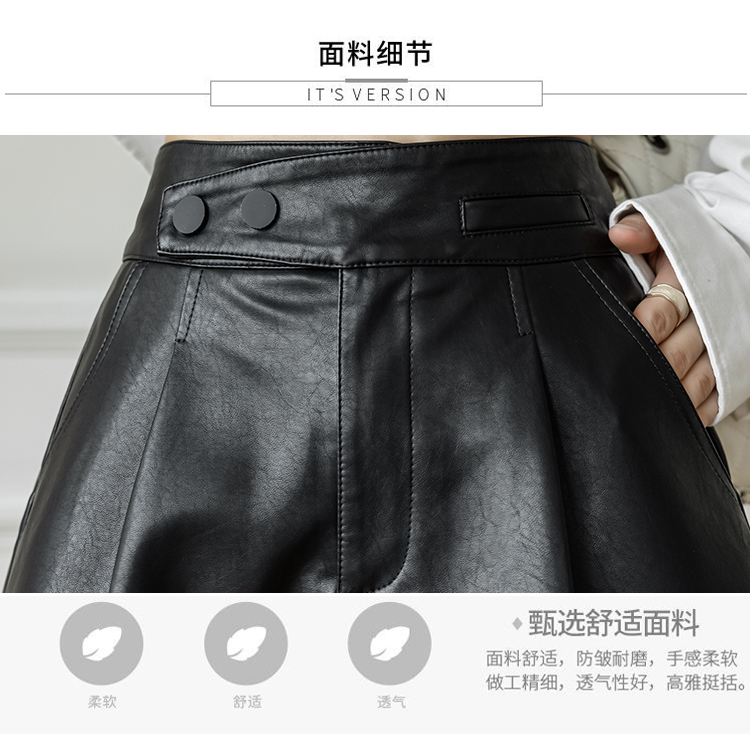 MY15790# PU皮裤女休闲高腰短裤宽松开叉显瘦外穿a字阔腿靴裤女裝貨源服裝批發