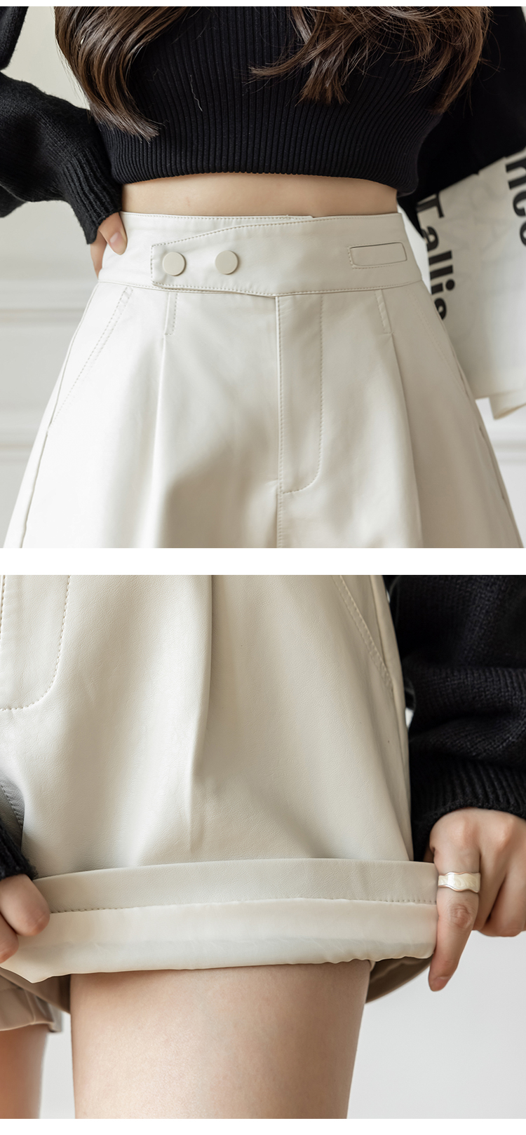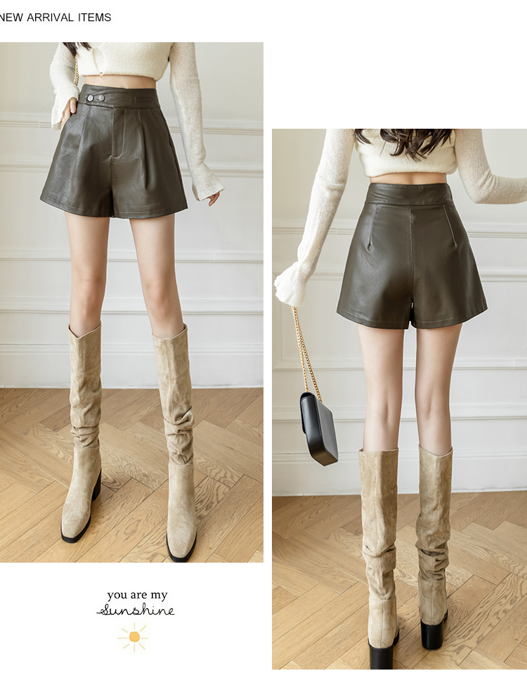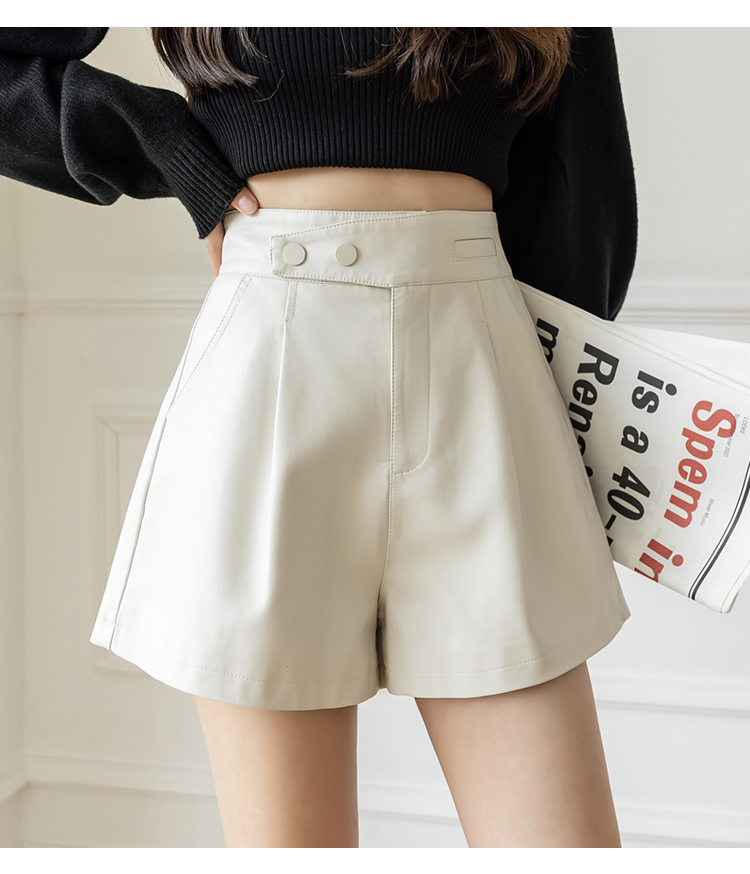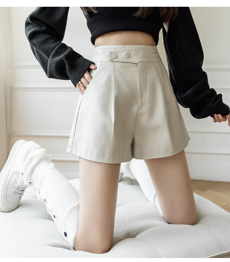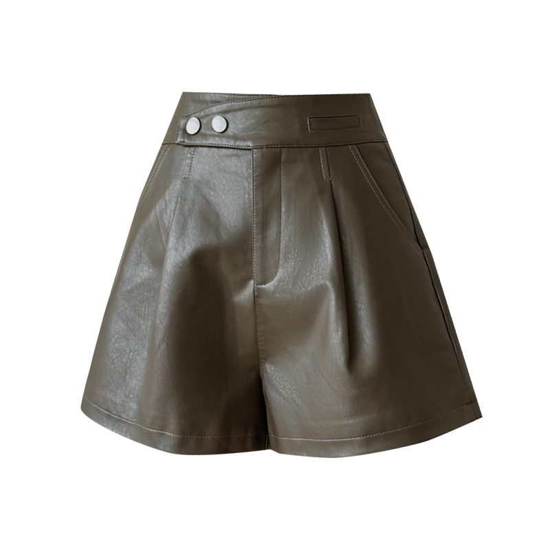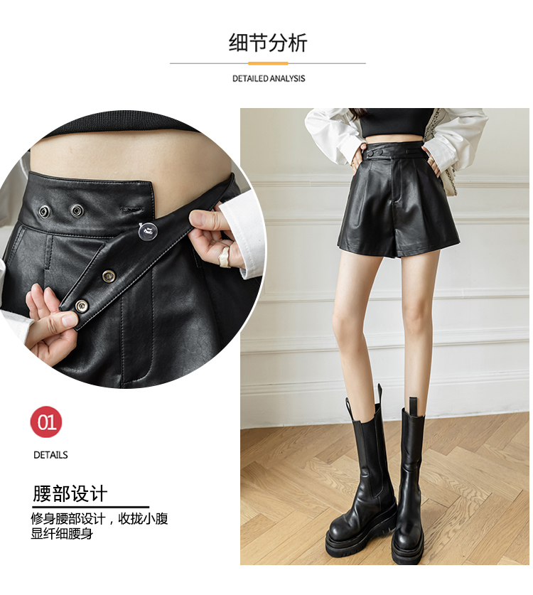 MY15790# PU皮裤女休闲高腰短裤宽松开叉显瘦外穿a字阔腿靴裤女裝貨源服裝批發