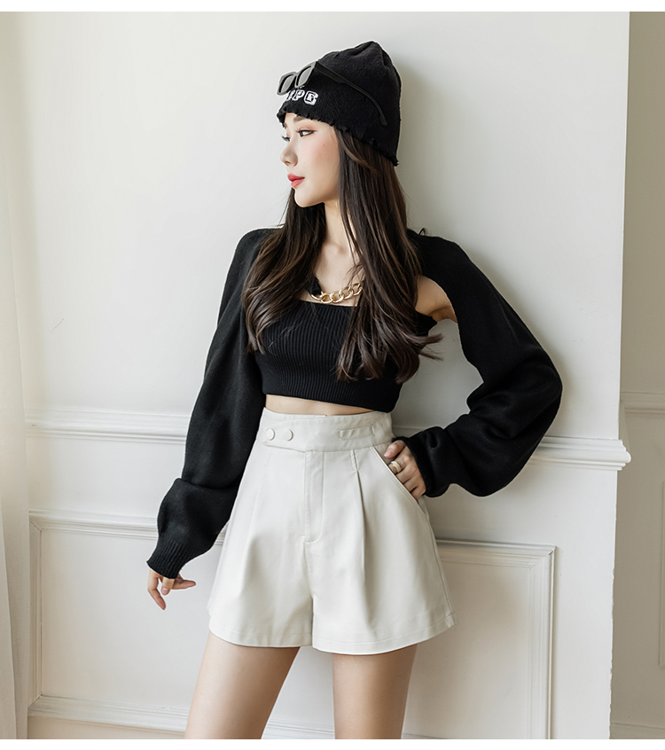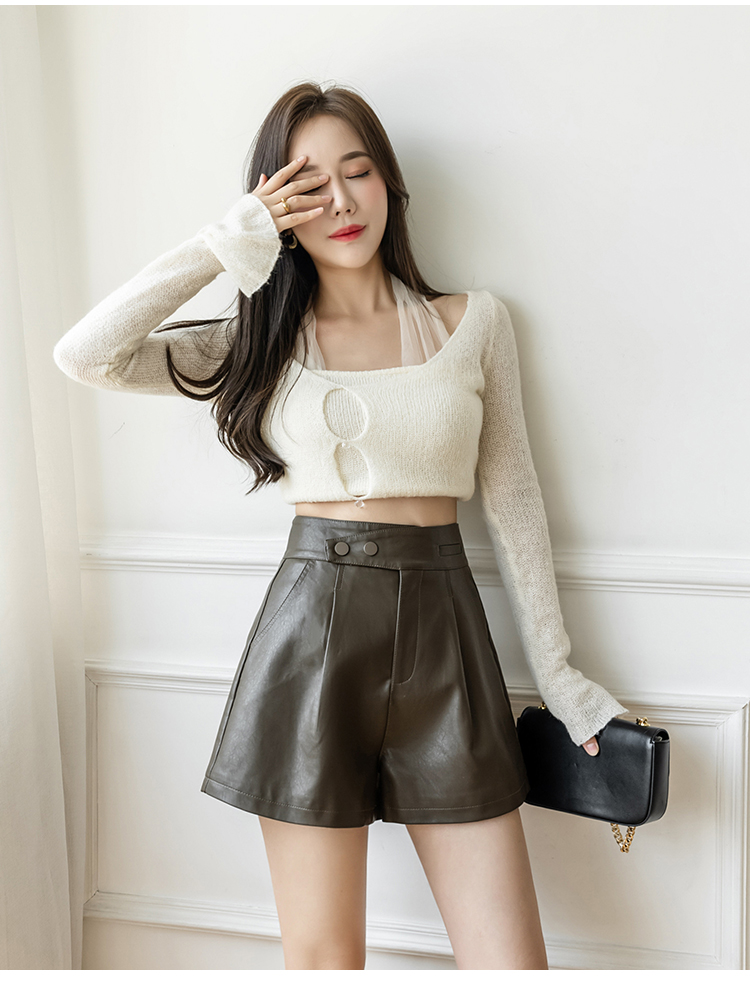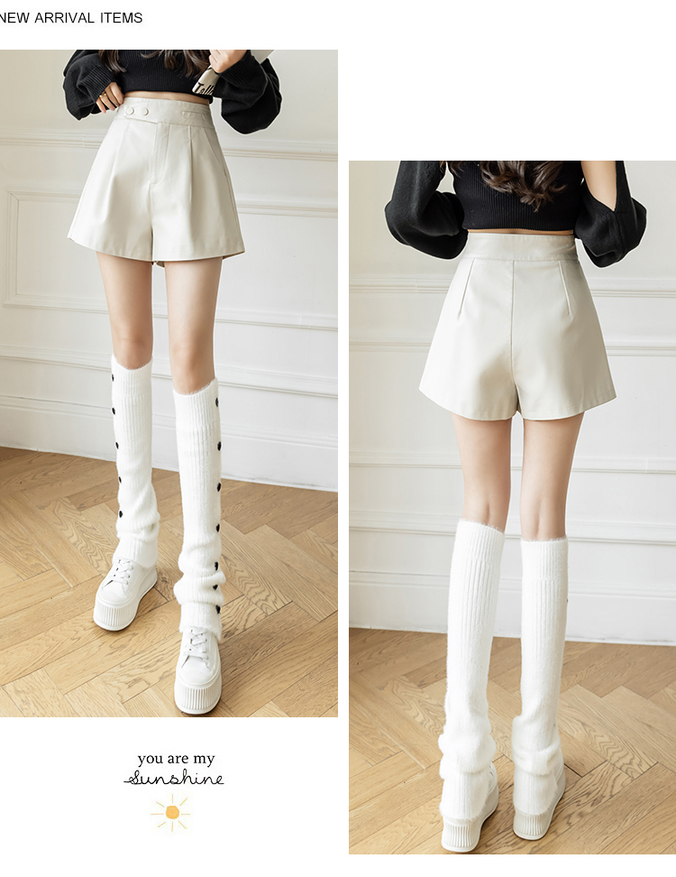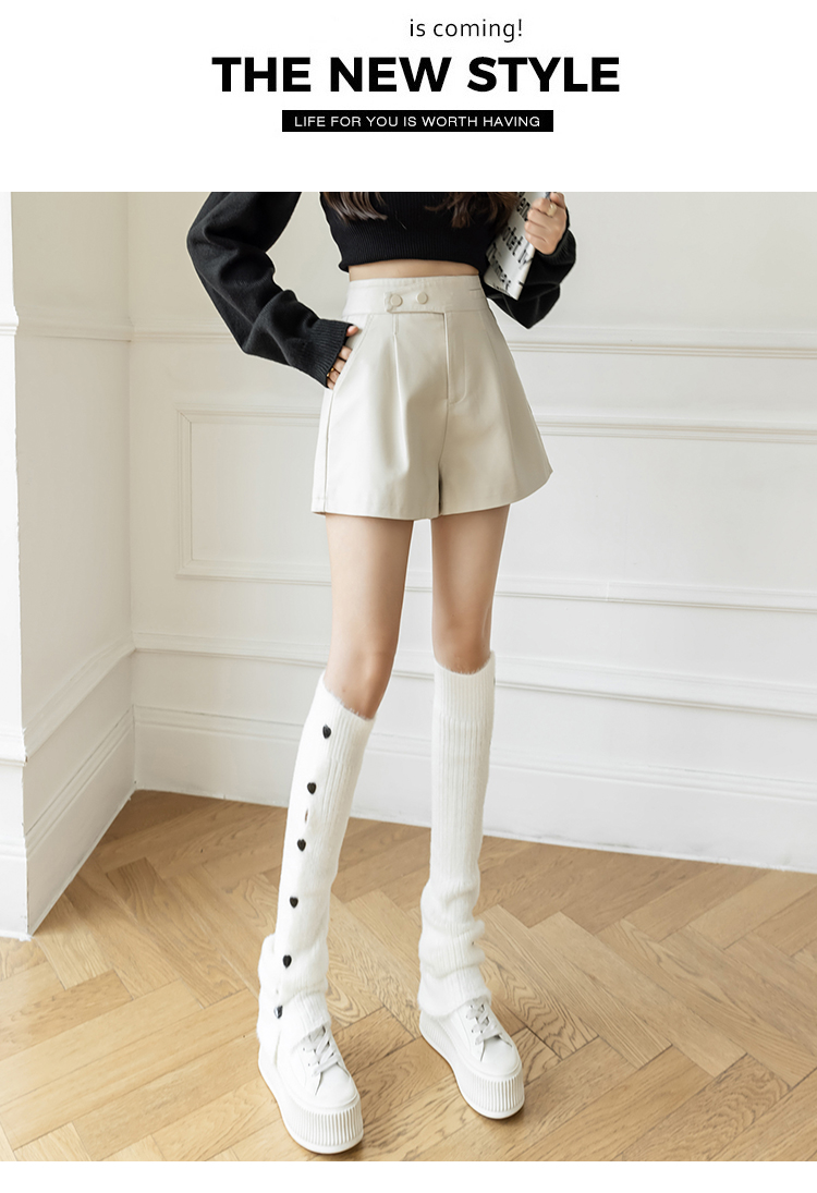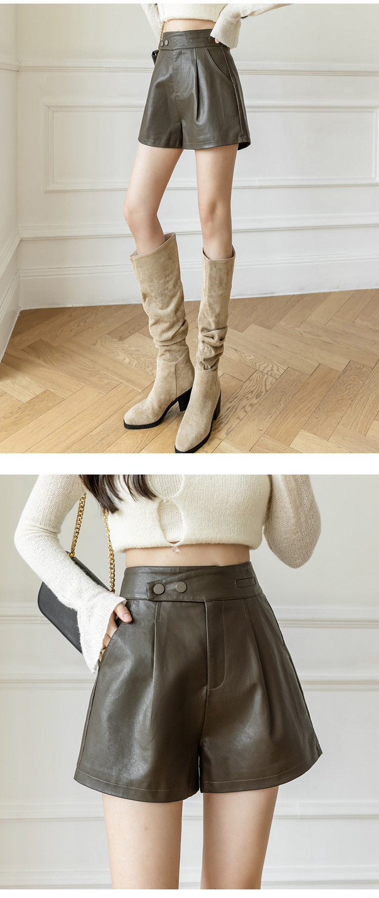 MY15790# PU皮裤女休闲高腰短裤宽松开叉显瘦外穿a字阔腿靴裤女裝貨源服裝批發