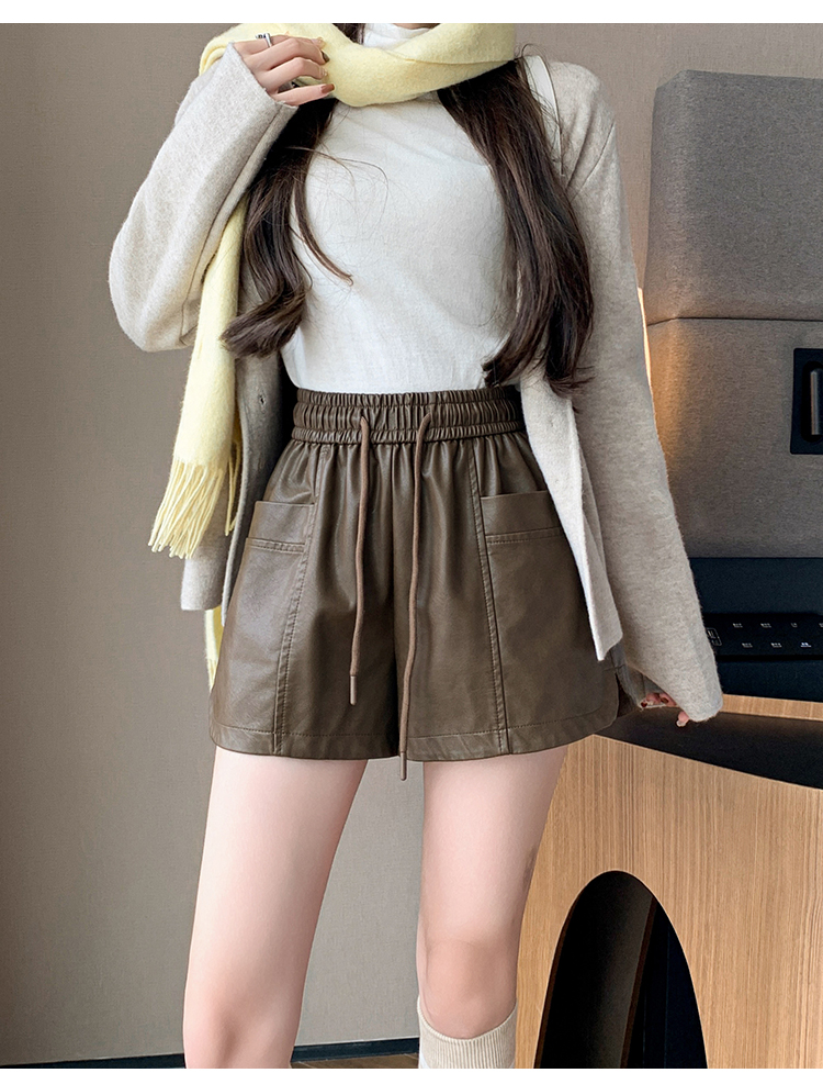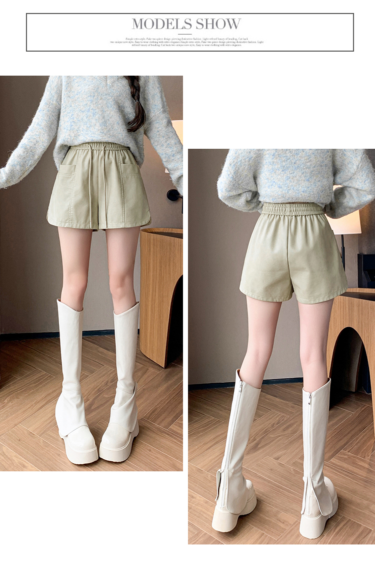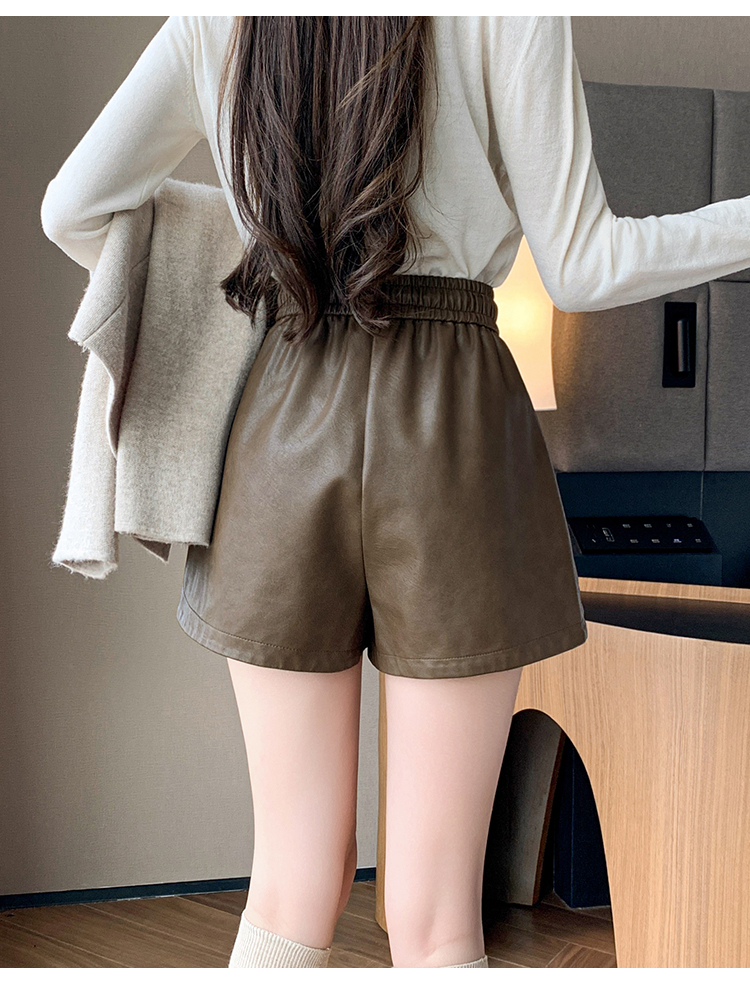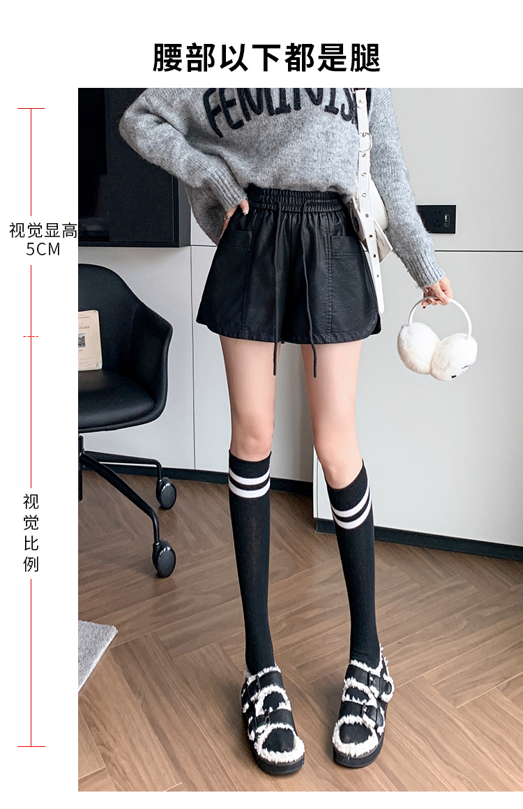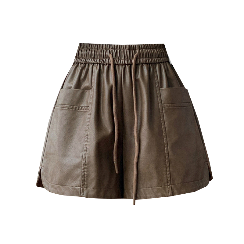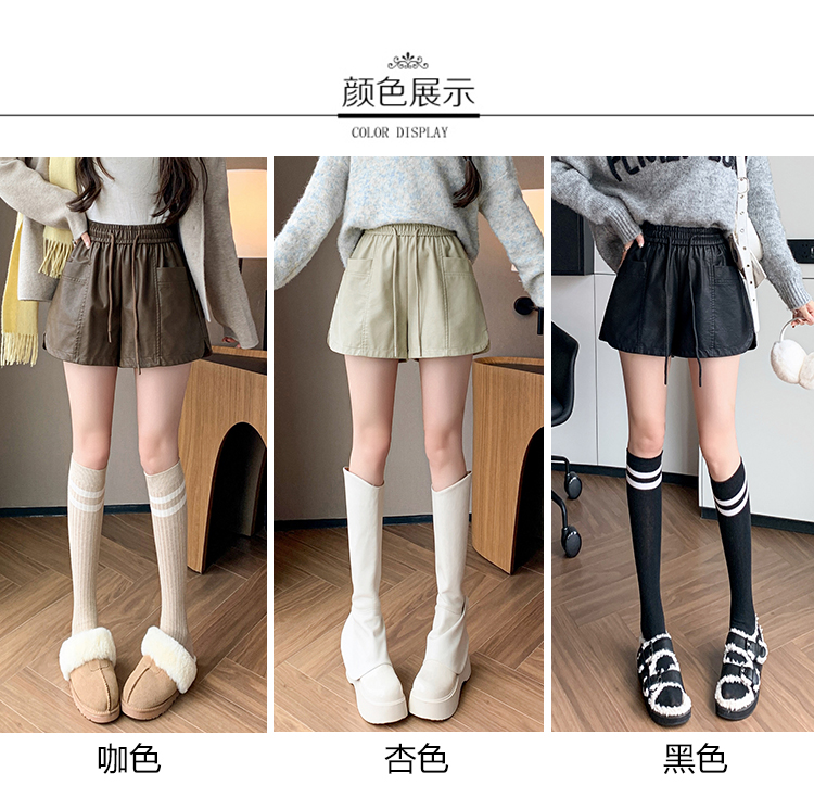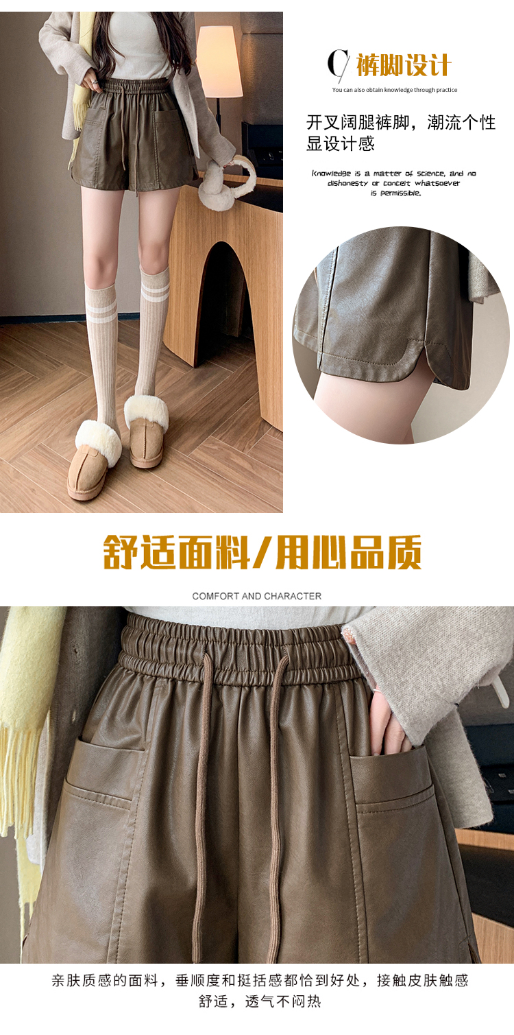 MY15791# PU皮短裤新款外穿松紧腰皮裤宽松高腰阔腿裤靴裤女裝貨源服裝批發