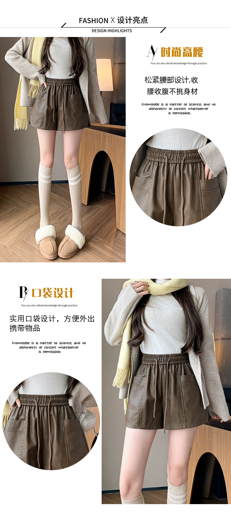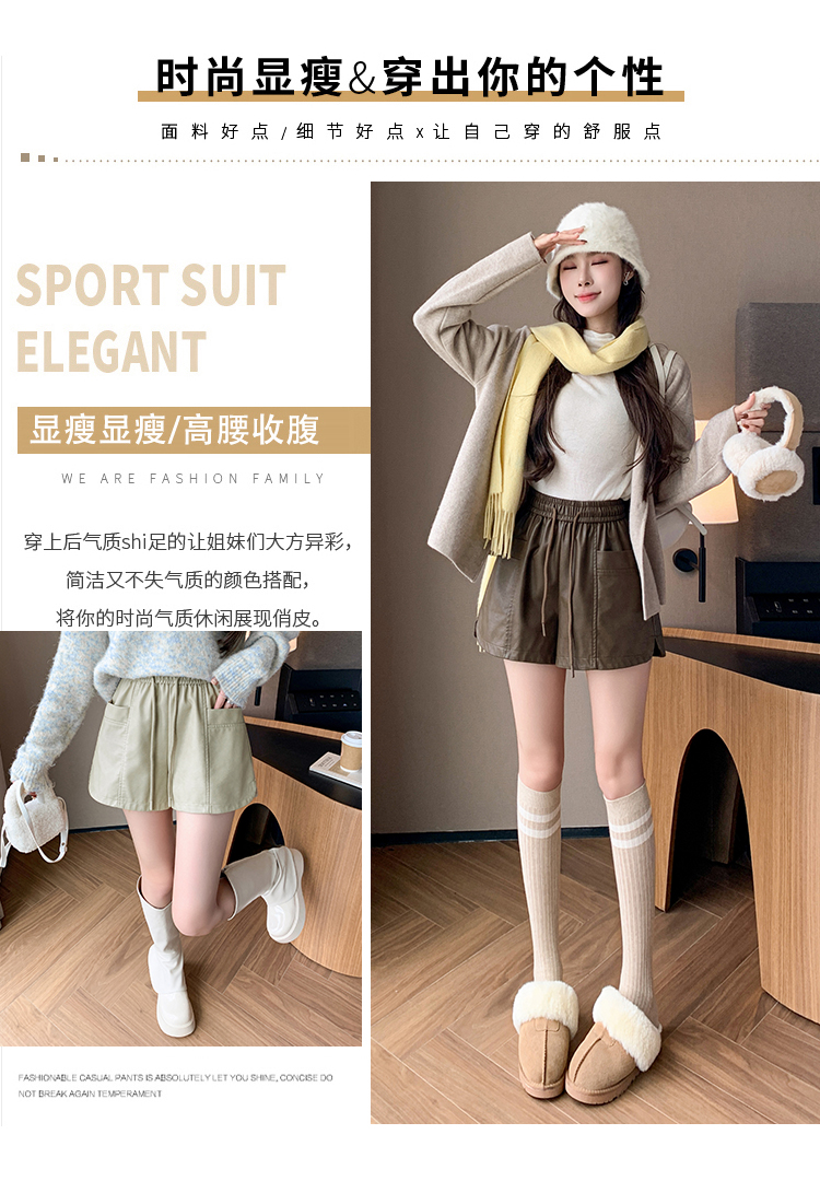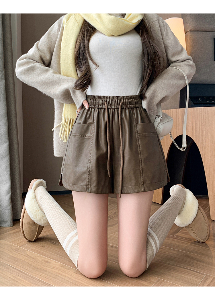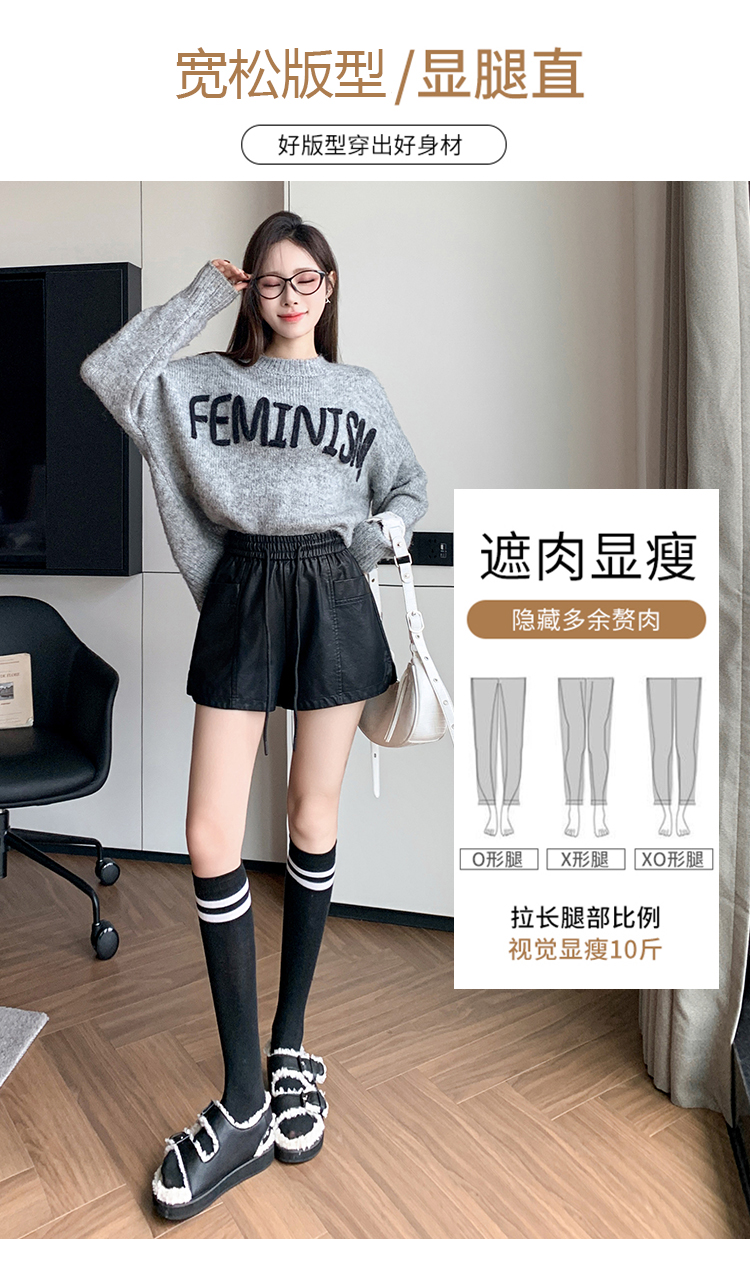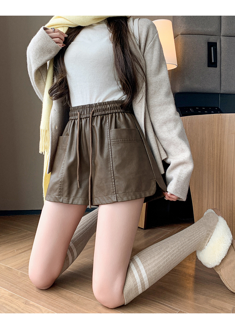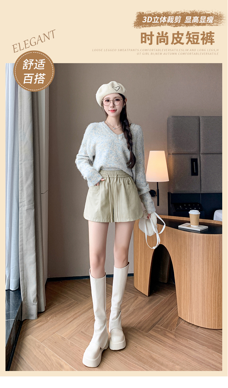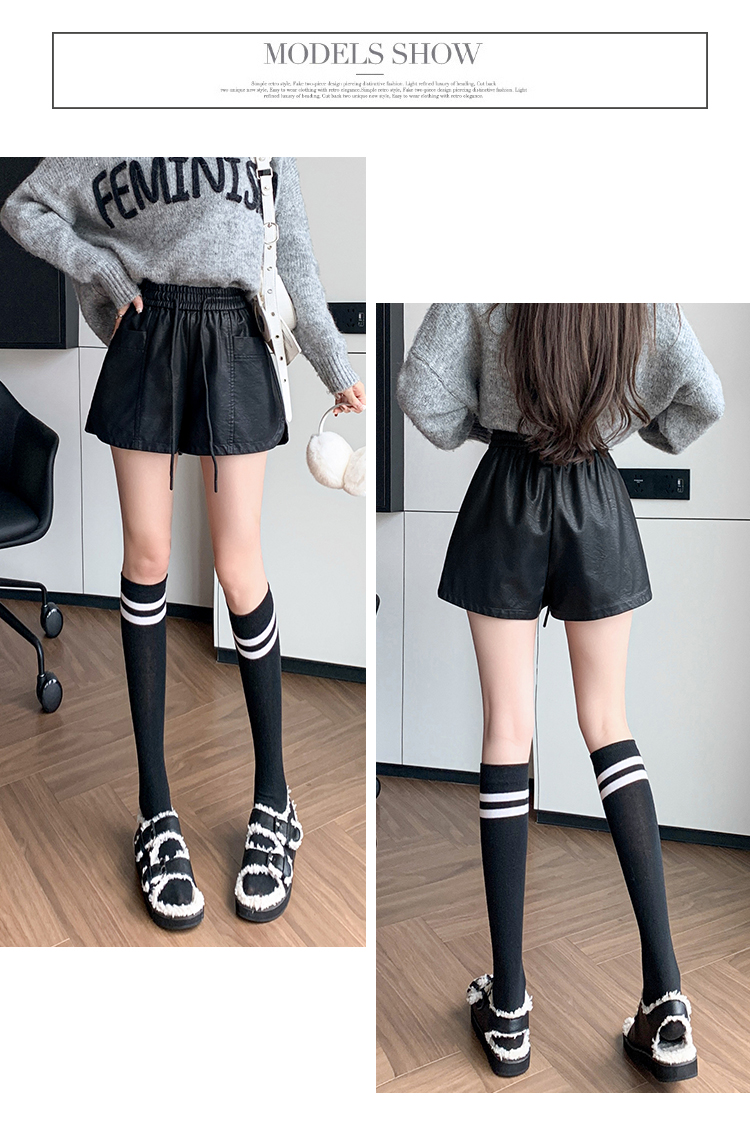 MY15791# PU皮短裤新款外穿松紧腰皮裤宽松高腰阔腿裤靴裤女裝貨源服裝批發