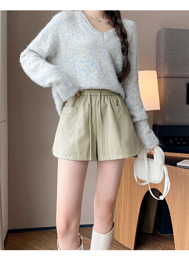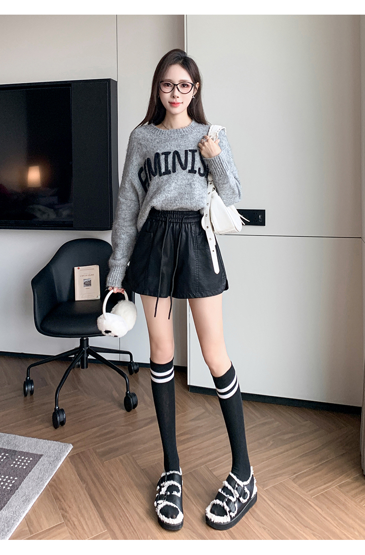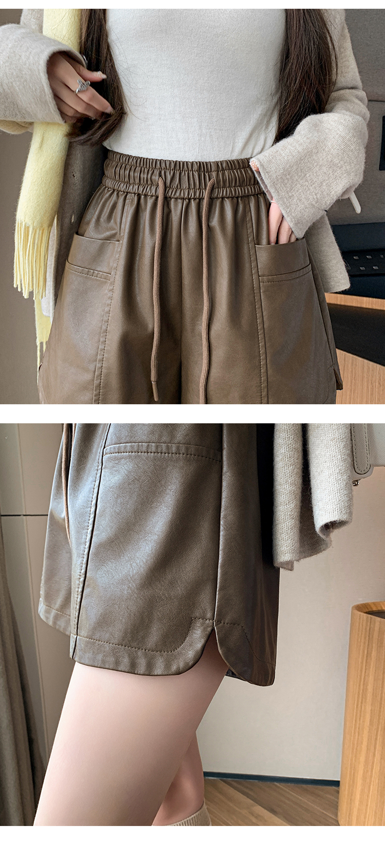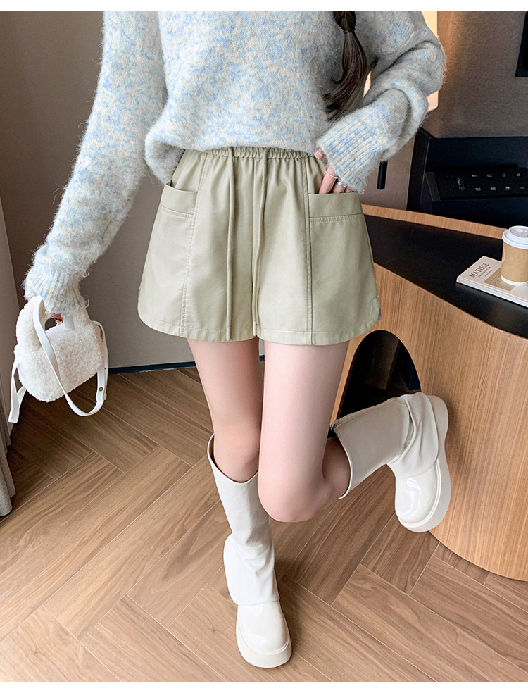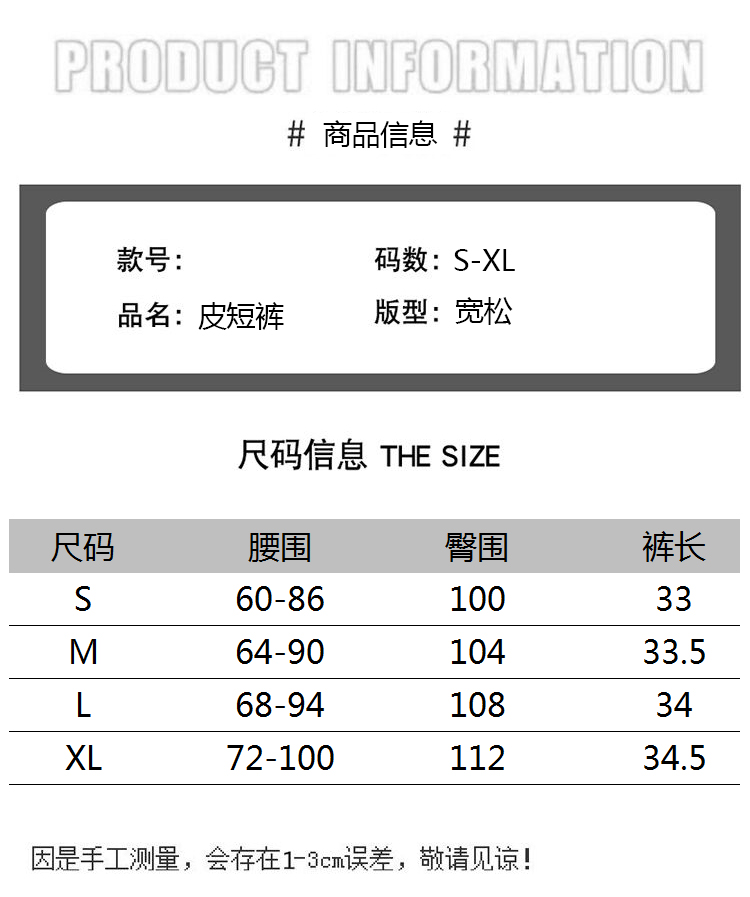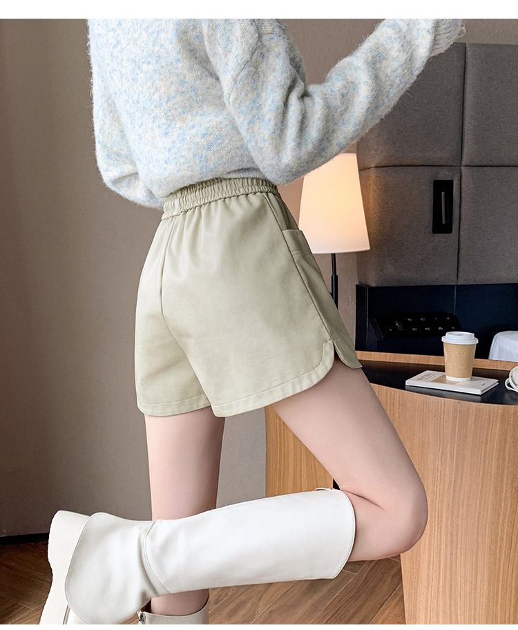 MY15791# PU皮短裤新款外穿松紧腰皮裤宽松高腰阔腿裤靴裤女裝貨源服裝批發