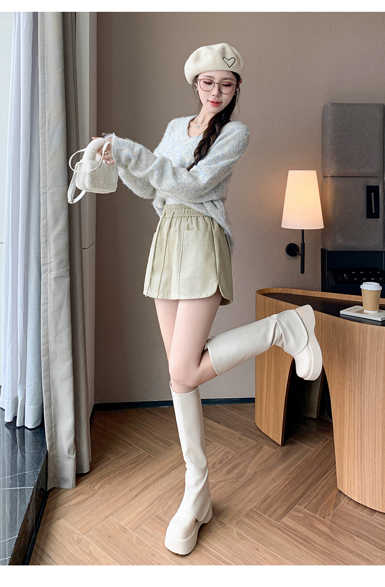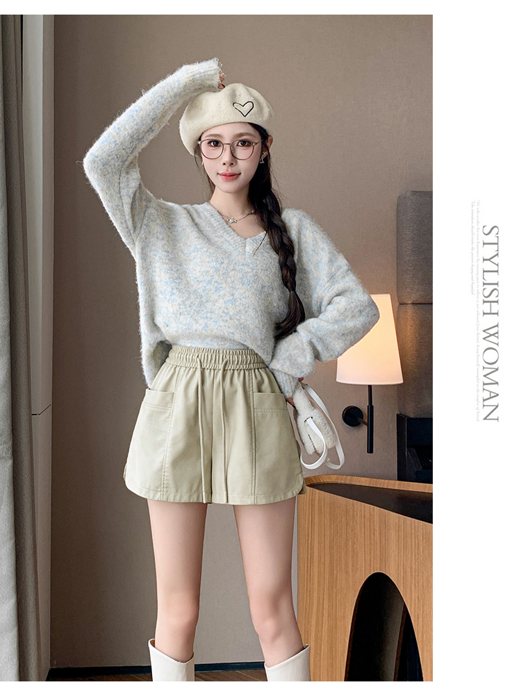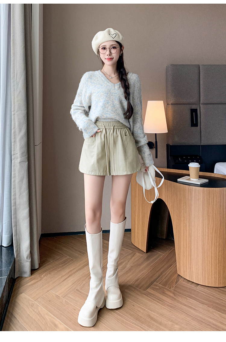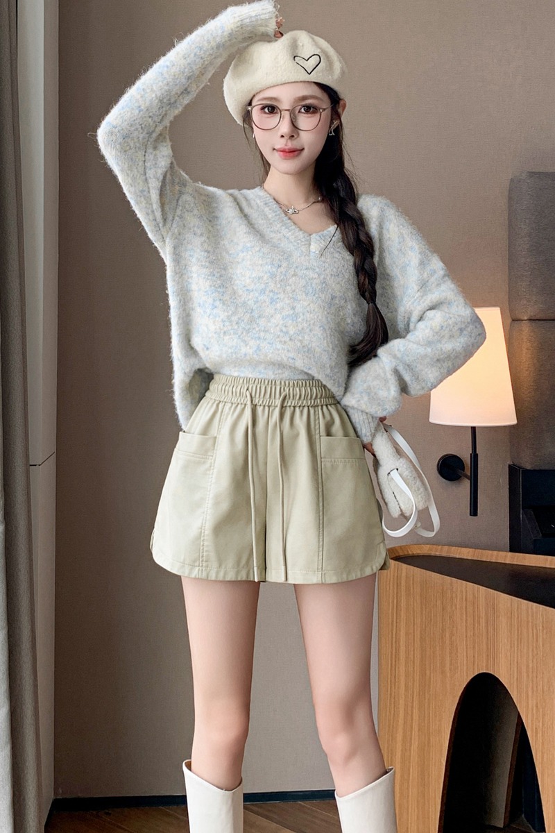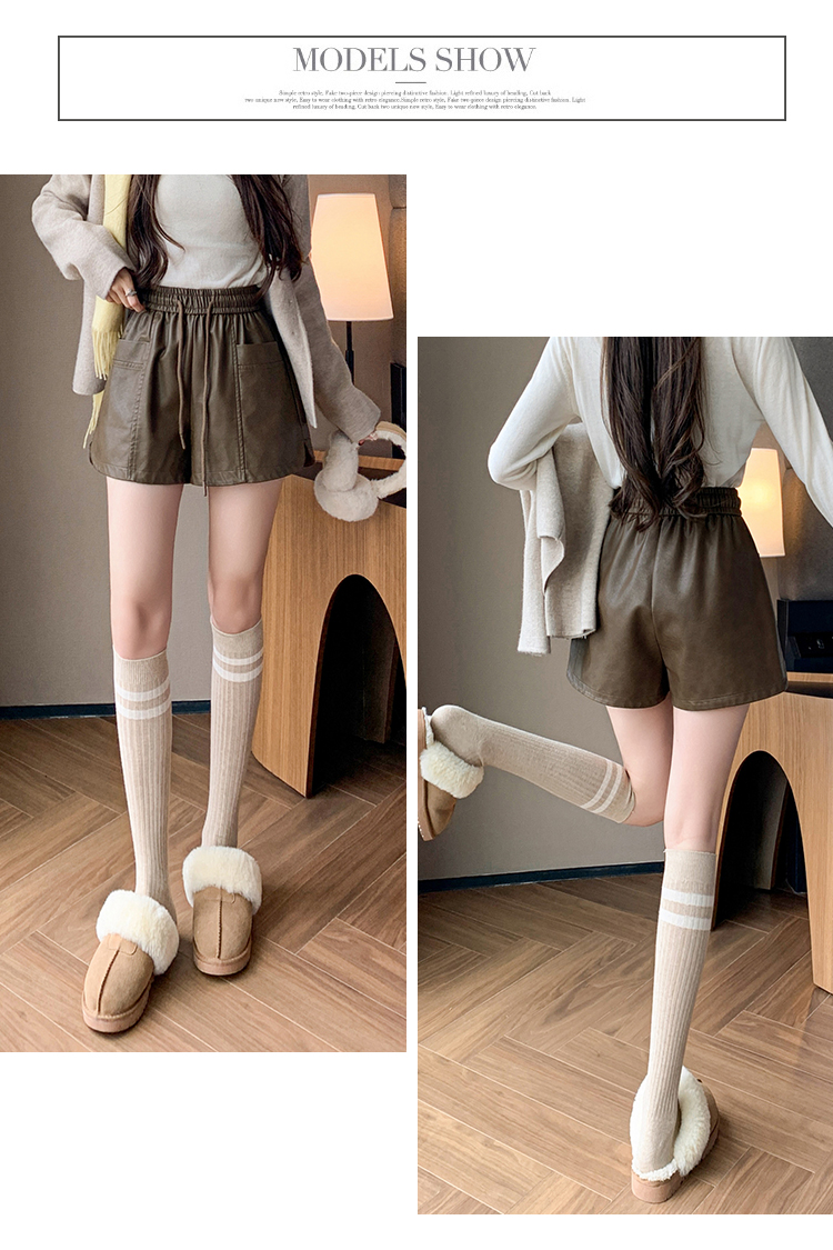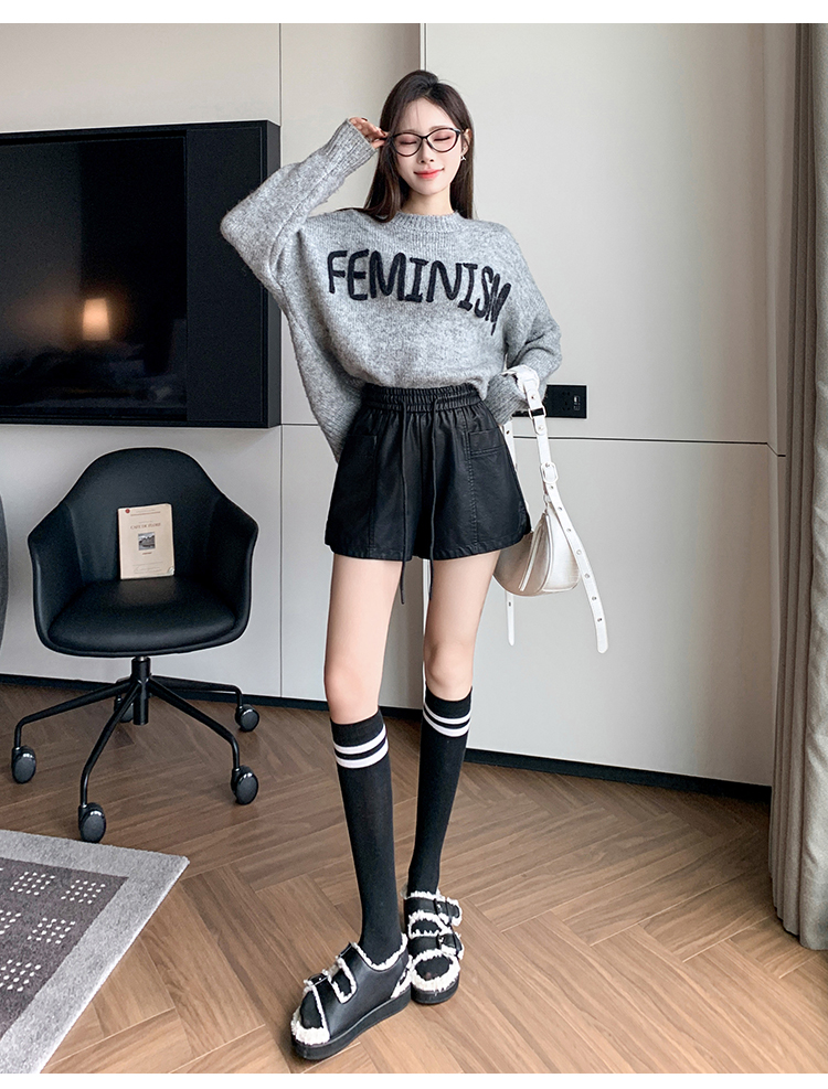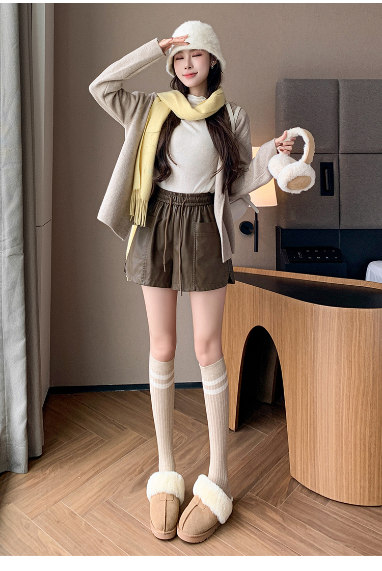 MY15791# PU皮短裤新款外穿松紧腰皮裤宽松高腰阔腿裤靴裤女裝貨源服裝批發
