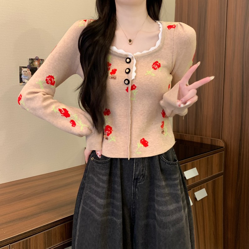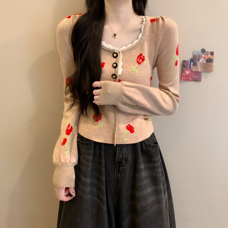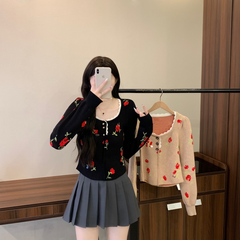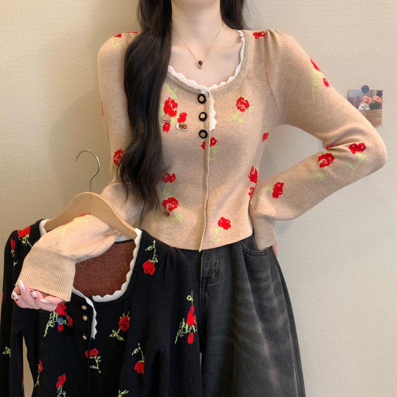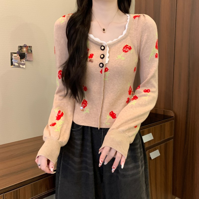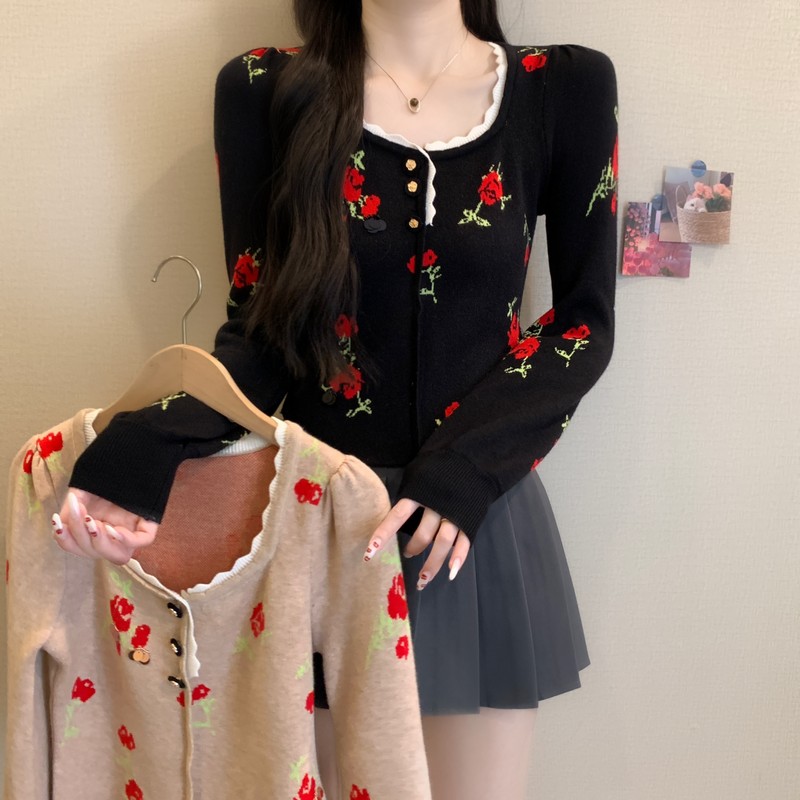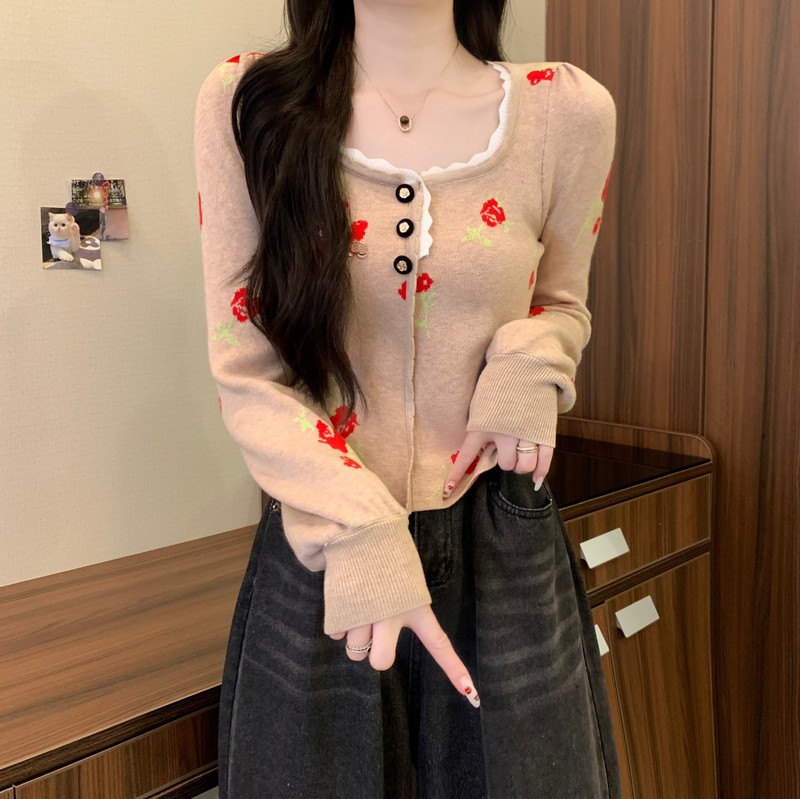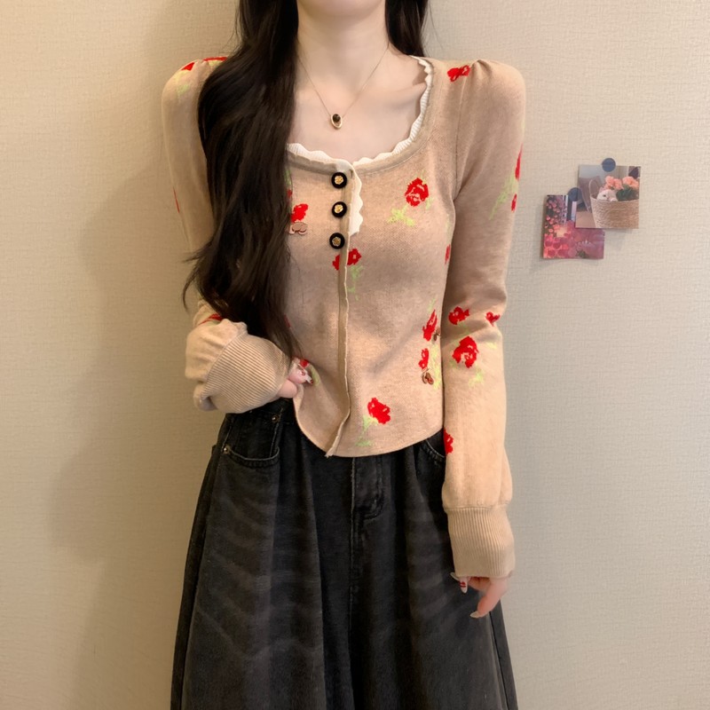 MY15792# 新款法式气质复古花边方领玫瑰提花正肩收腰显瘦上衣女裝貨源服裝批發