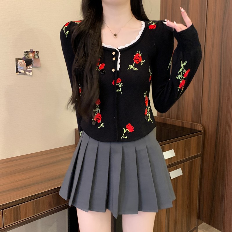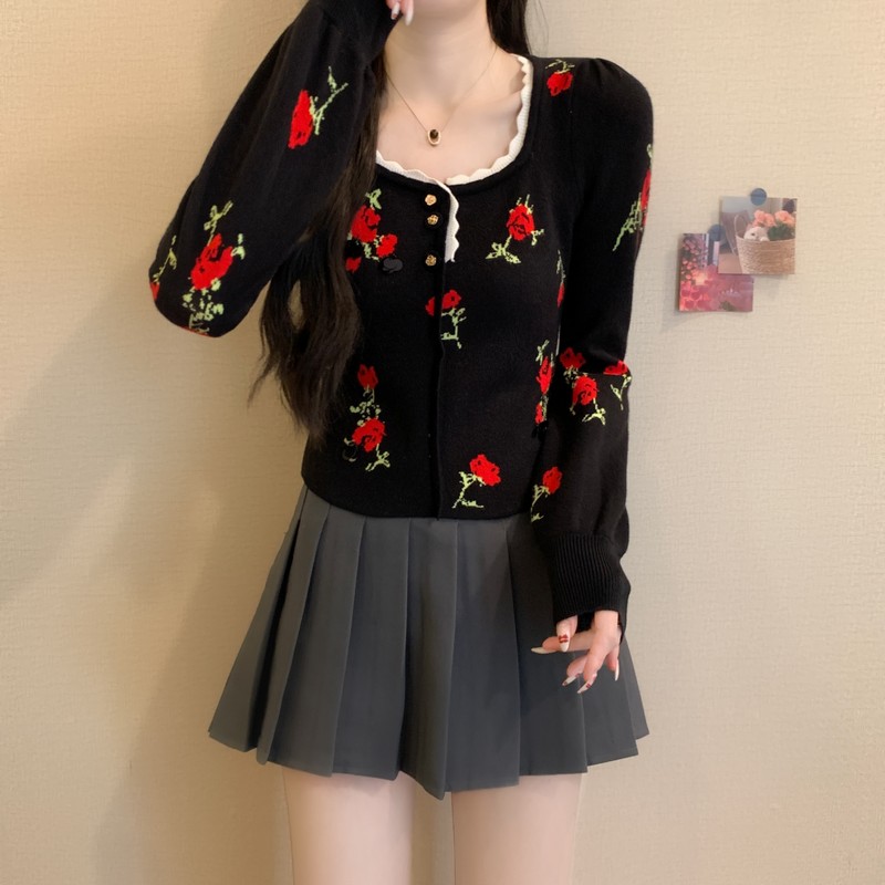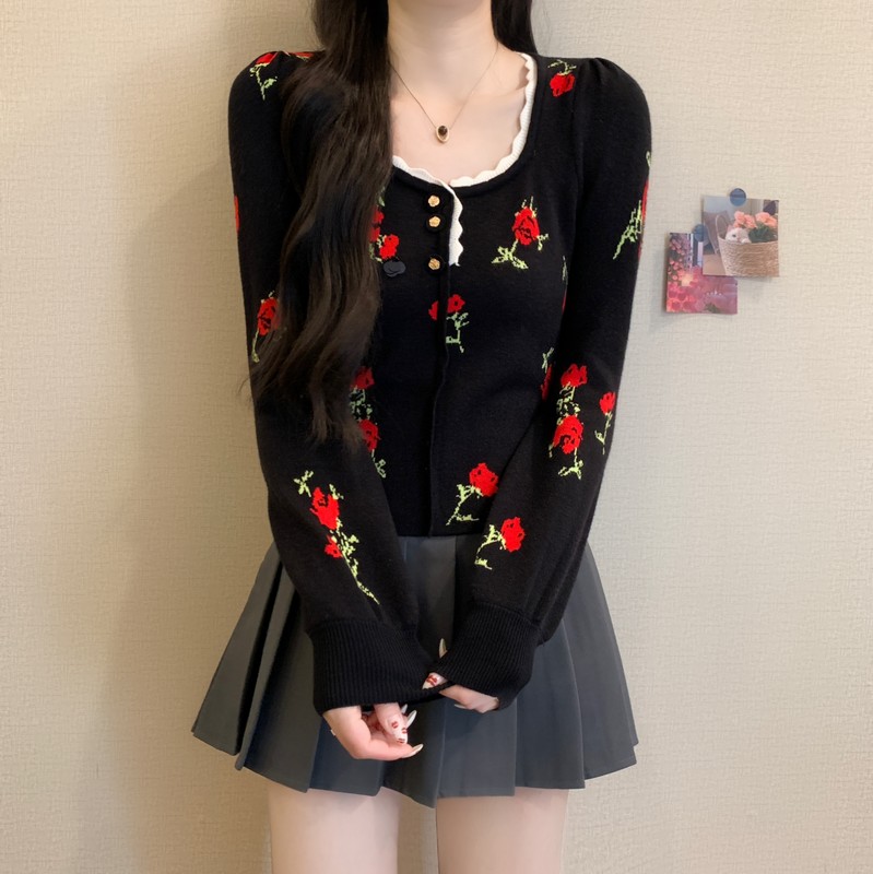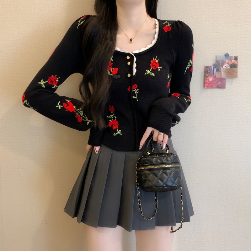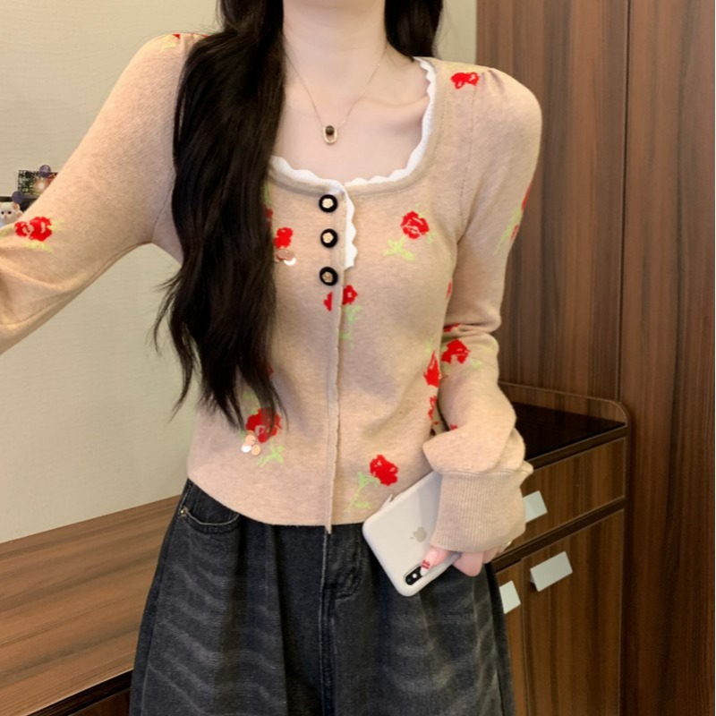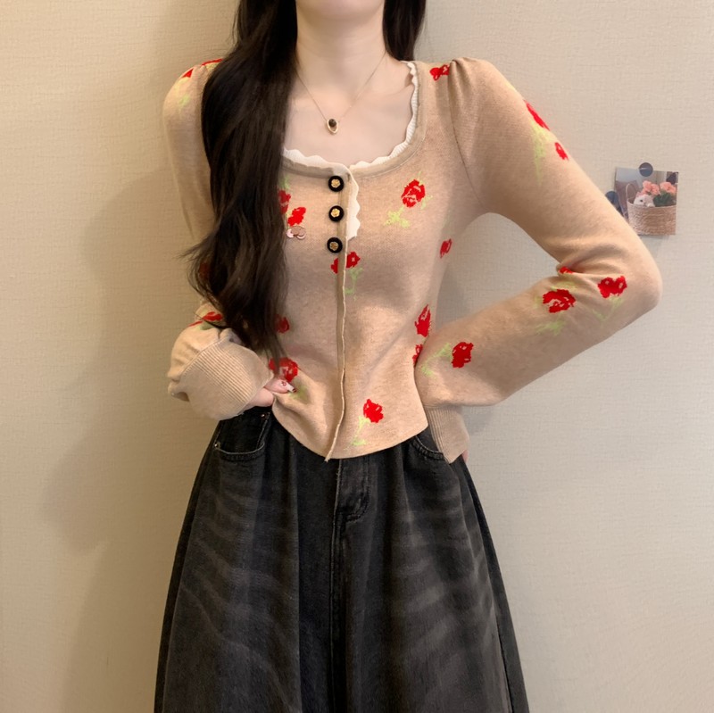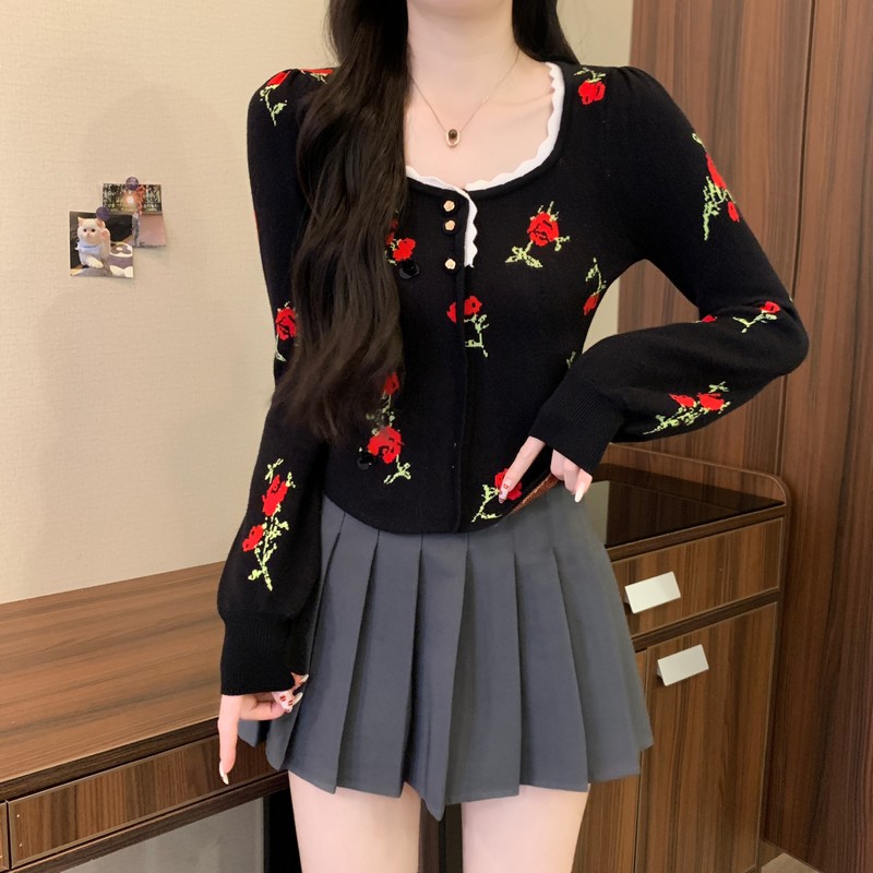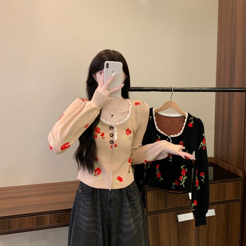 MY15792# 新款法式气质复古花边方领玫瑰提花正肩收腰显瘦上衣女裝貨源服裝批發