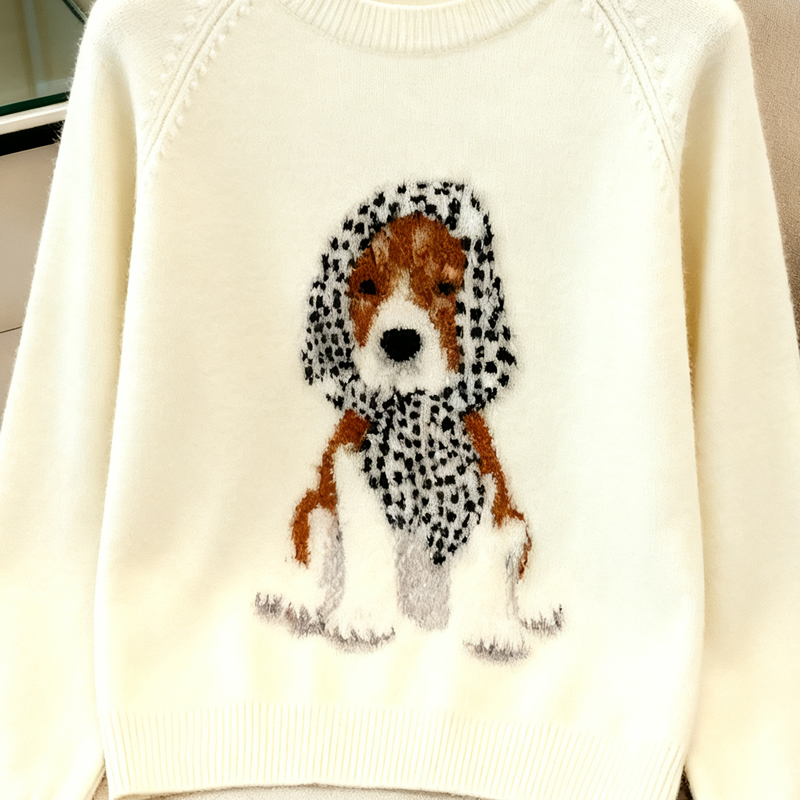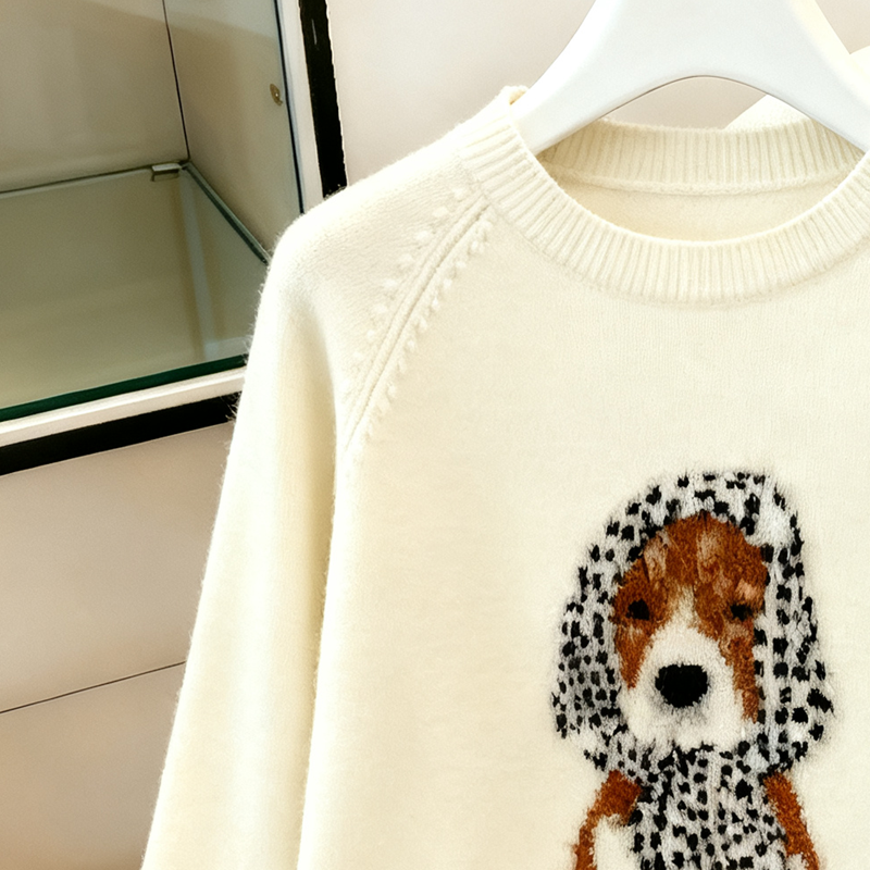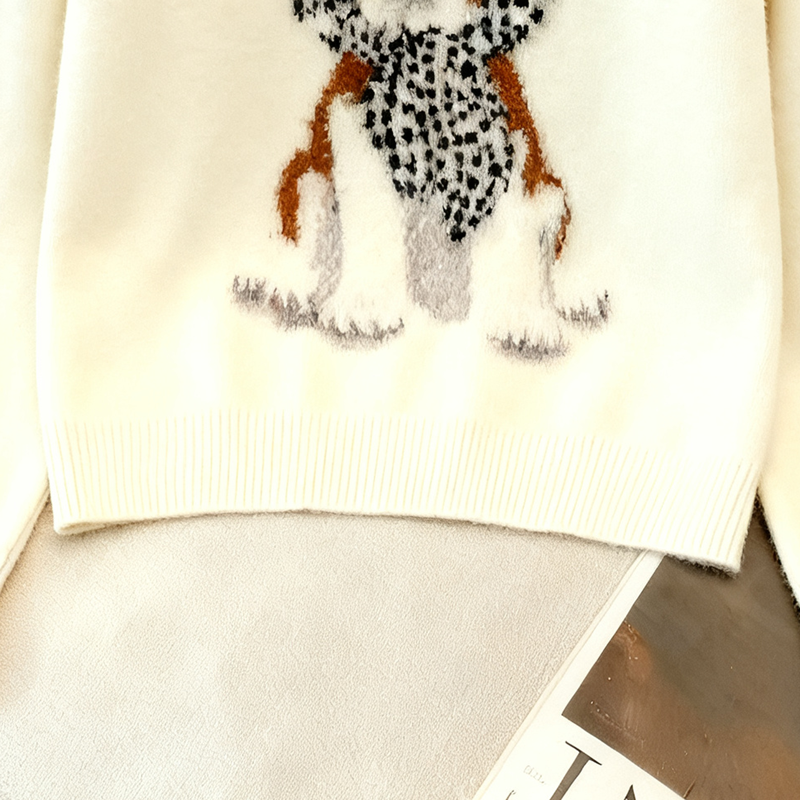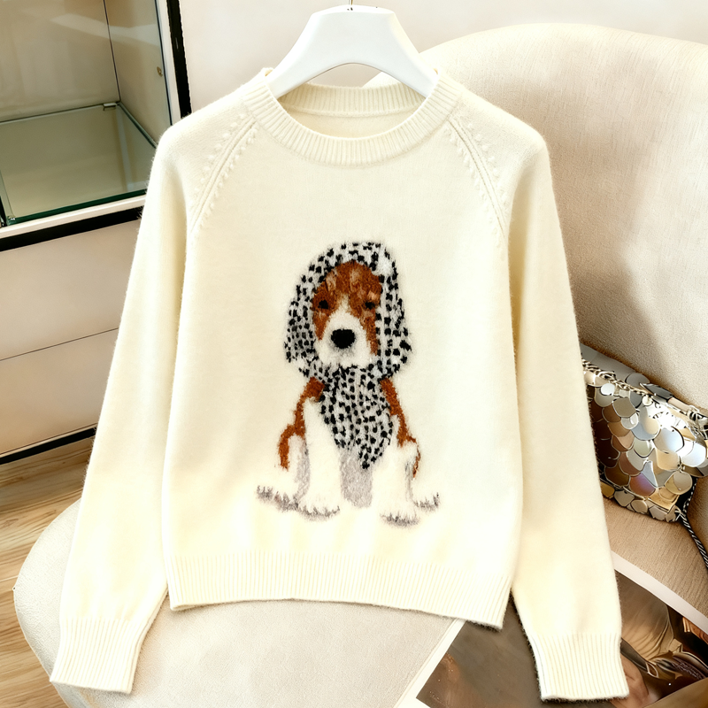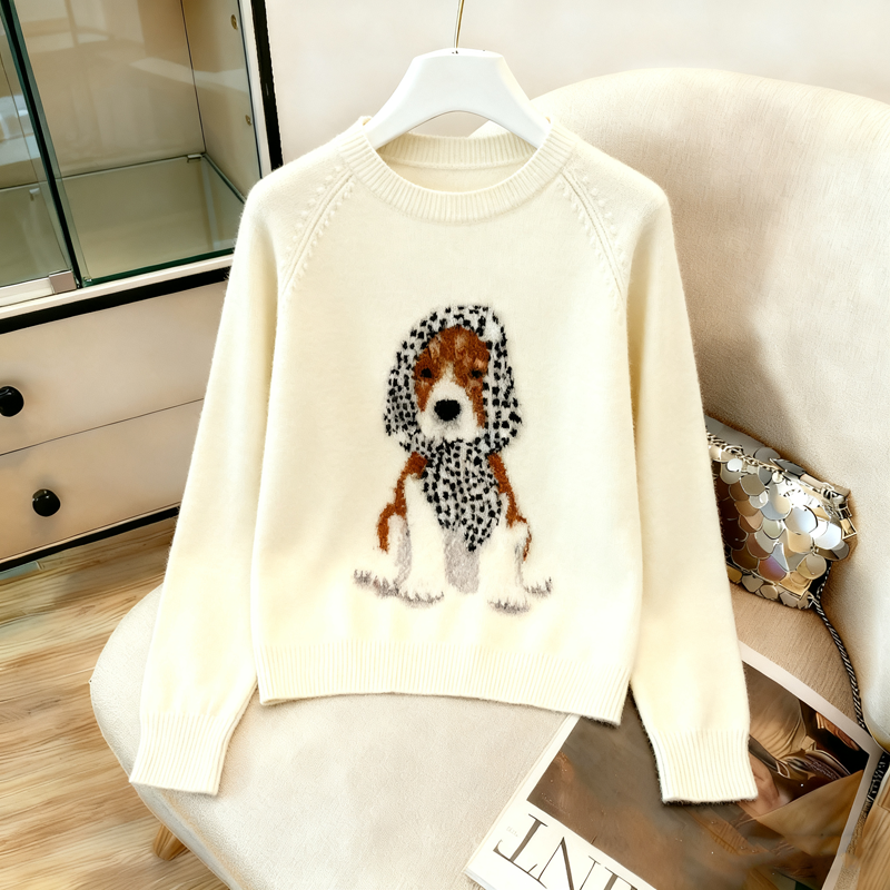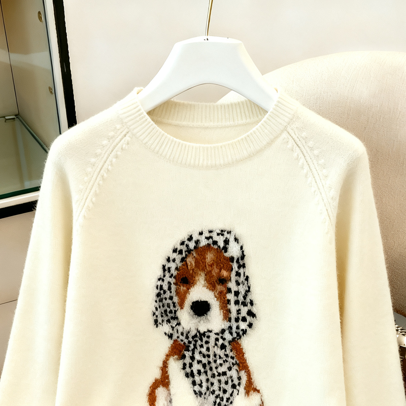 MY15798# 软糯慵懒风小狗提花长袖毛衣新款外穿圆领宽松针织衫上衣女裝貨源服裝批發