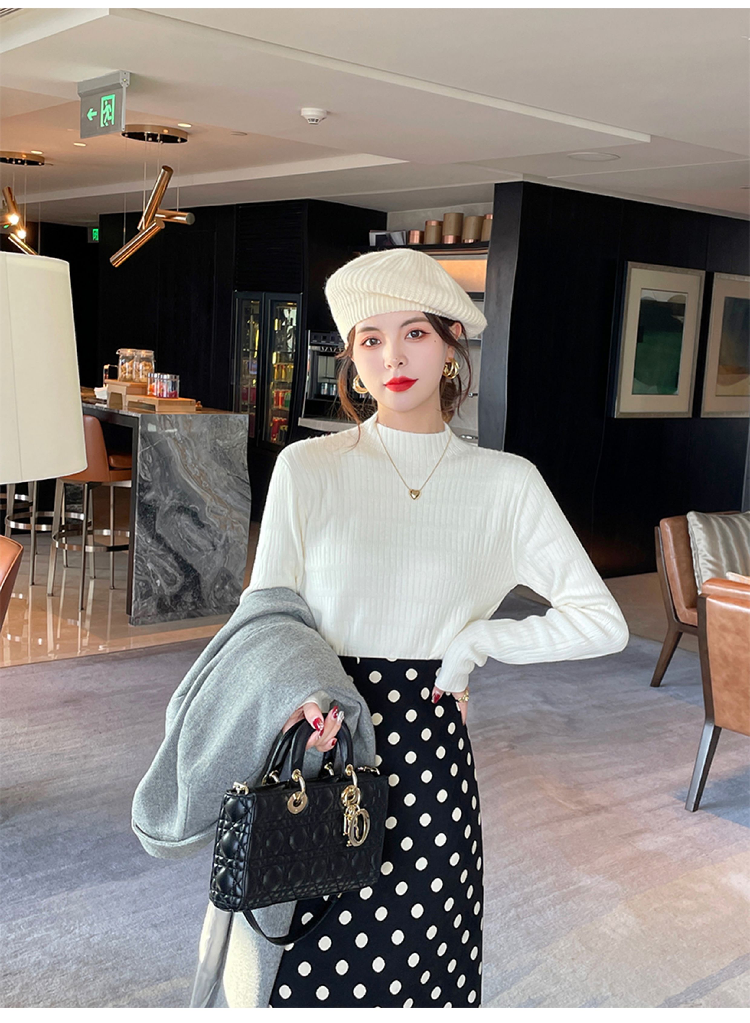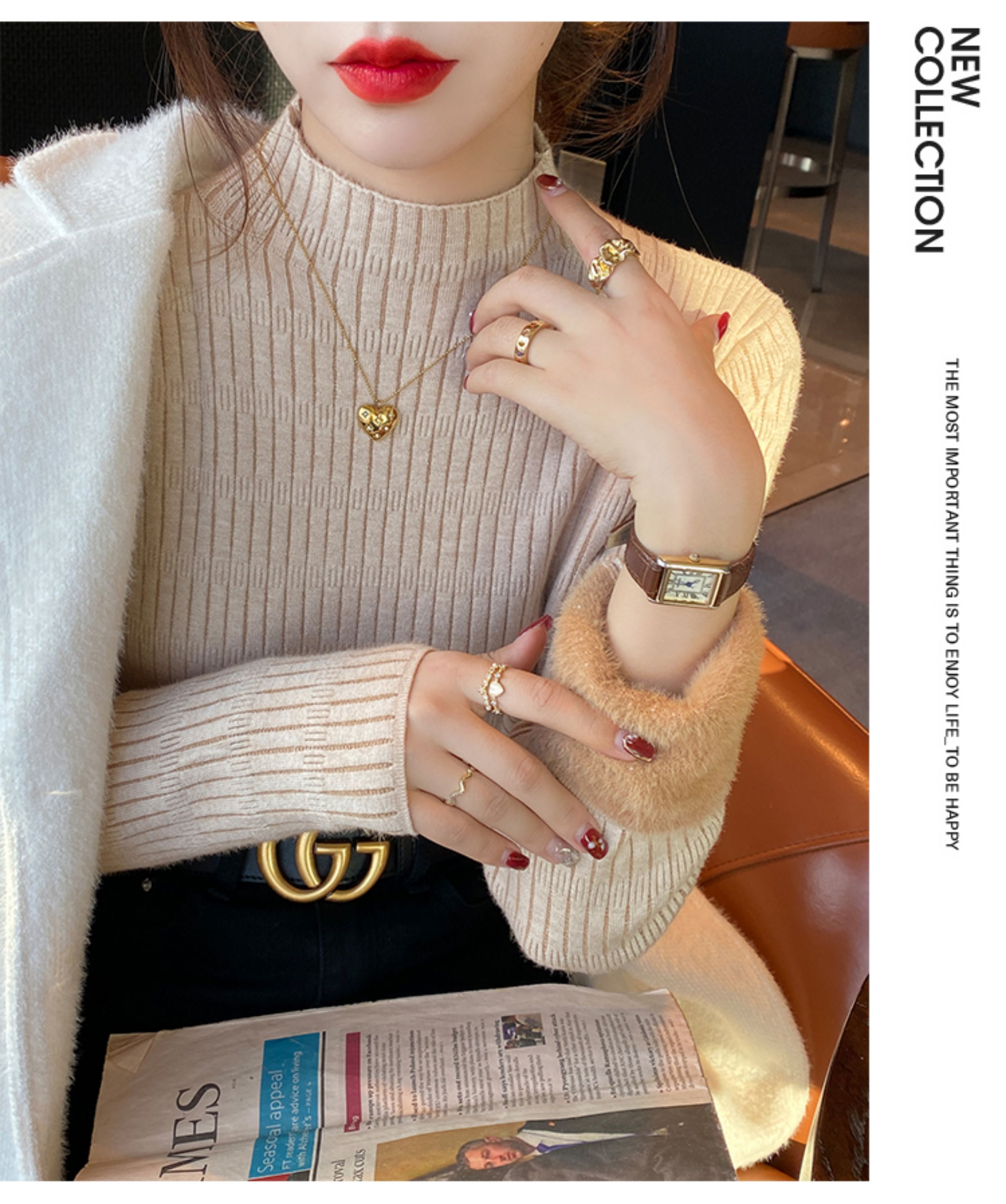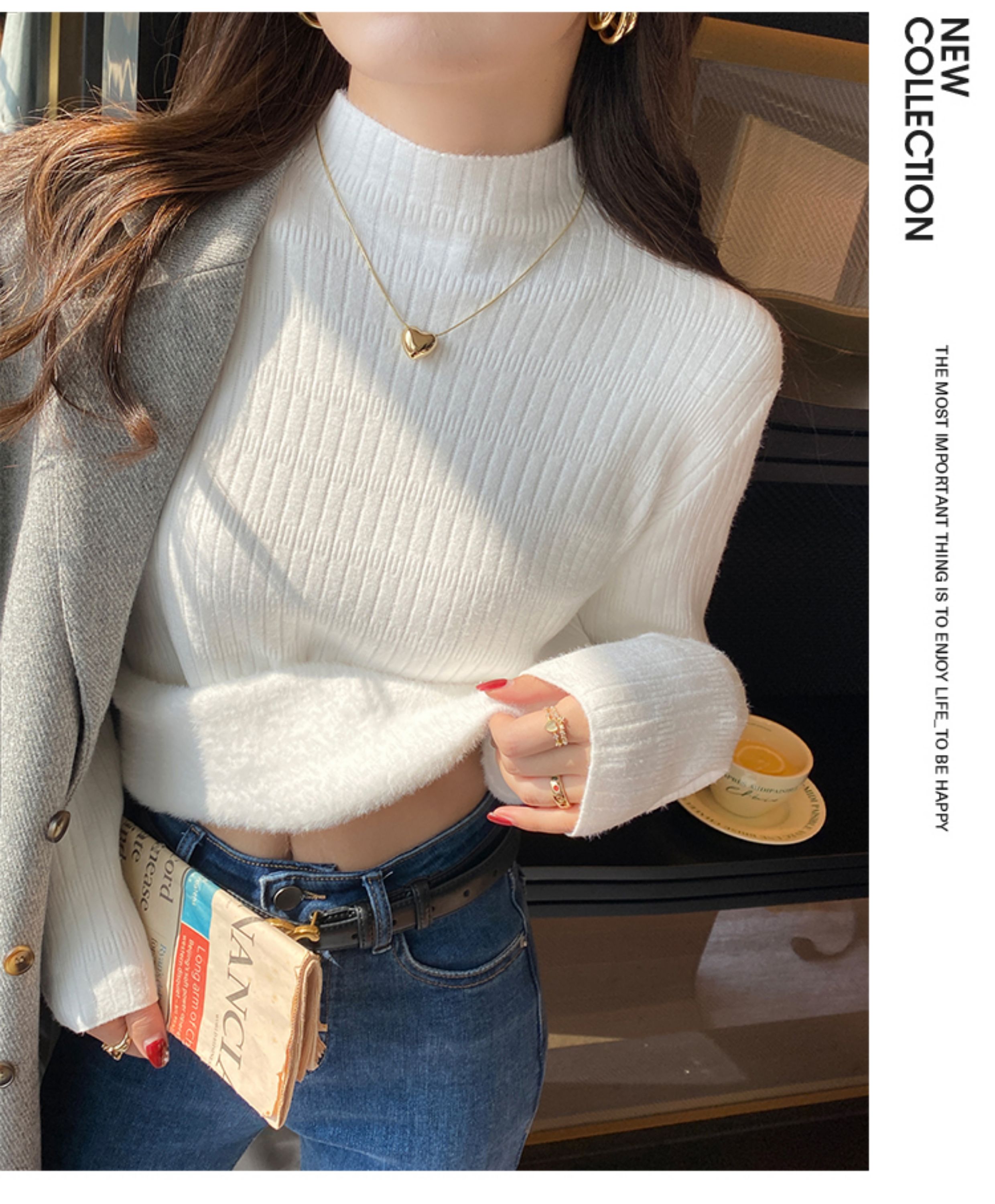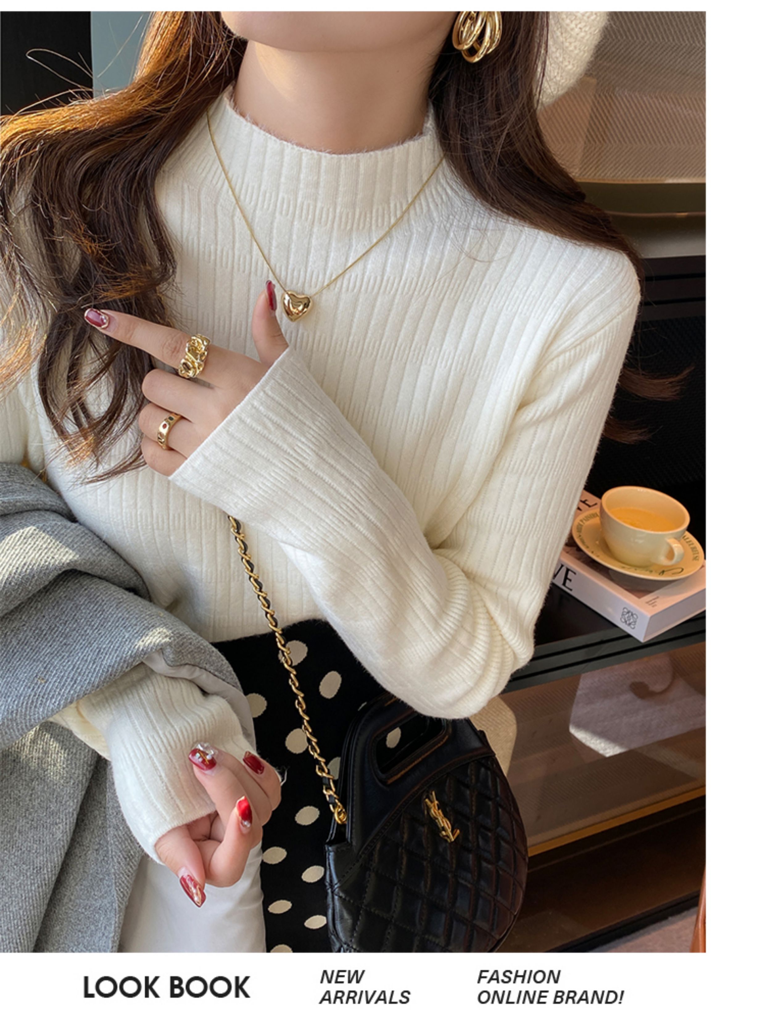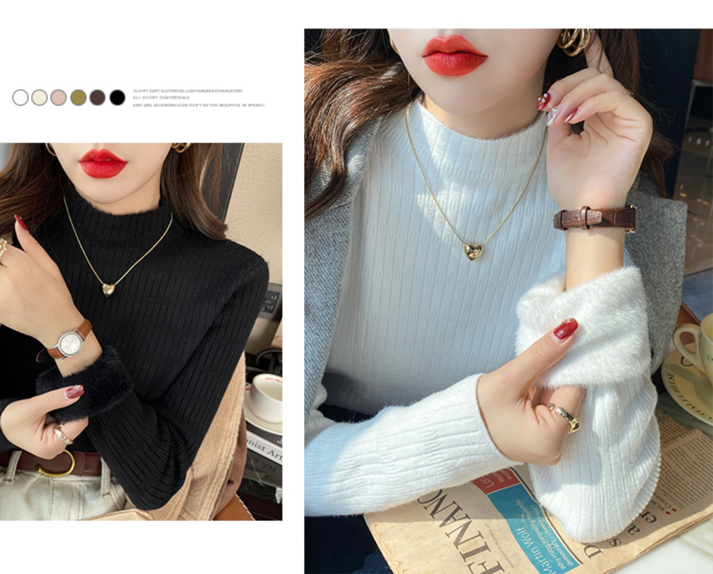MY15805# 白色毛衣新款加绒加厚打底衫内搭保暖针织半高领上衣女裝貨源服裝批發