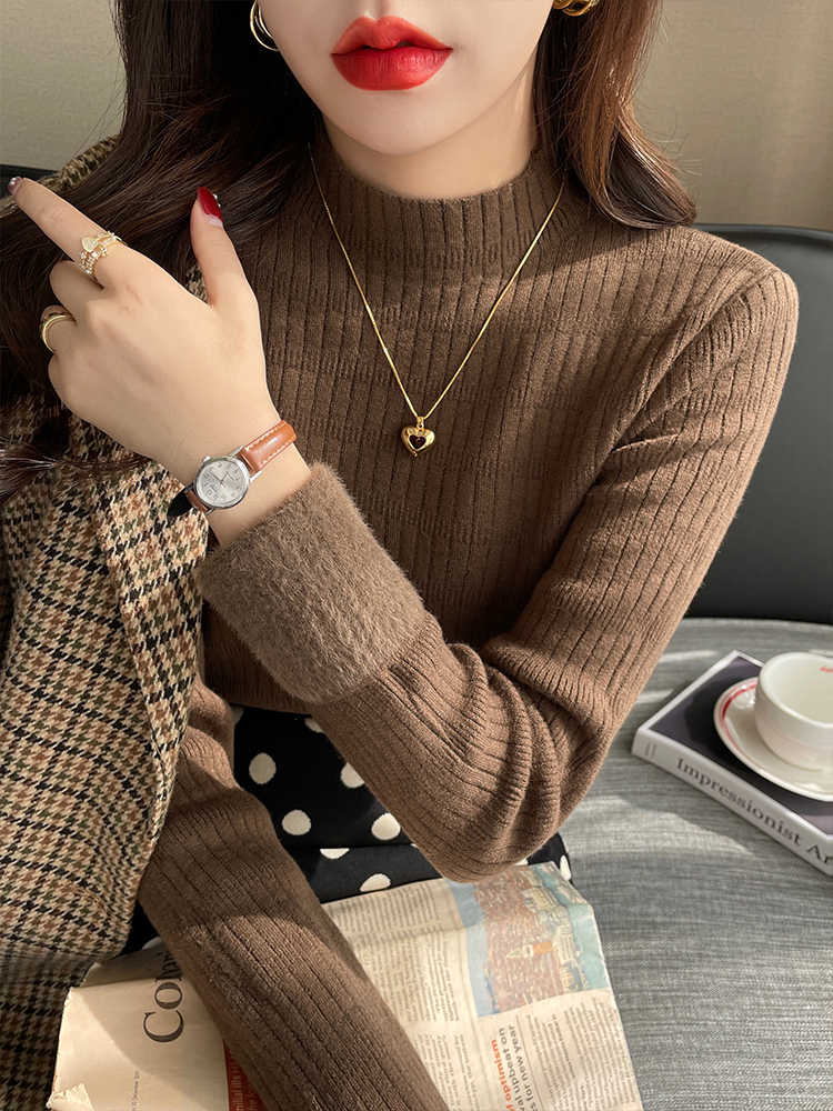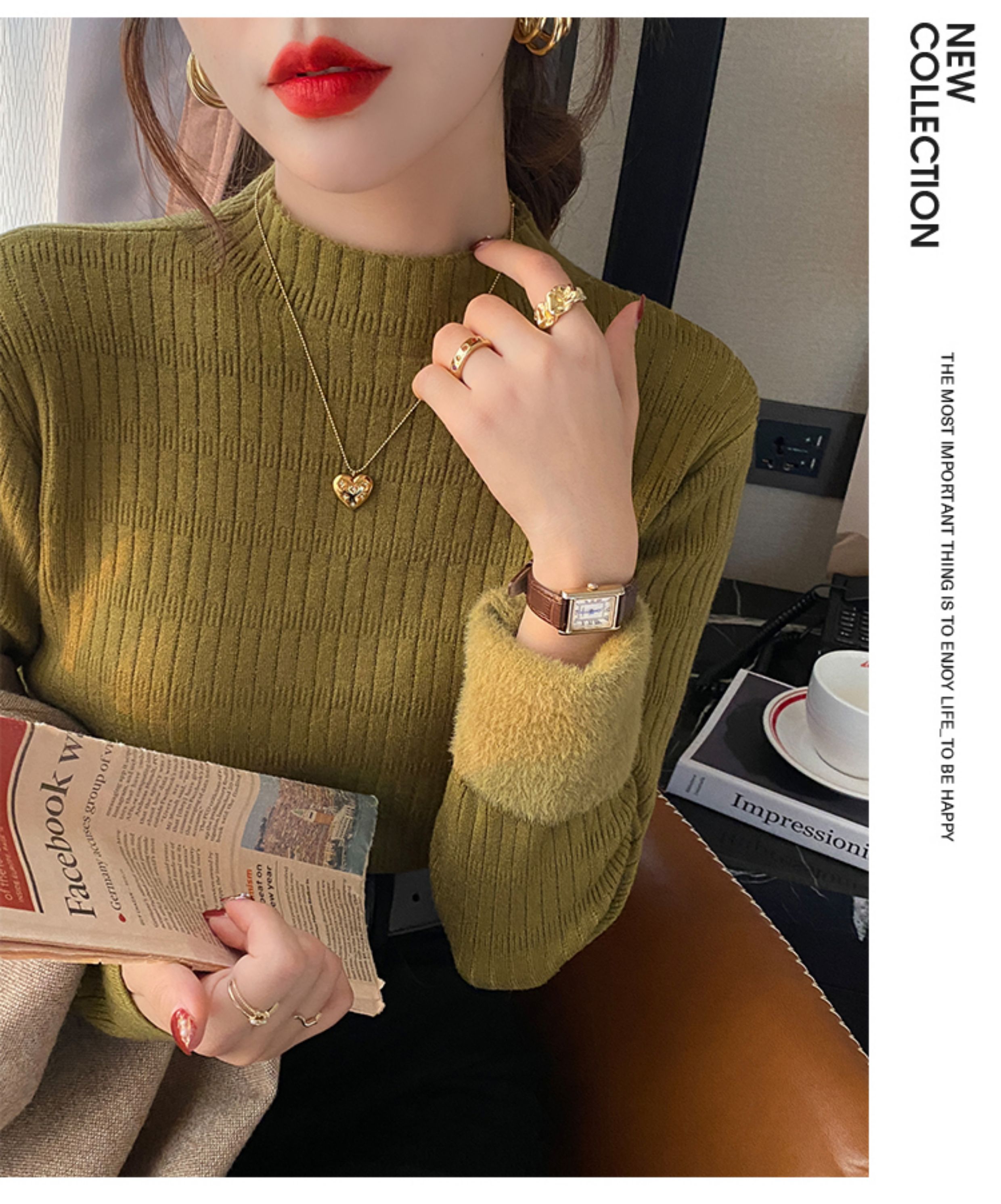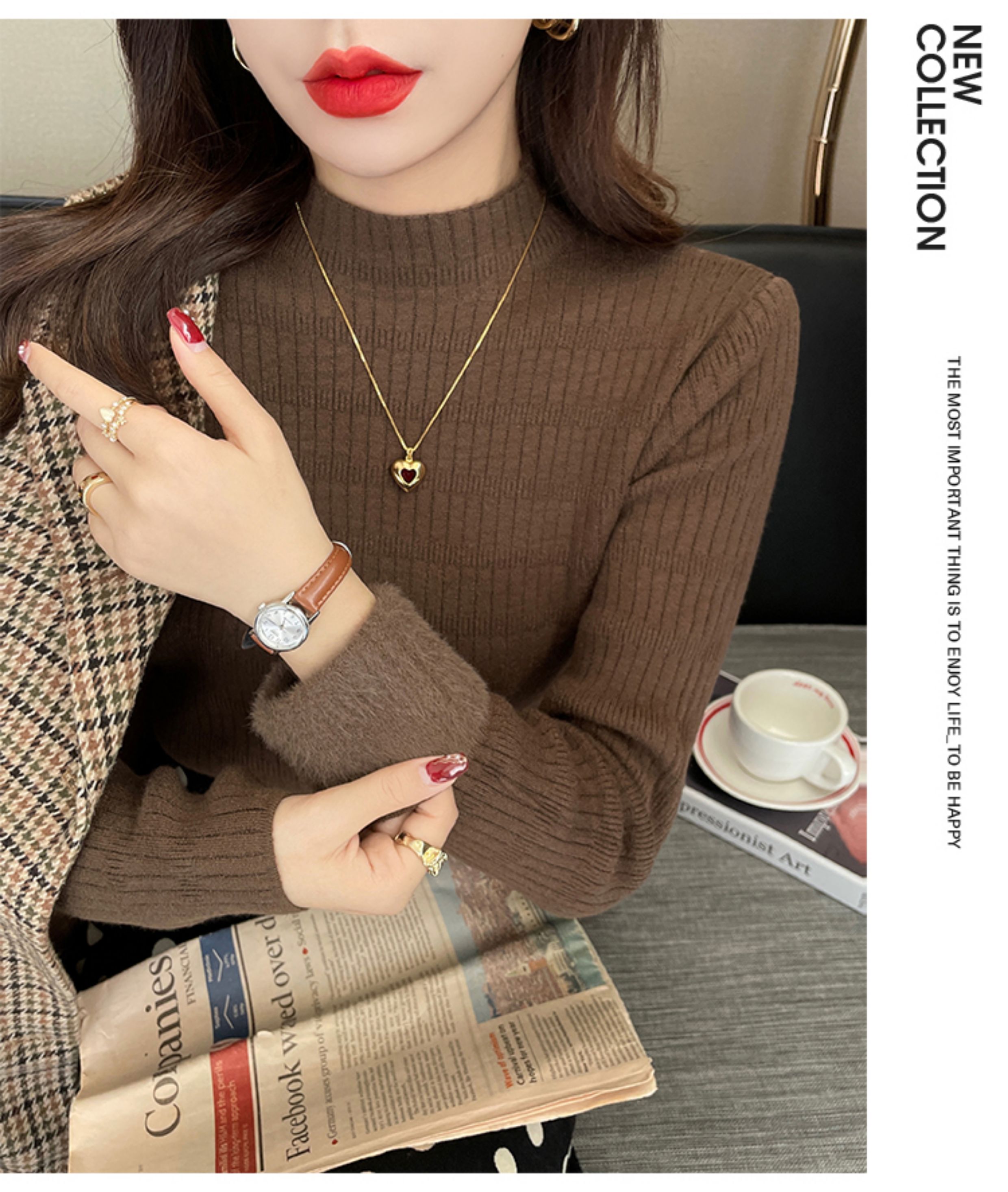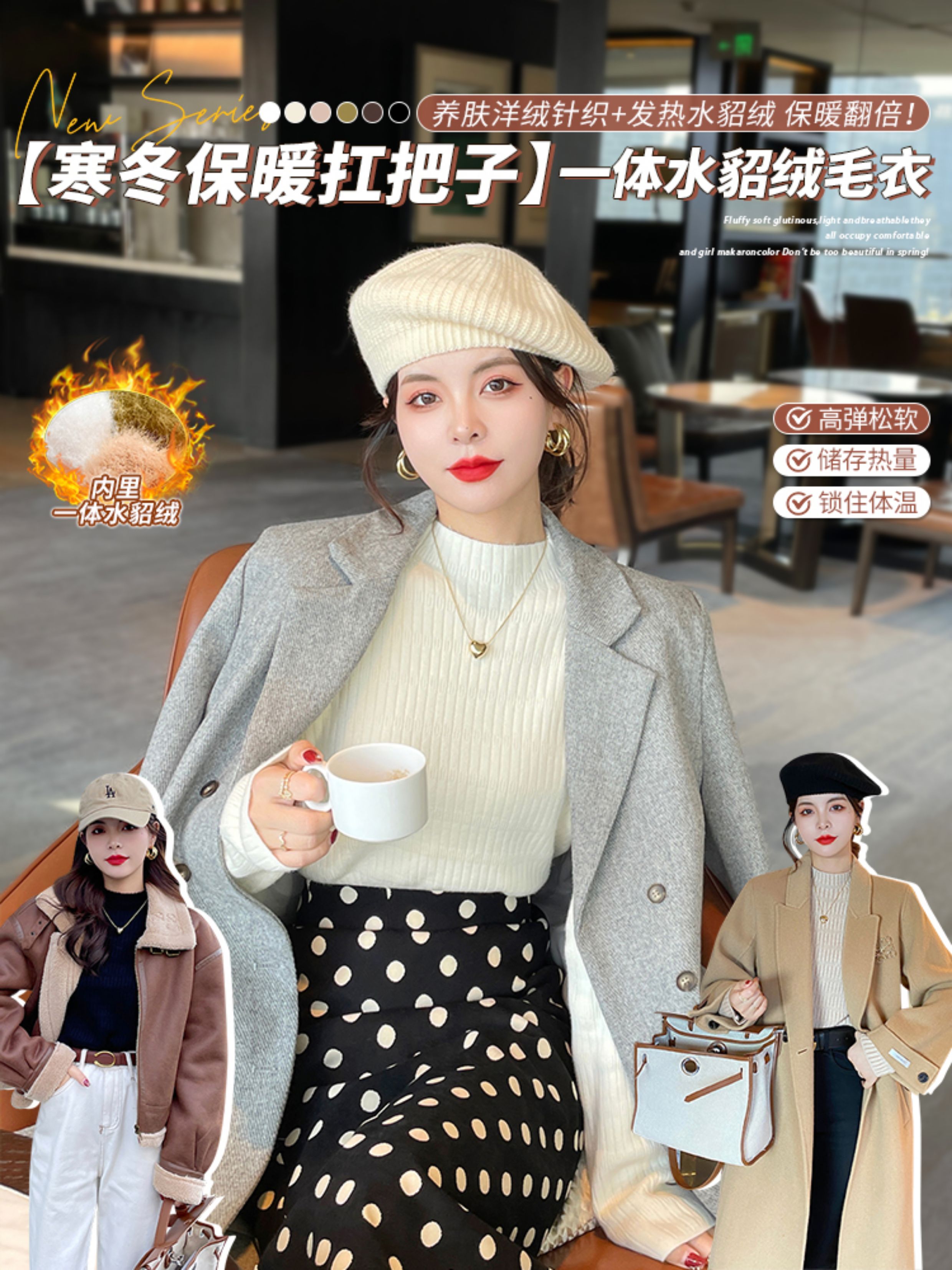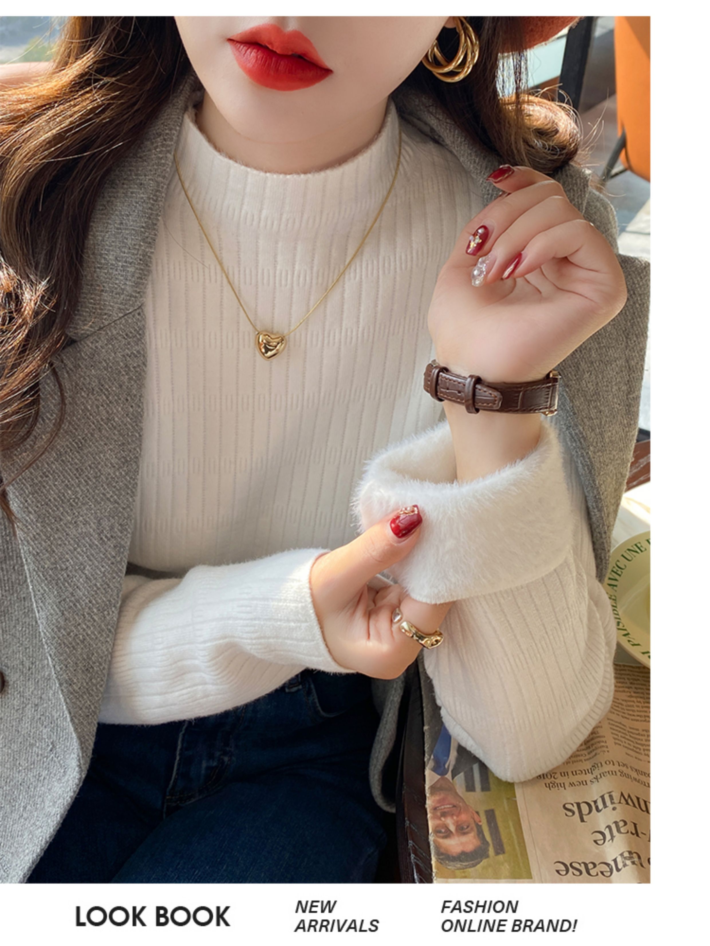 MY15805# 白色毛衣新款加绒加厚打底衫内搭保暖针织半高领上衣女裝貨源服裝批發