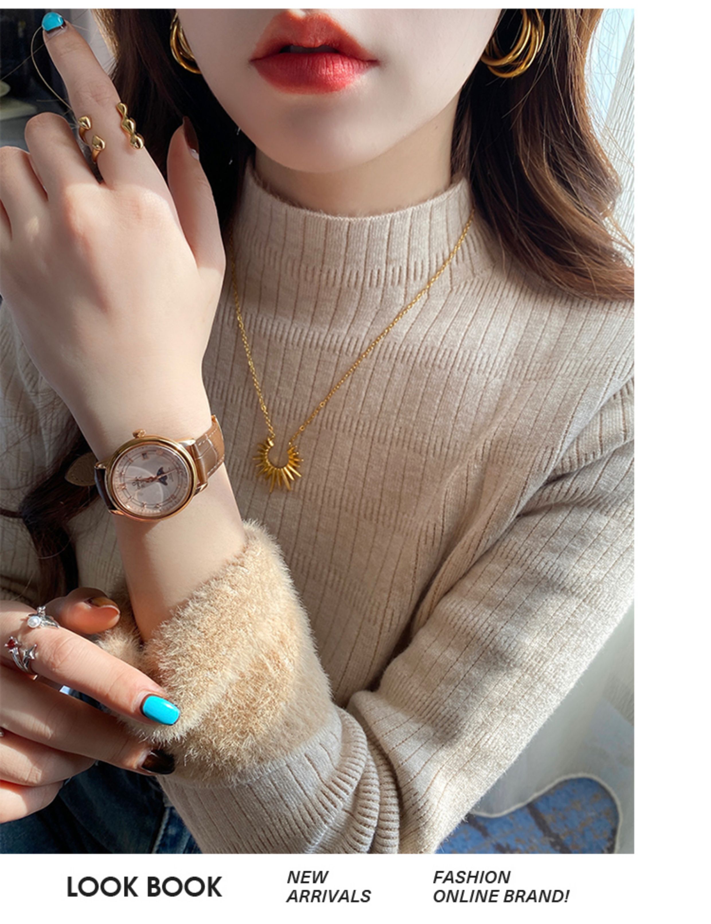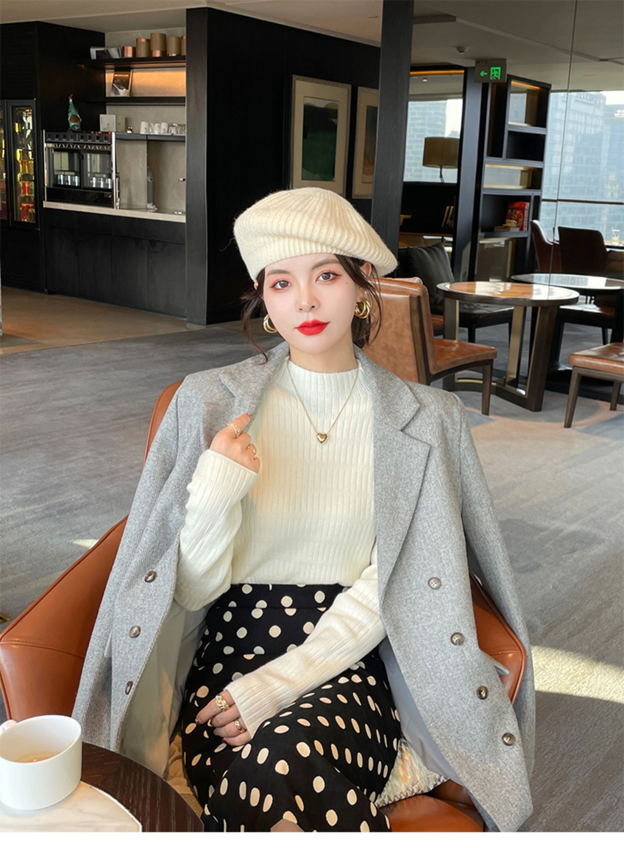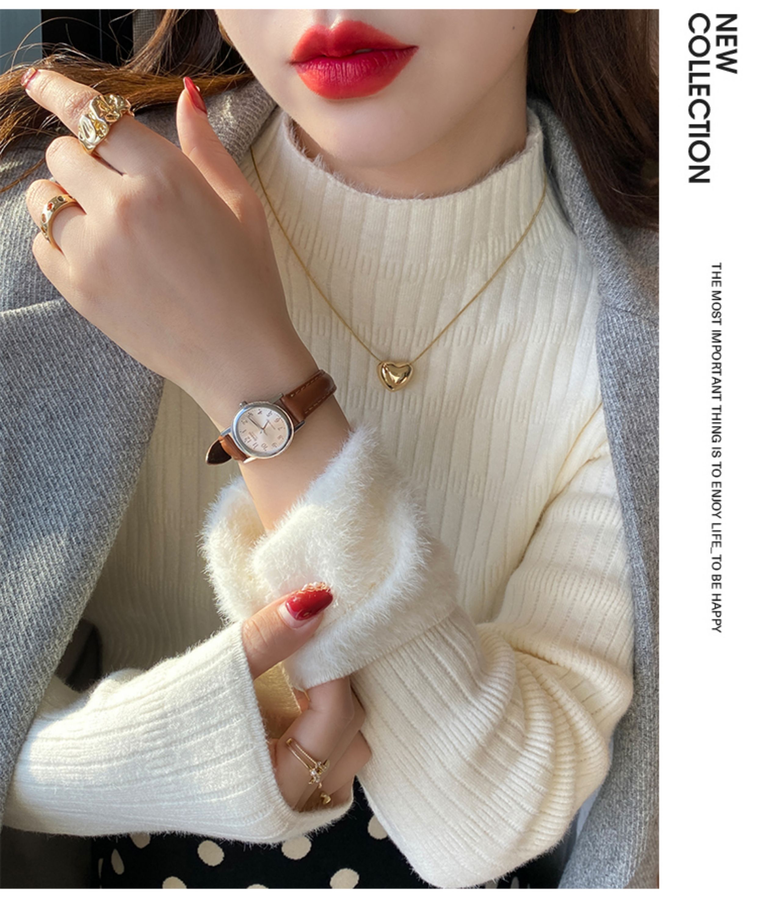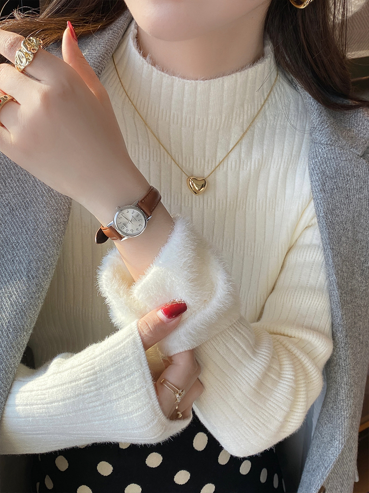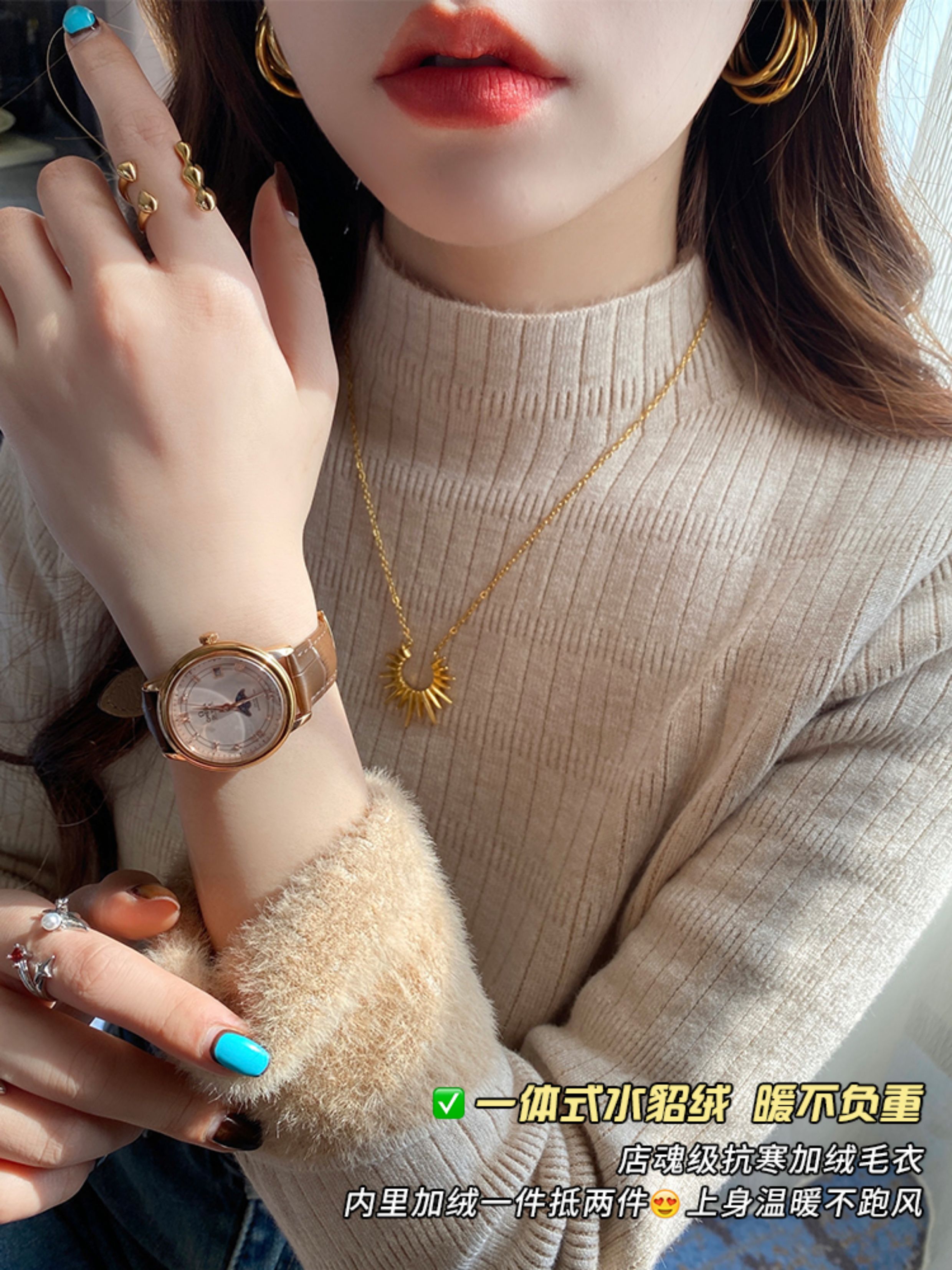MY15805# 白色毛衣新款加绒加厚打底衫内搭保暖针织半高领上衣女裝貨源服裝批發