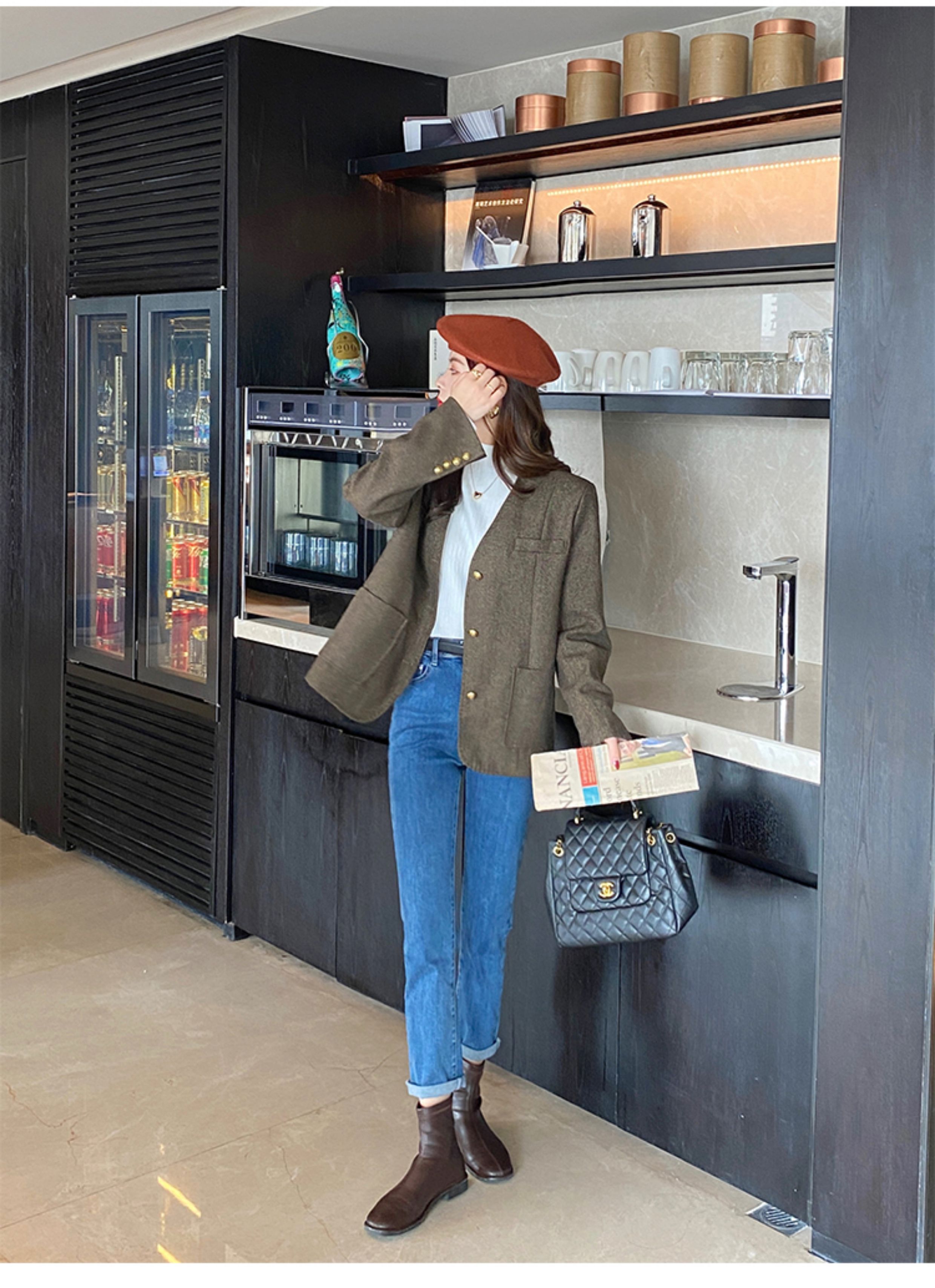 MY15789# 毛呢靴裤简约雪尼尔呢子高腰阔腿休闲短裤A字短裤女裝貨源服...
