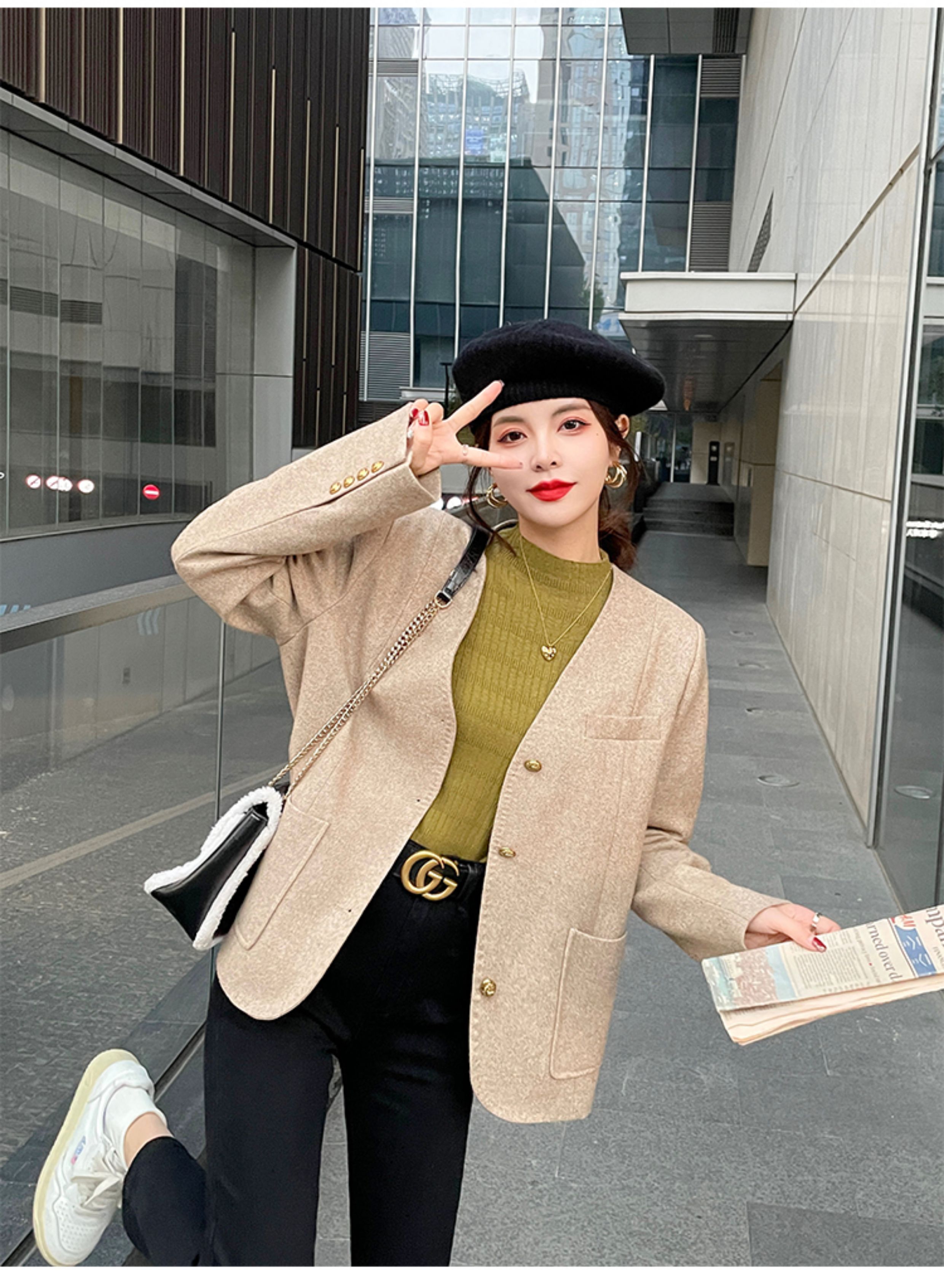 MY15813# 新款韩系设计感粉色v领针织毛衣修身内搭打底长袖上衣女裝貨...