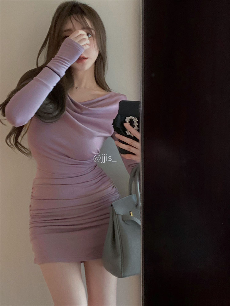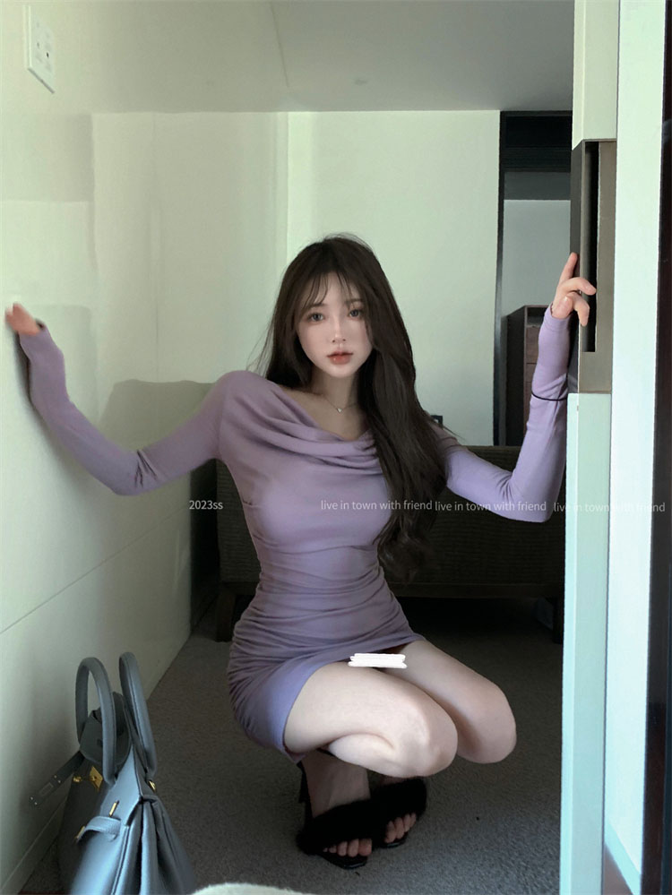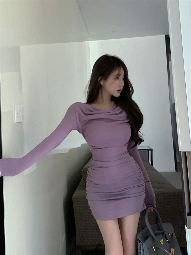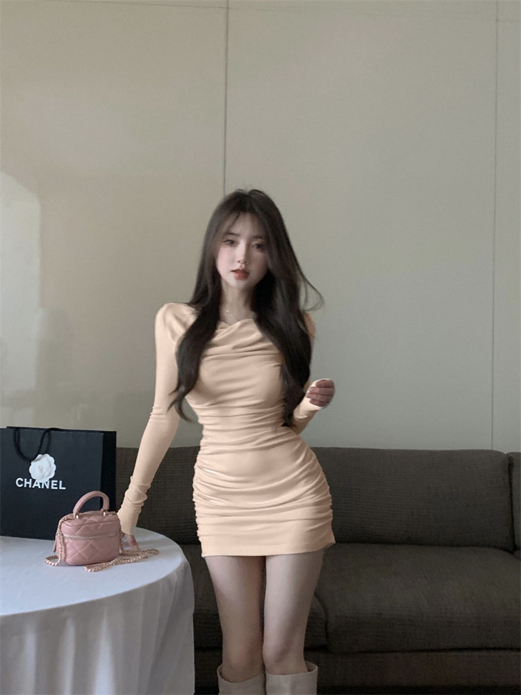 MY15807# 高弹条荡荡领褶皱裙子纯欲风性感修身收腰包臀短裙女裝貨源服裝批發
