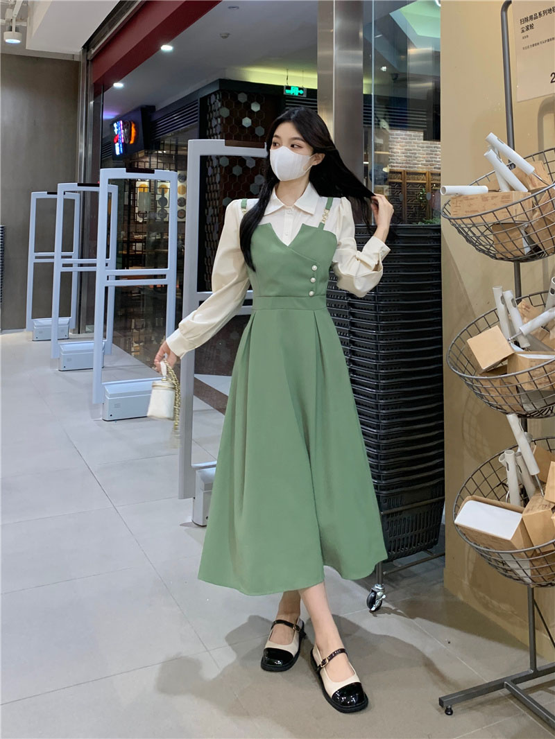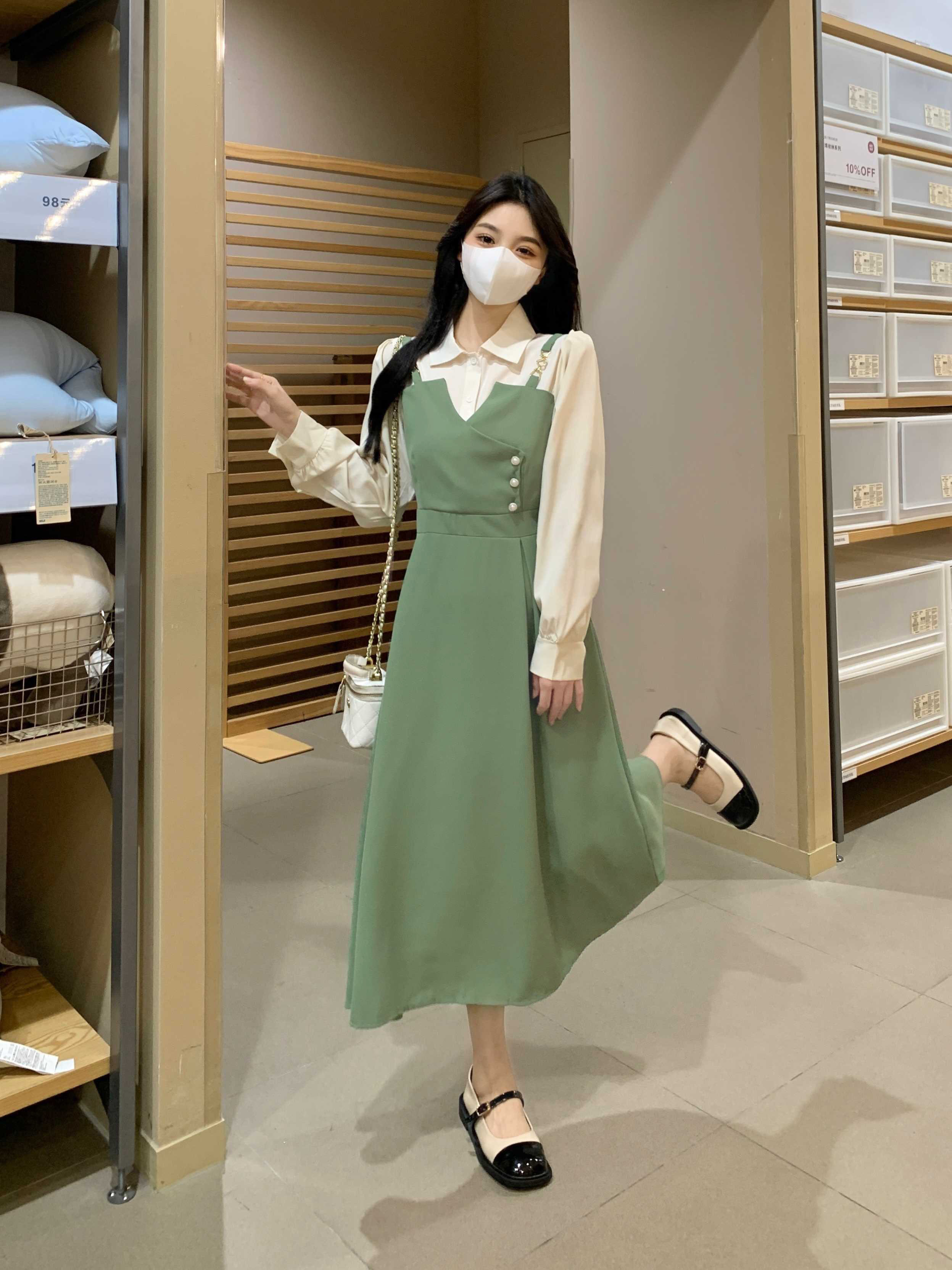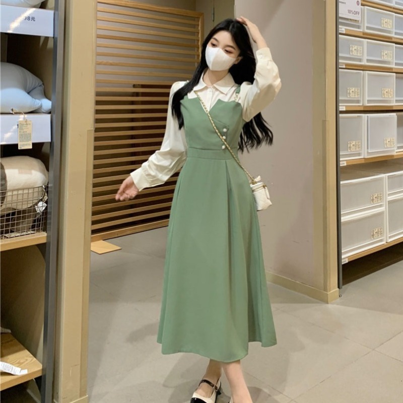 MY15814# 捻丝乱麻时尚端庄大气连衣裙新款遮肉显身材A字长裙女裝貨源服裝批發