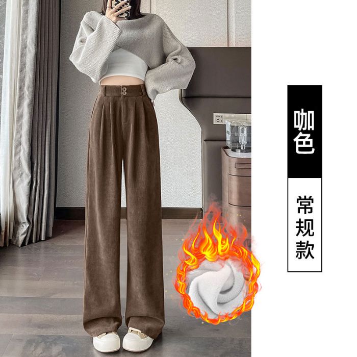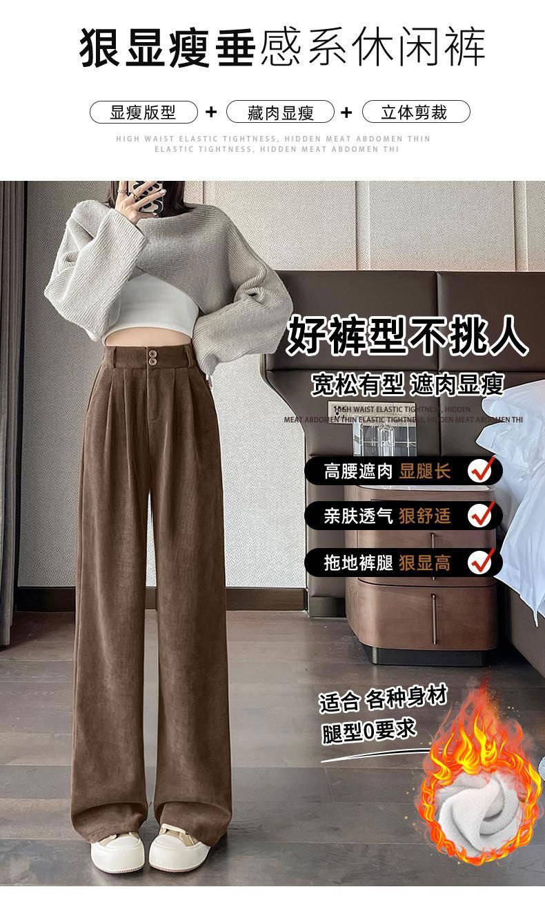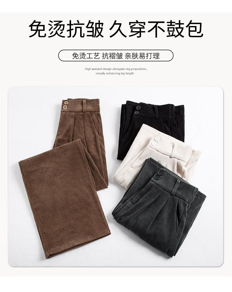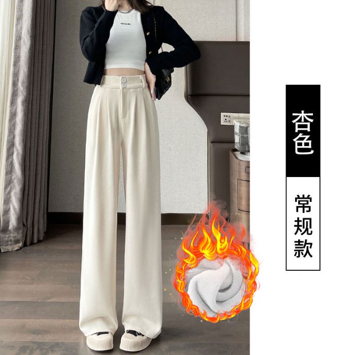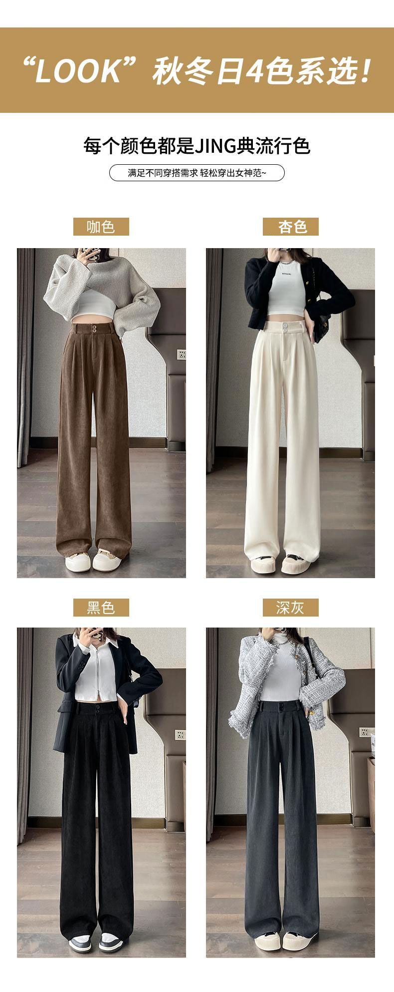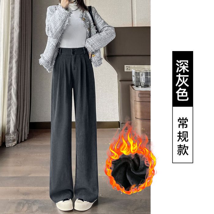 MY15823# 欧棉绒阔腿裤女新款高腰直筒显瘦西装休闲加厚加绒裤子女裝貨源服裝批發