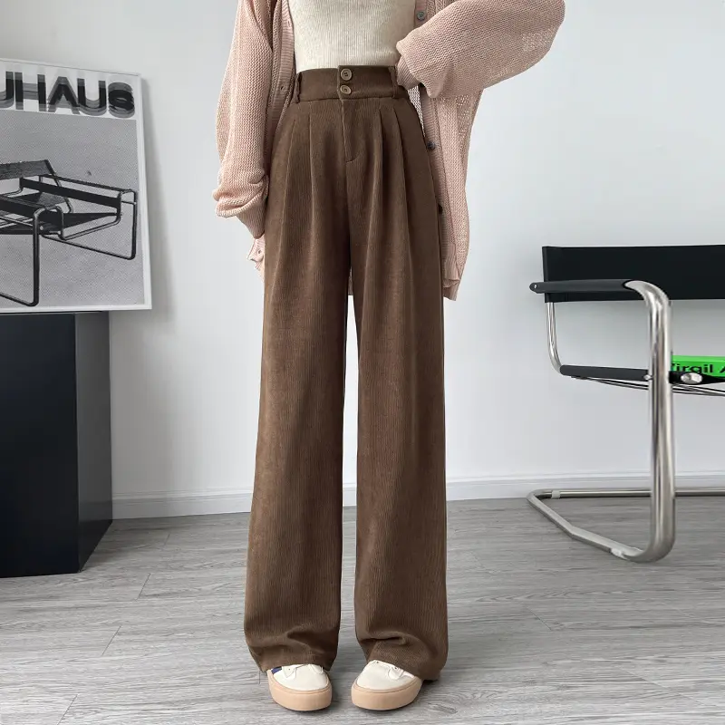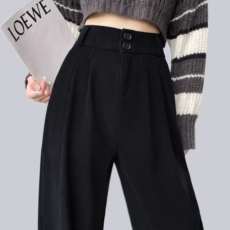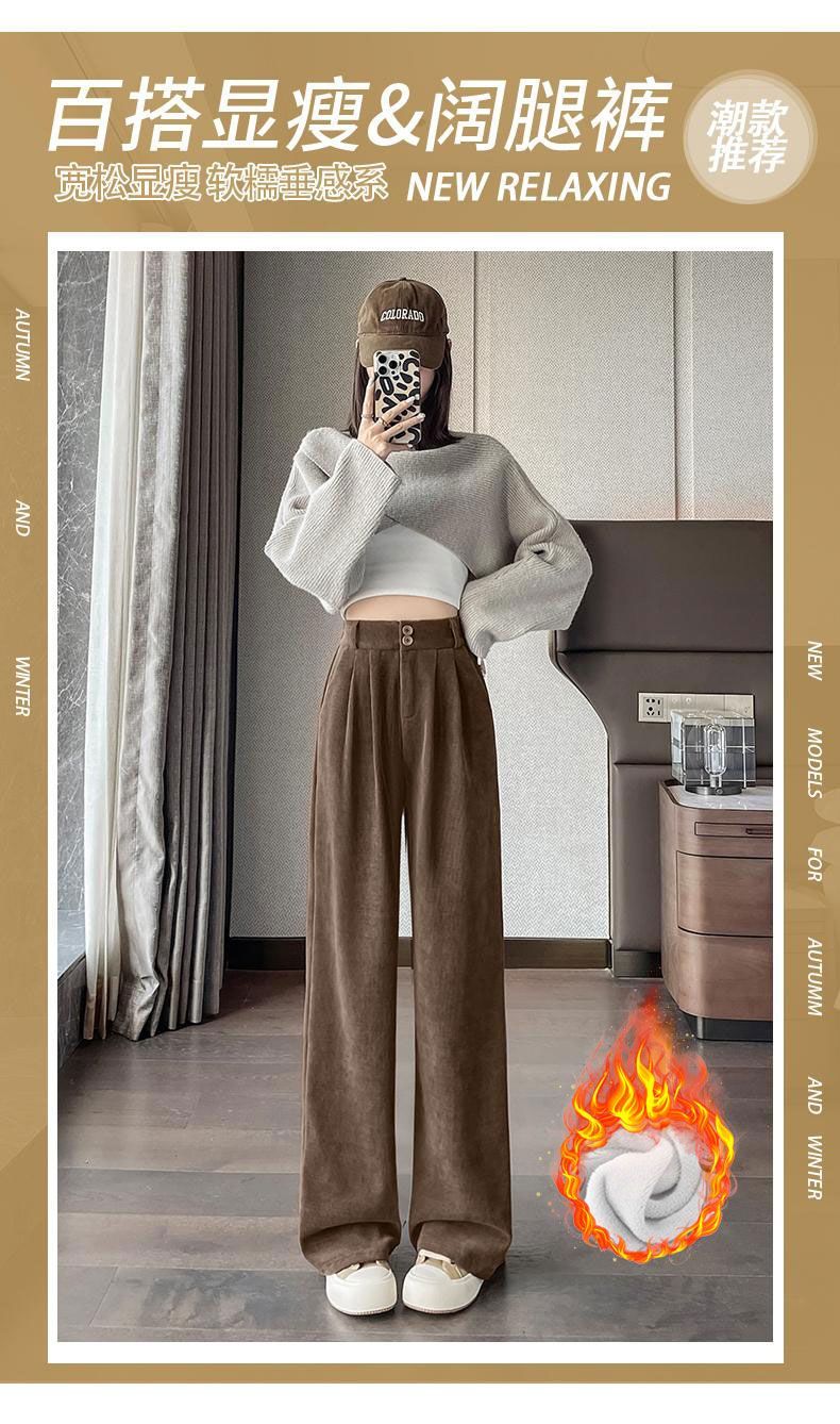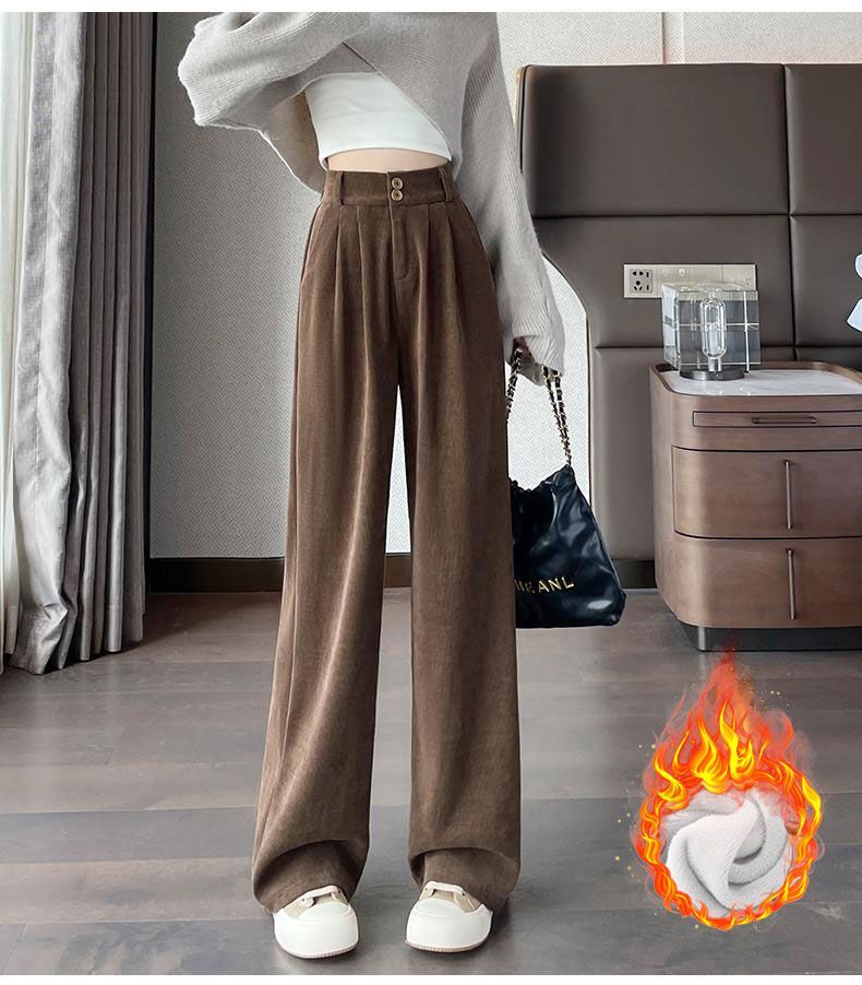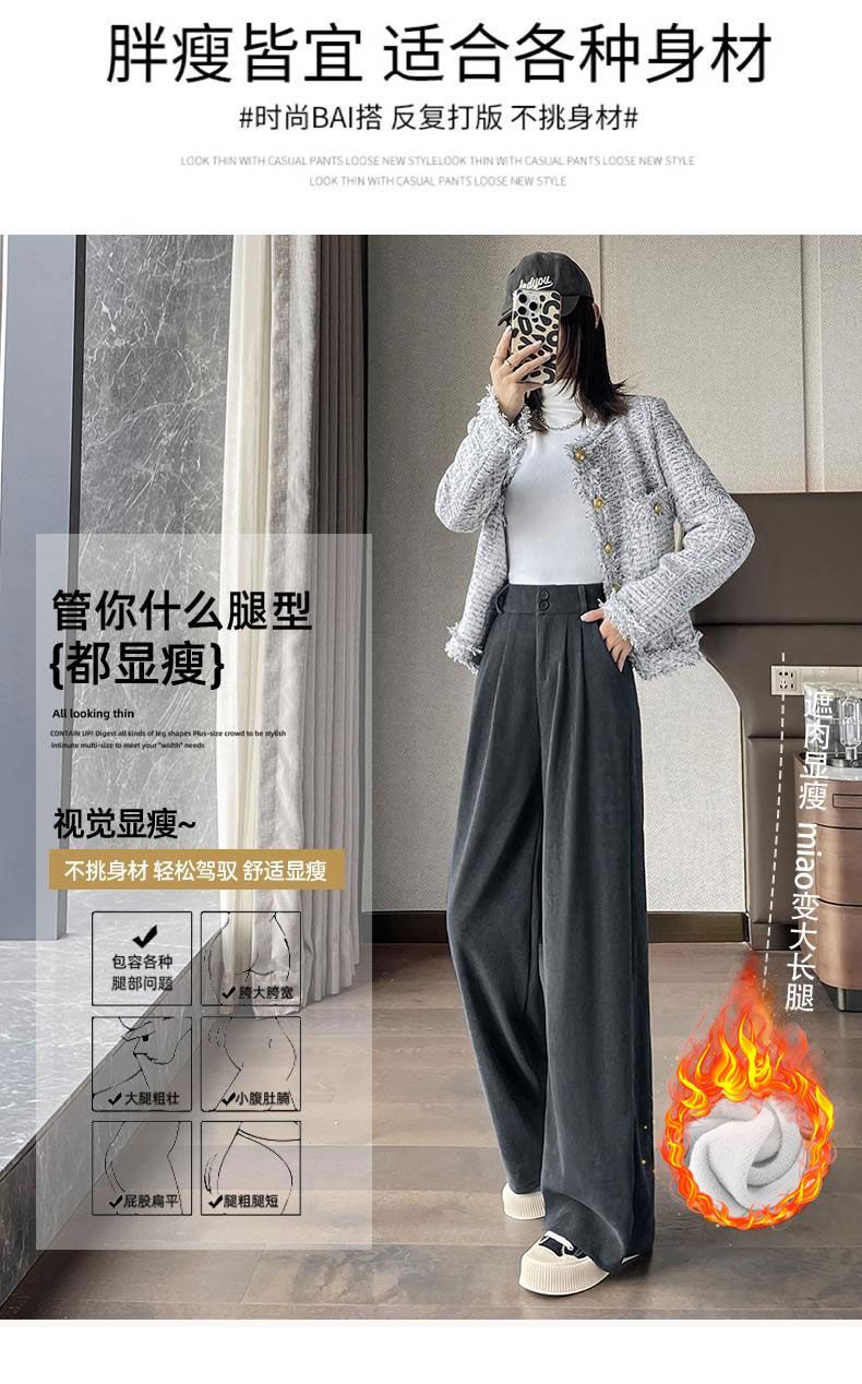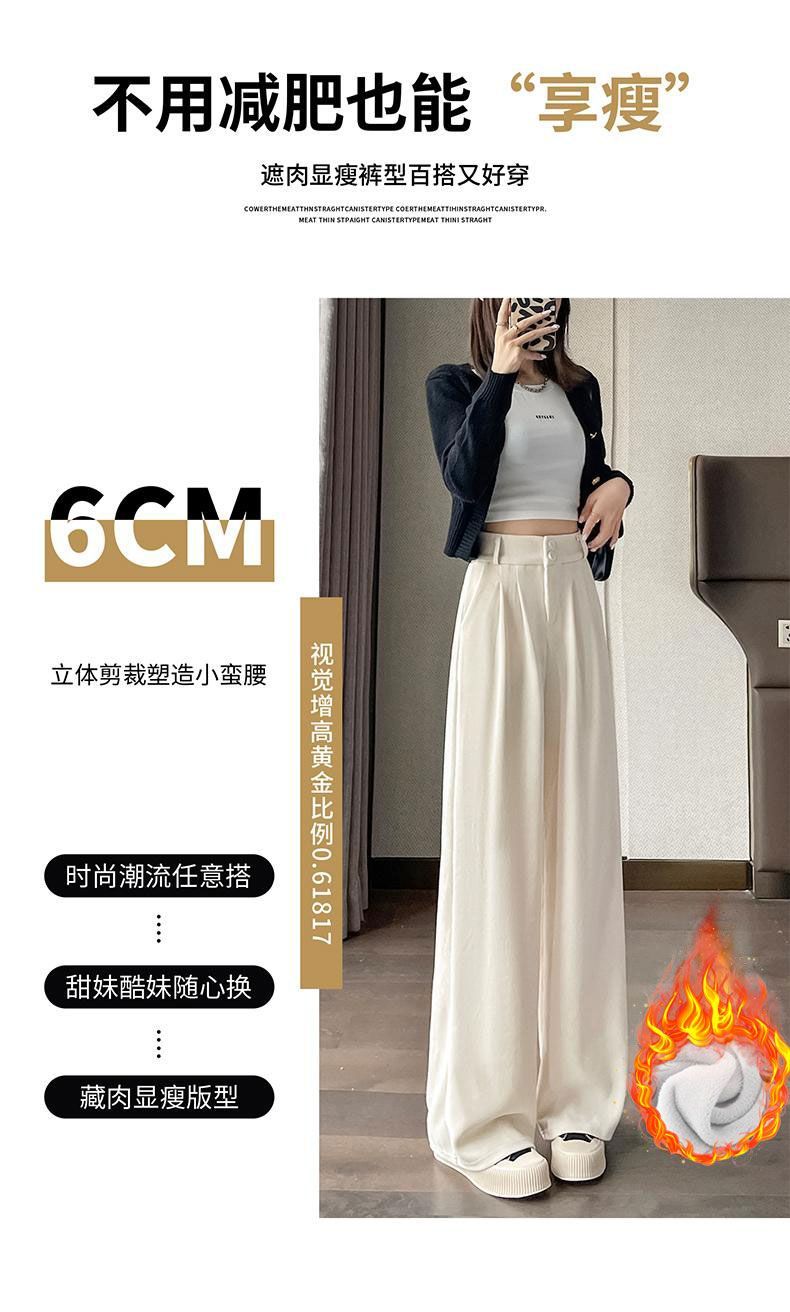 MY15823# 欧棉绒阔腿裤女新款高腰直筒显瘦西装休闲加厚加绒裤子女裝貨源服裝批發