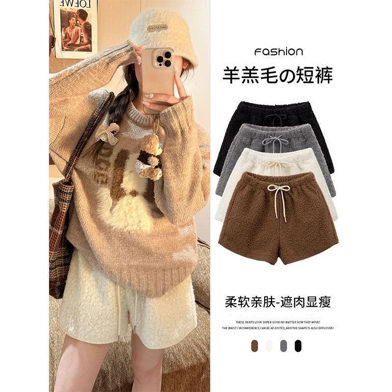 MY15824#白色羊羔绒短裤女外穿新款高腰显瘦加厚a字休闲靴裤子女裝貨源服裝批發