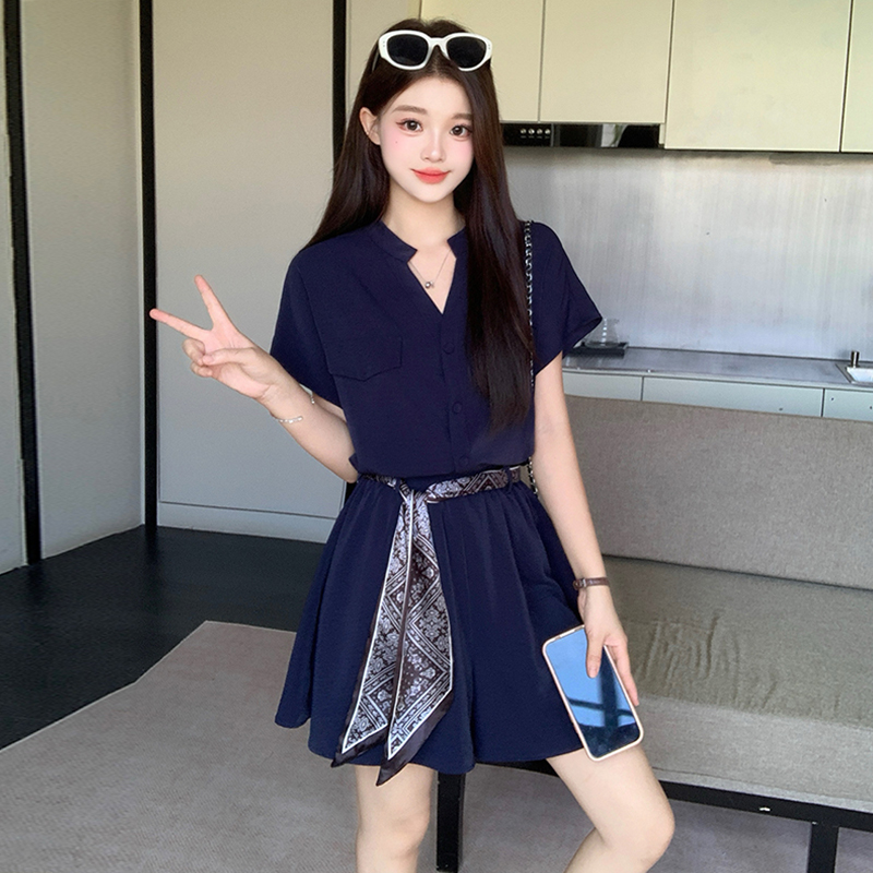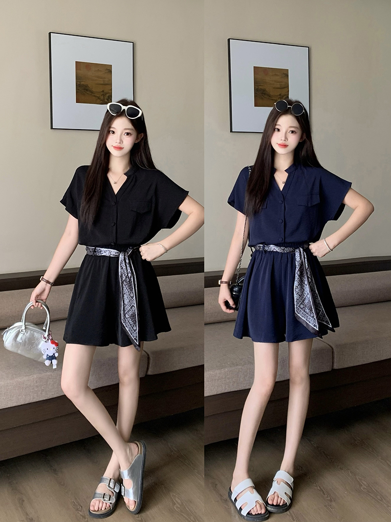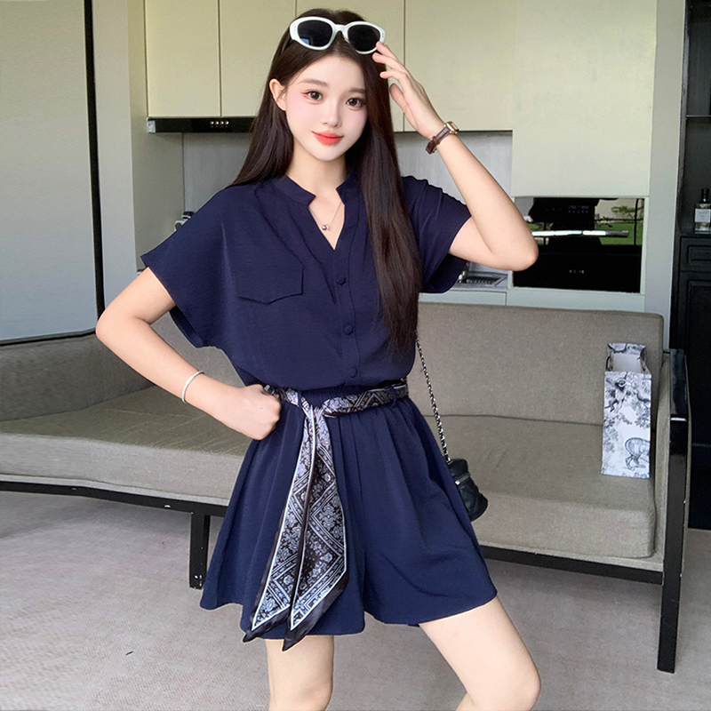 MY15826#时尚套装女士2025夏季新款高级衬衫短裤时尚别致时髦两件套