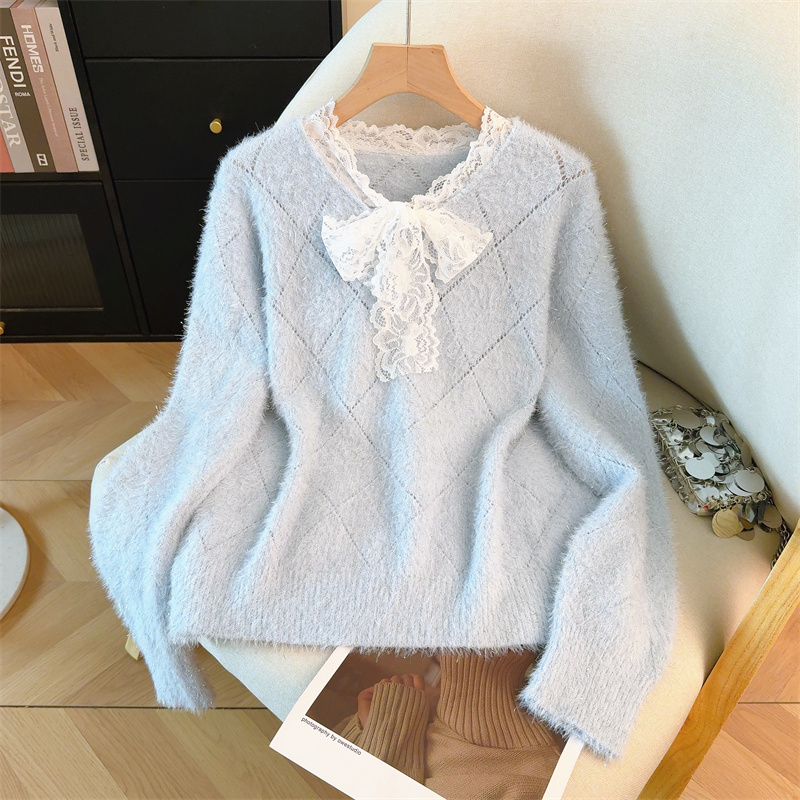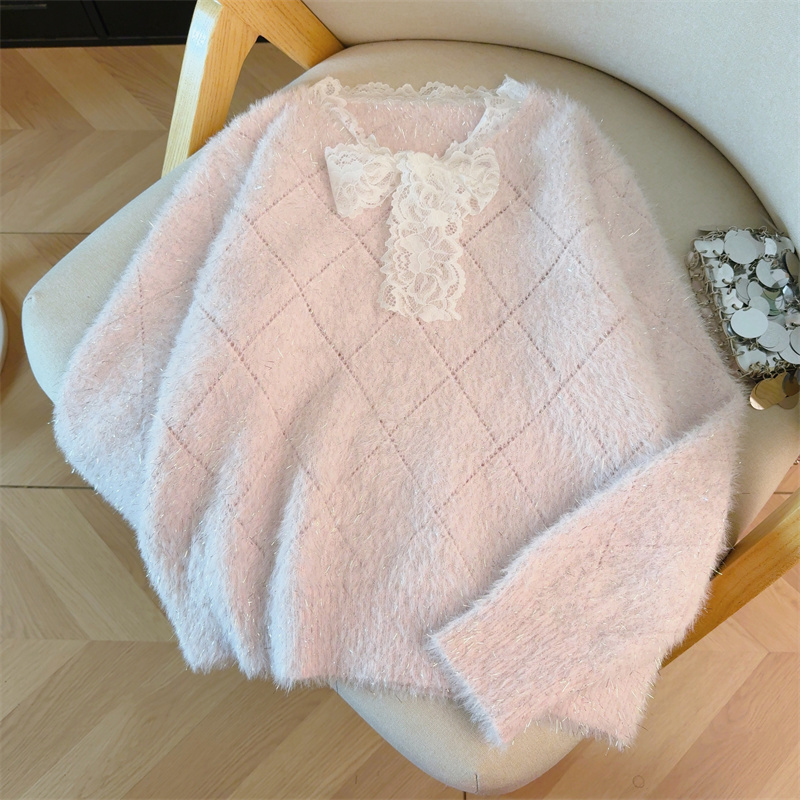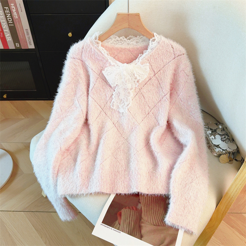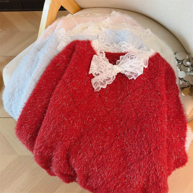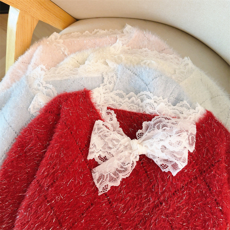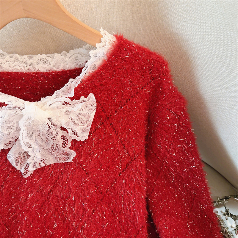 MY15856# 大码高级感红色本命年V领套头毛衣胖mm宽松慵懒针织衫上衣女裝貨源服裝批發