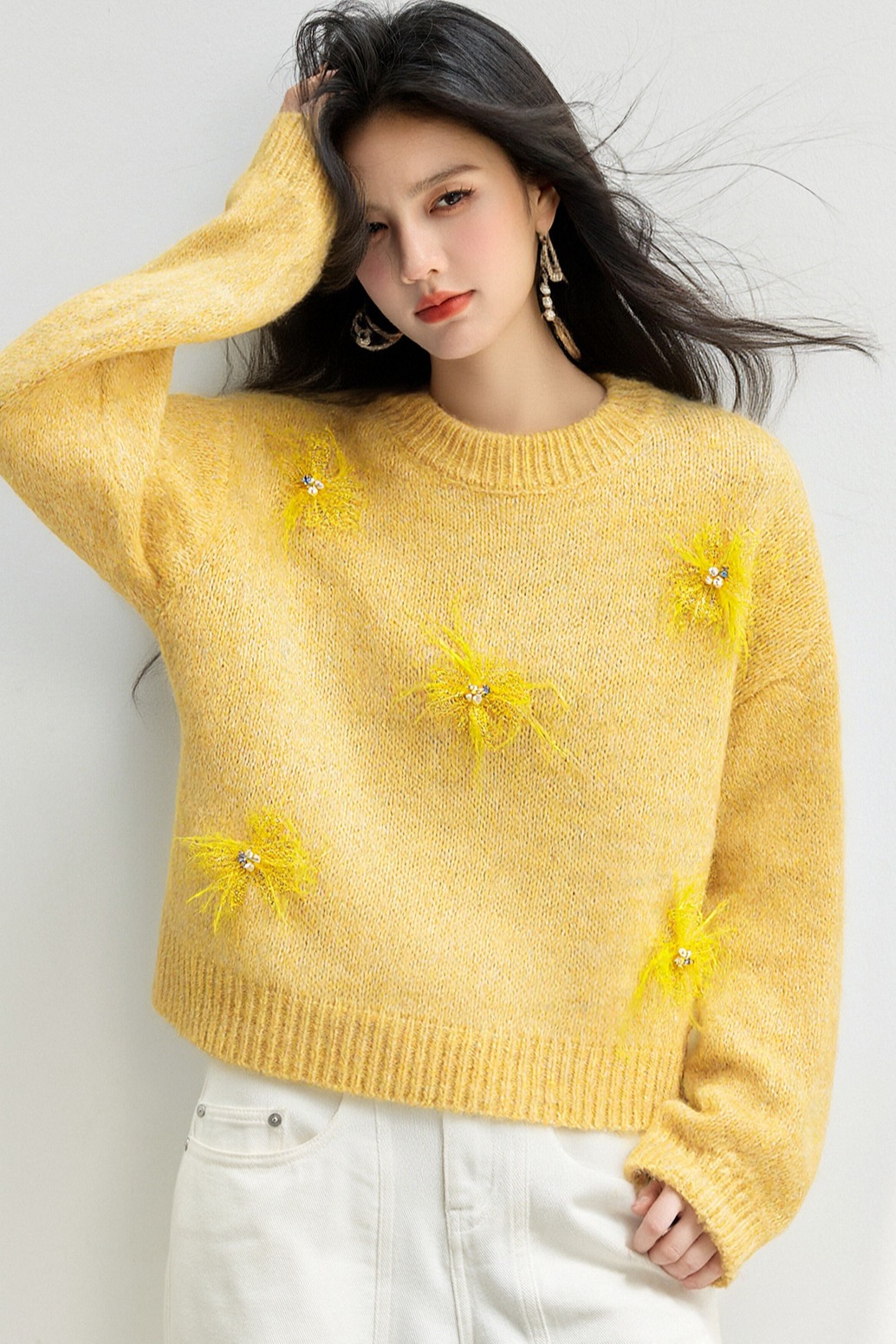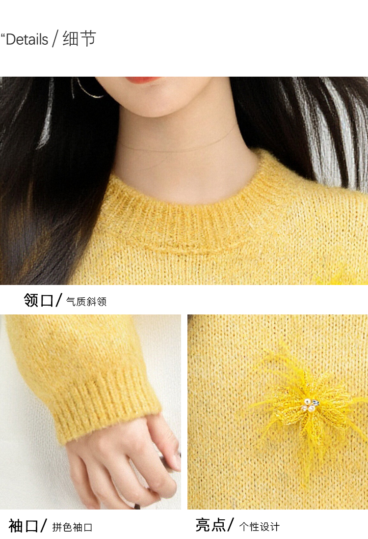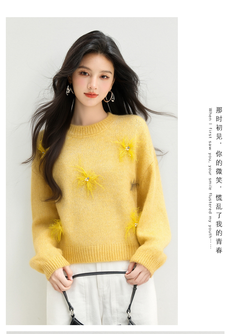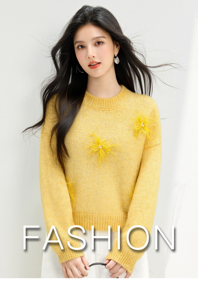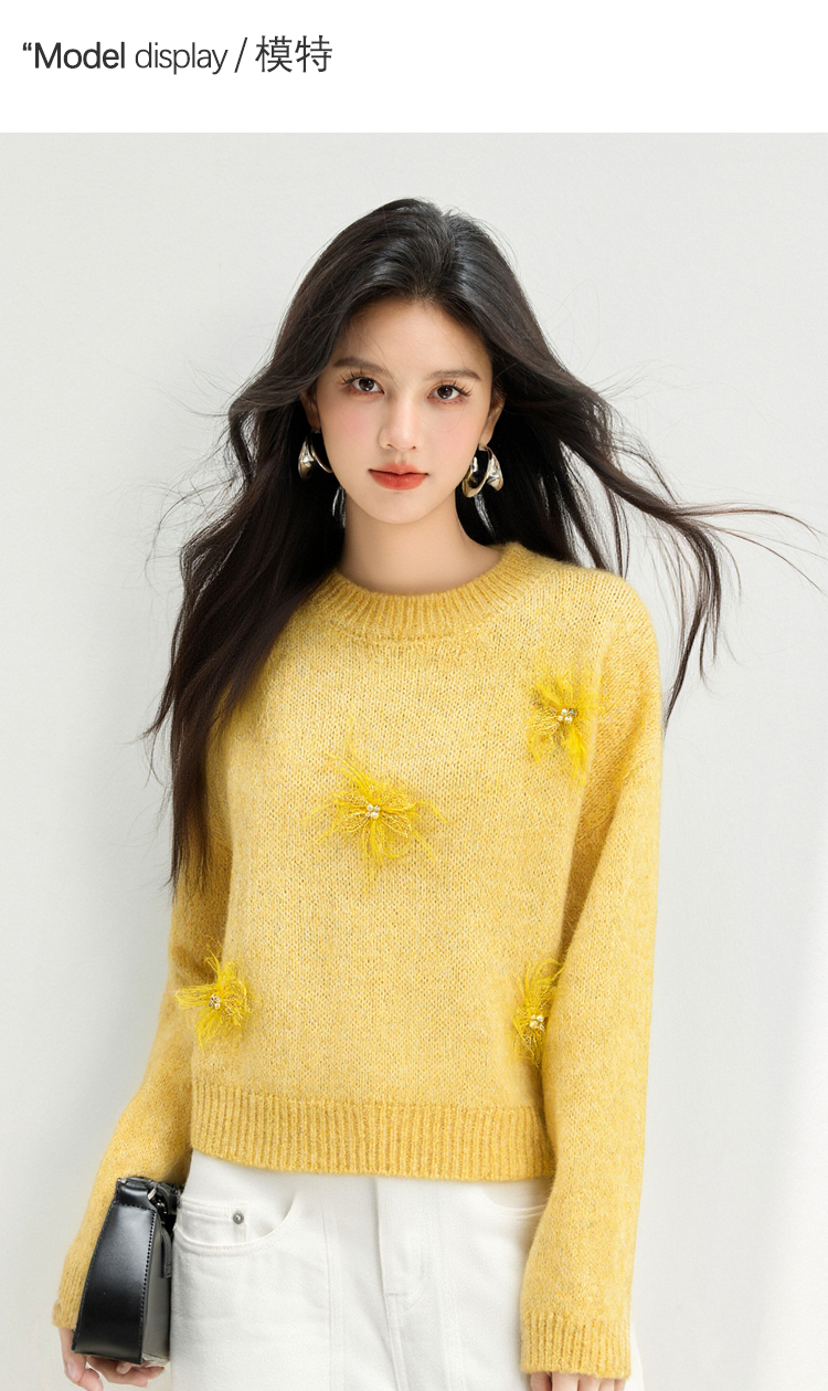 MY15876# 宽松圆领钉珠设计针织衫百搭休闲气质时髦上衣女裝貨源服裝批發
