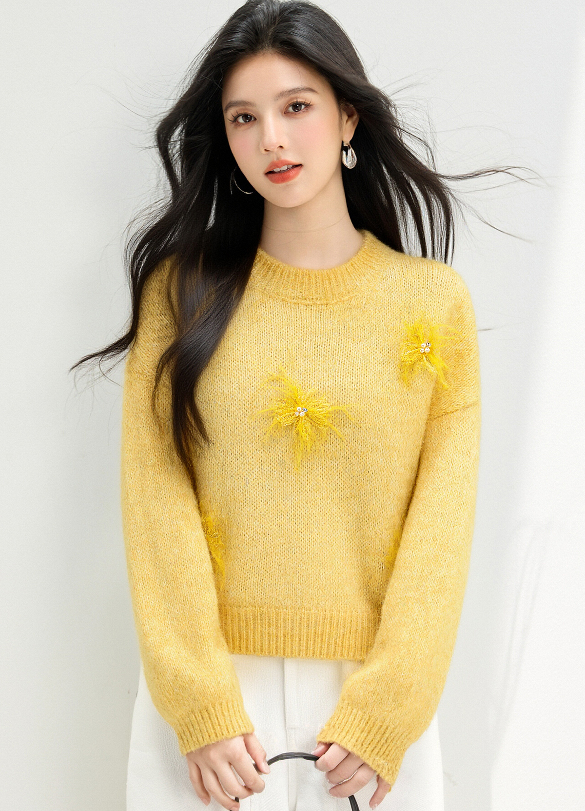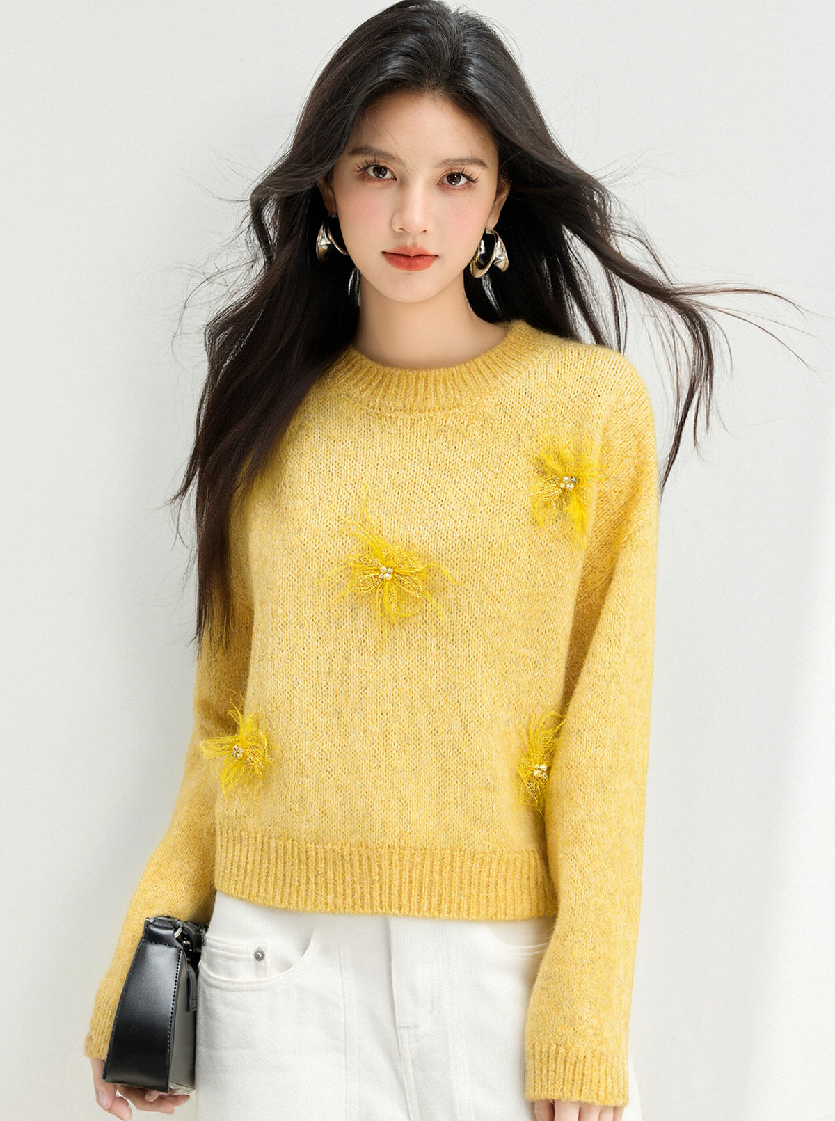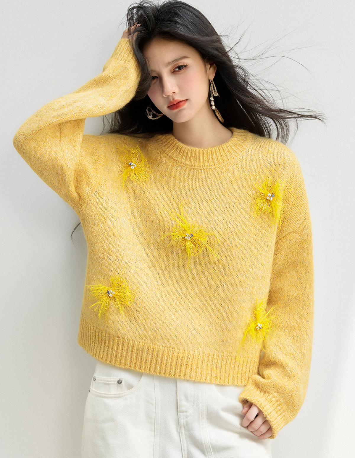 MY15876# 宽松圆领钉珠设计针织衫百搭休闲气质时髦上衣女裝貨源服裝批發