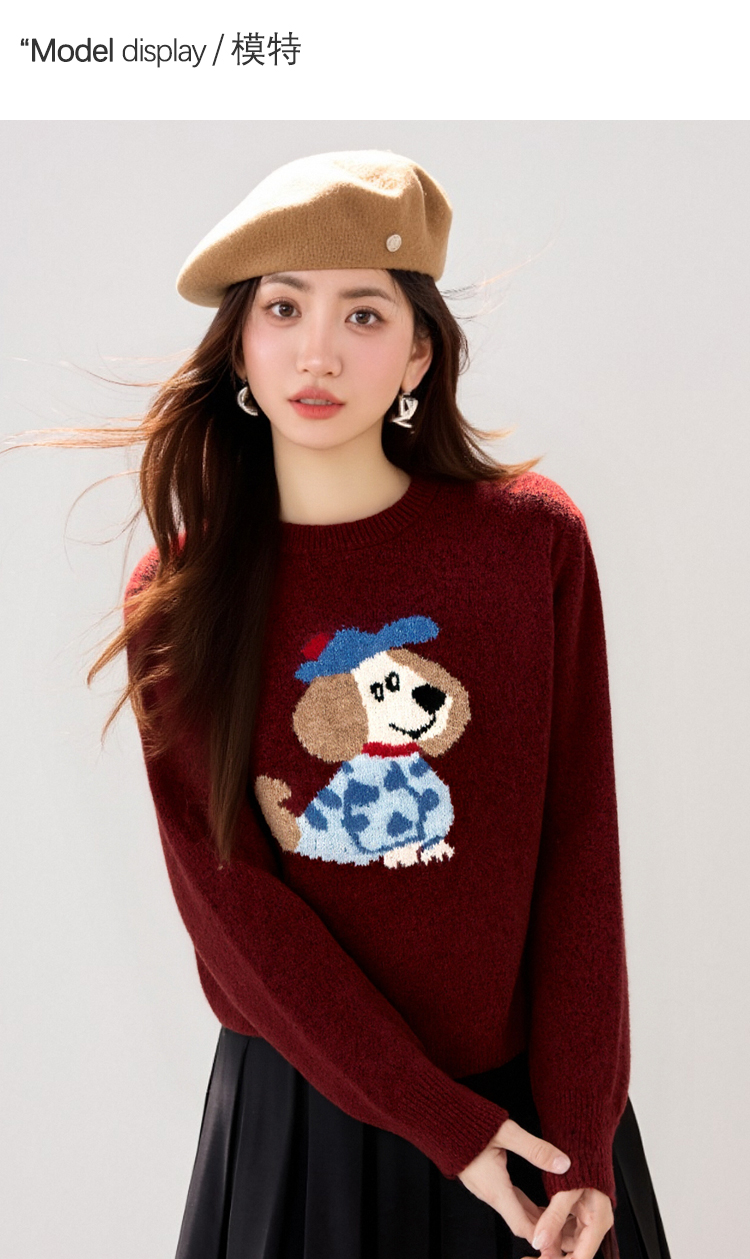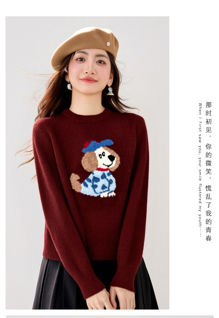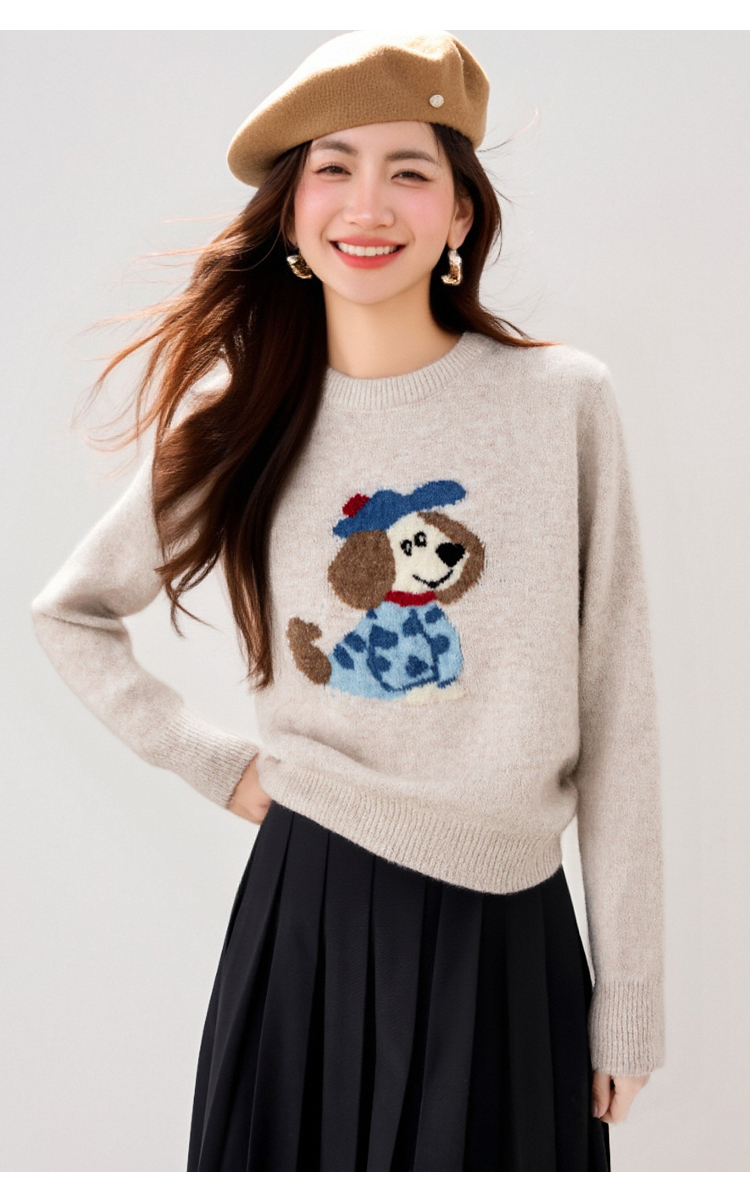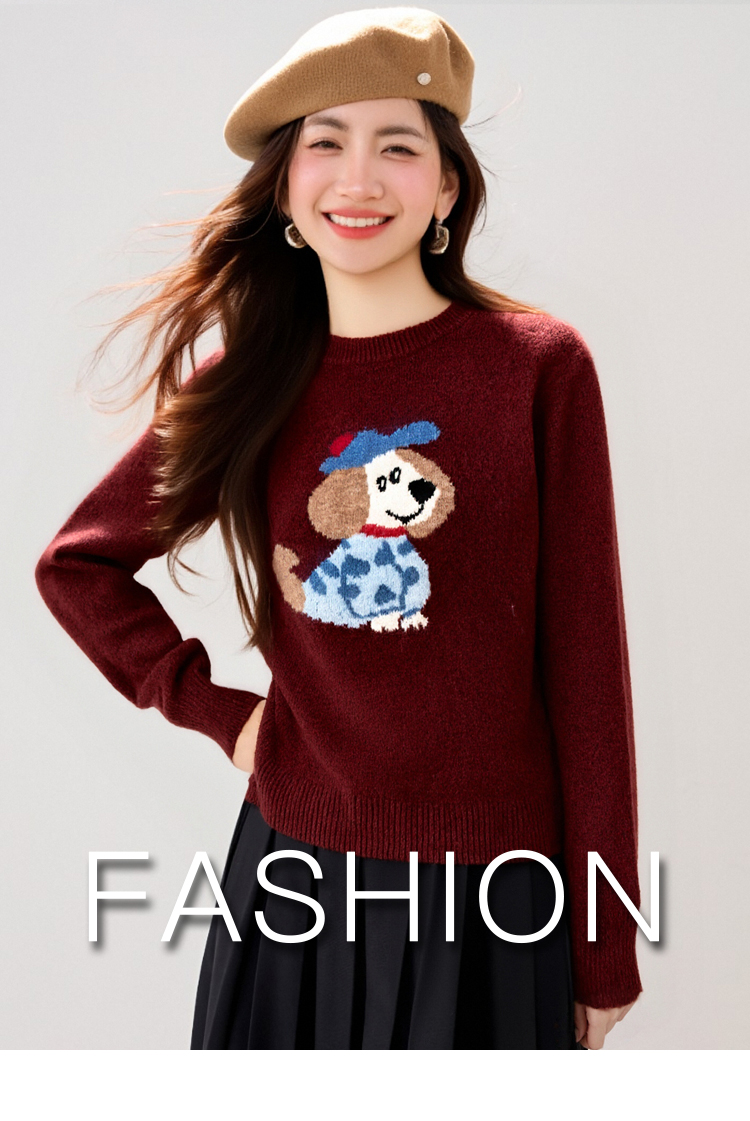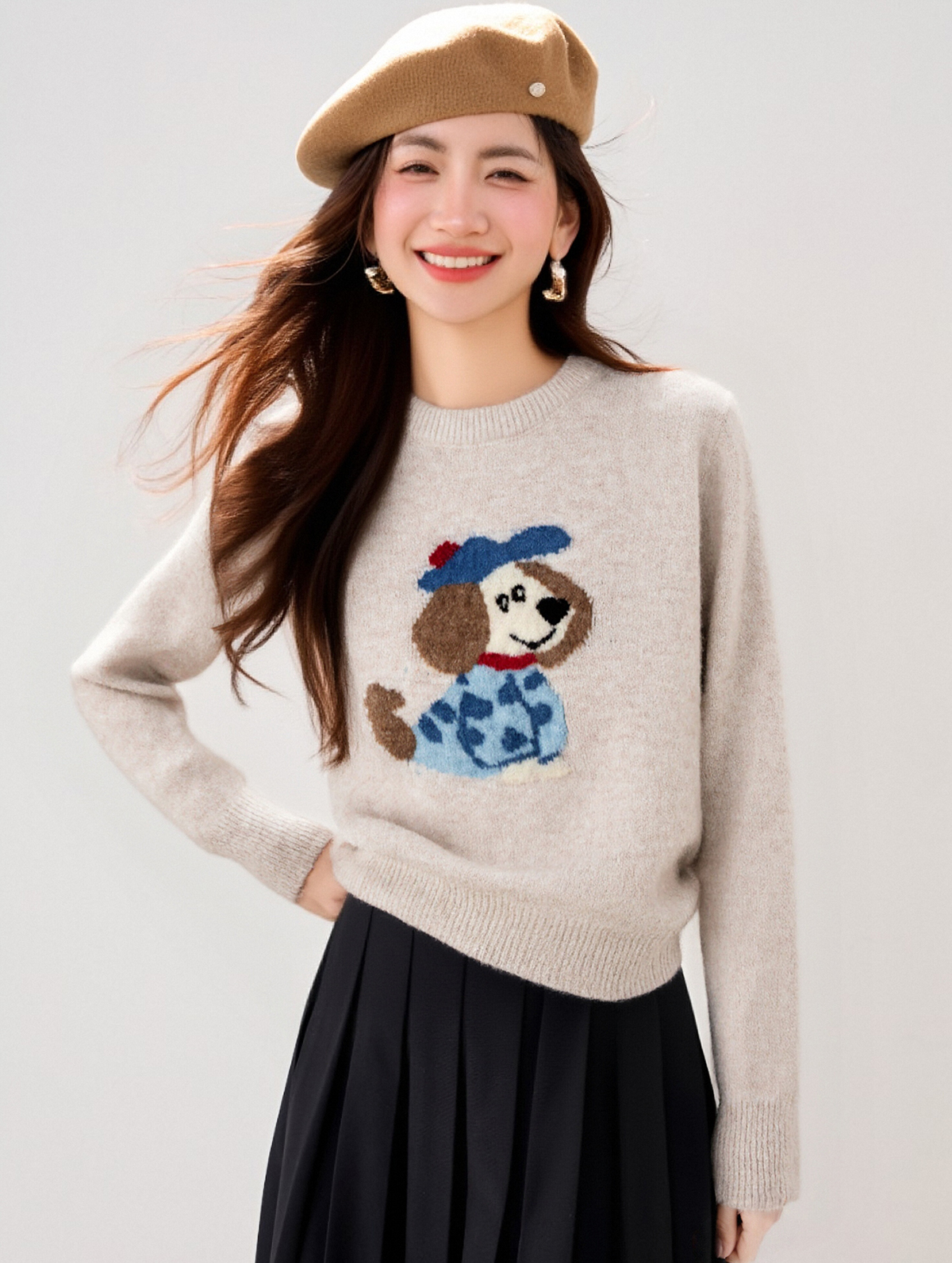 MY15879# 设计感卡通小狗提花毛衣新款冬宽松慵懒针织上衣女裝貨源服裝批發