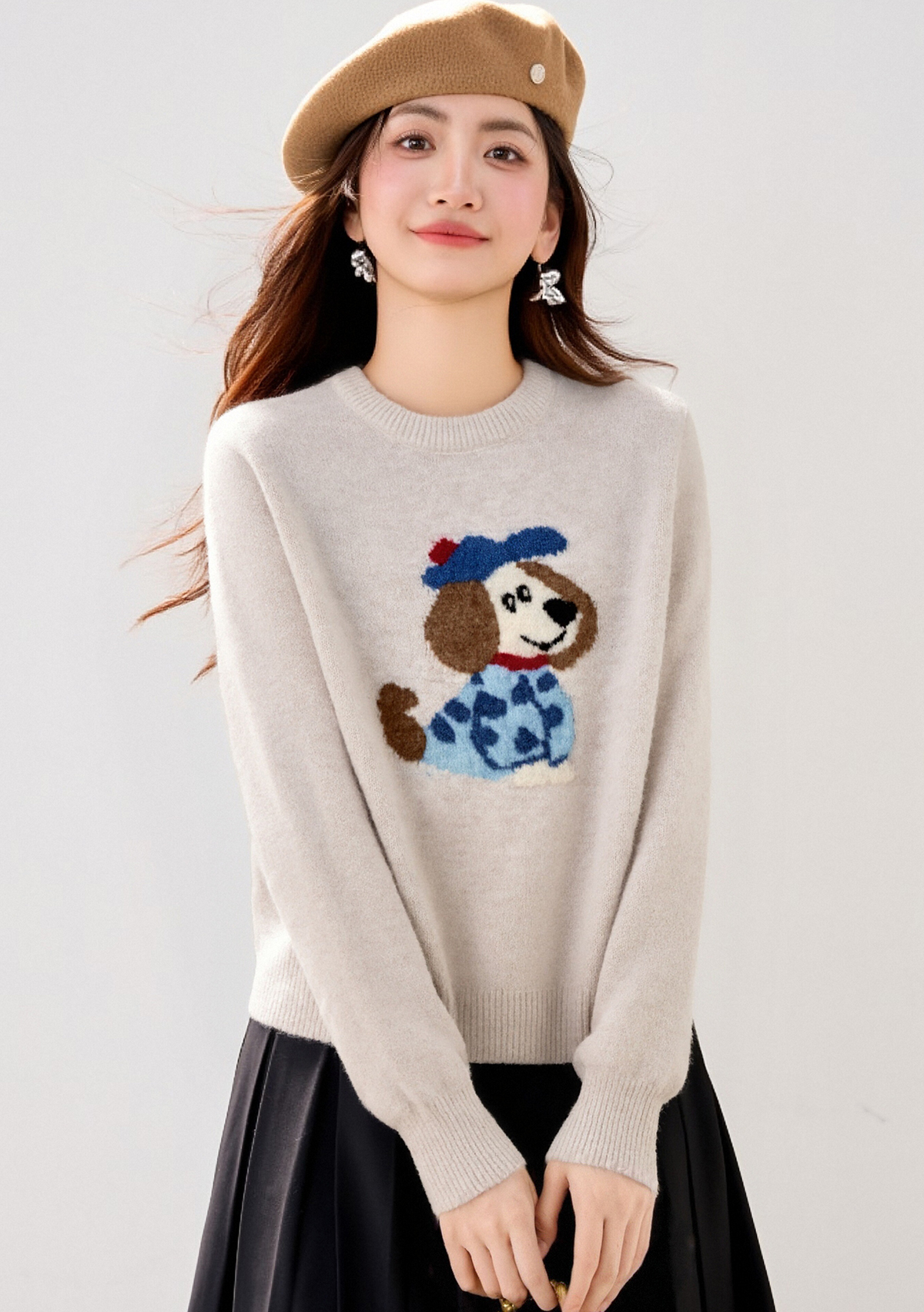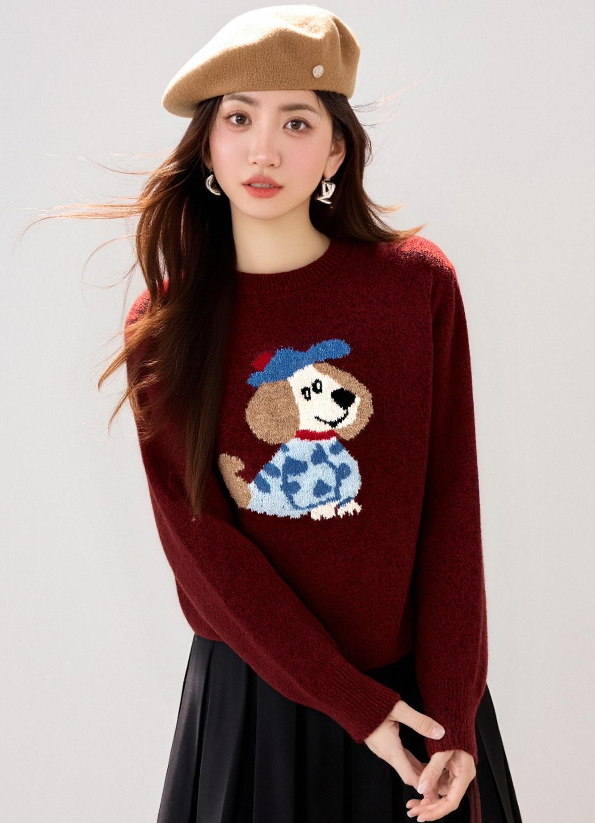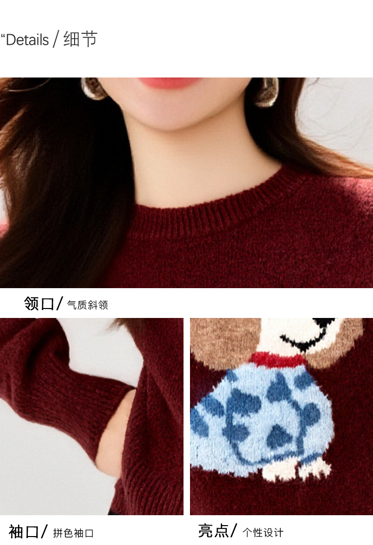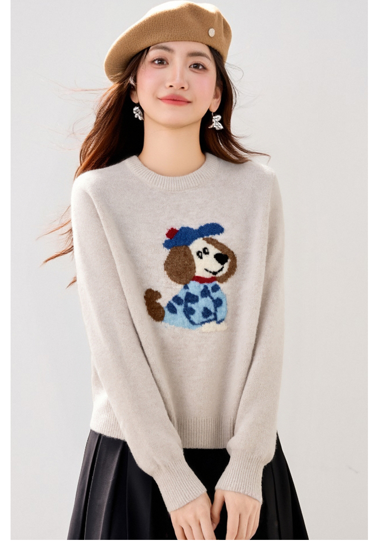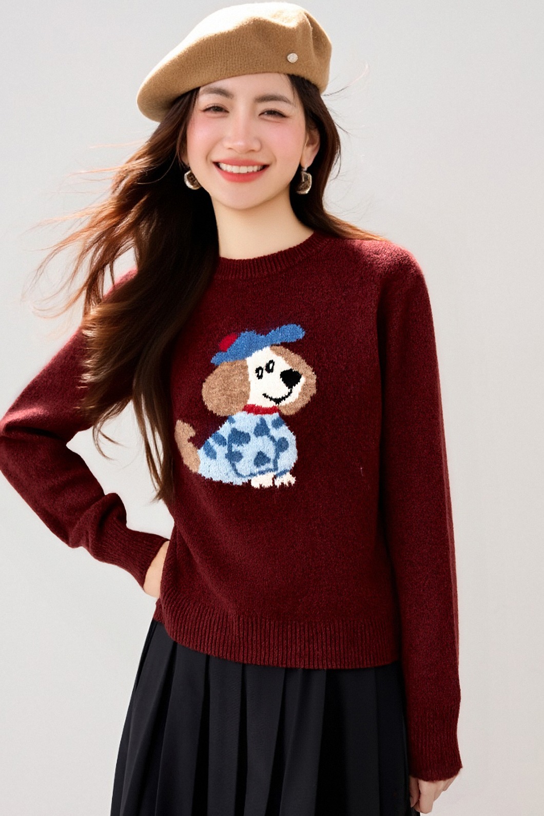 MY15879# 设计感卡通小狗提花毛衣新款冬宽松慵懒针织上衣女裝貨源服裝批發