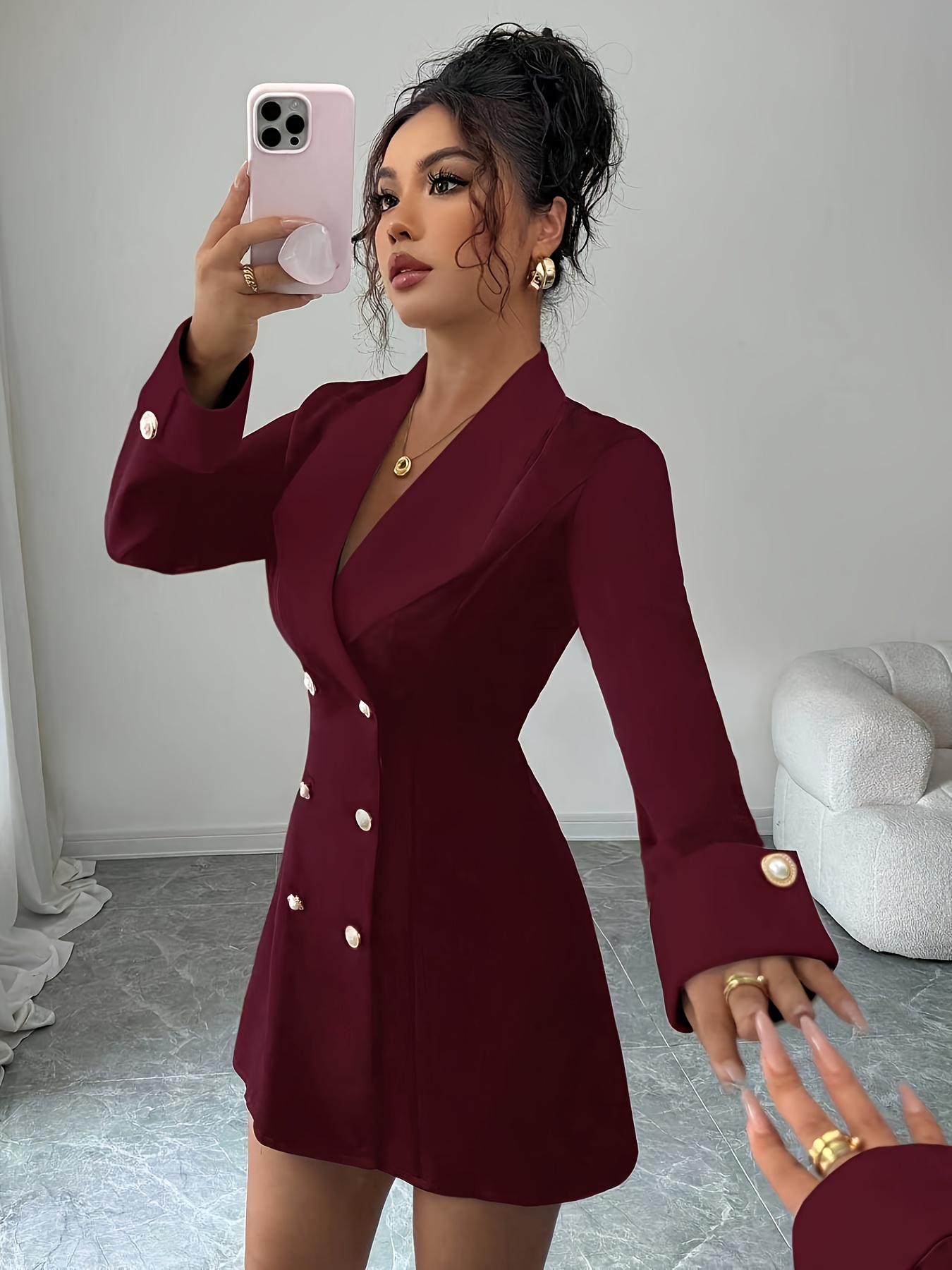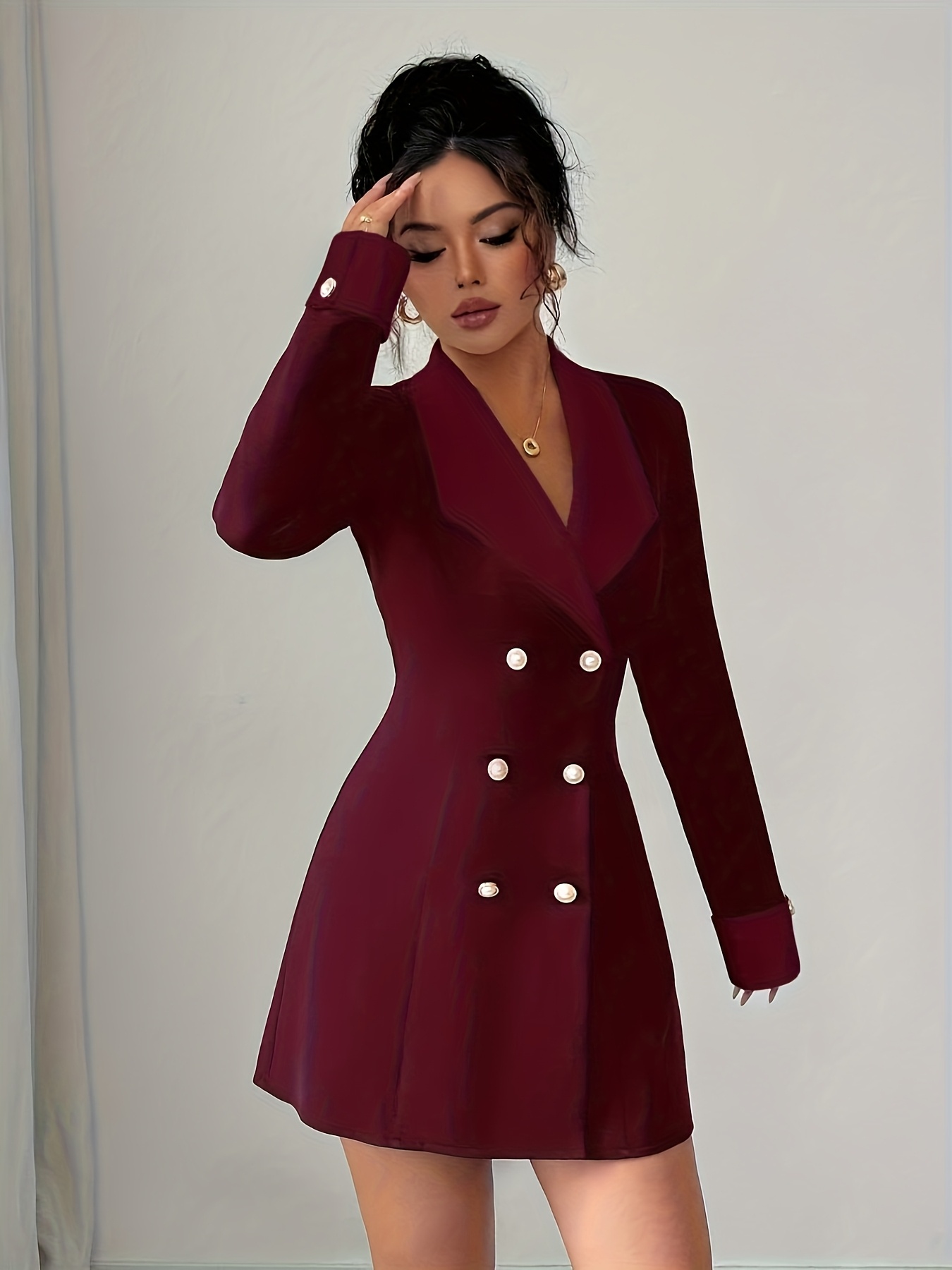 MY15889# 女士法式优雅前开双排扣短款连衣裙适合晚会/姐妹聚会女裝貨源服裝批發