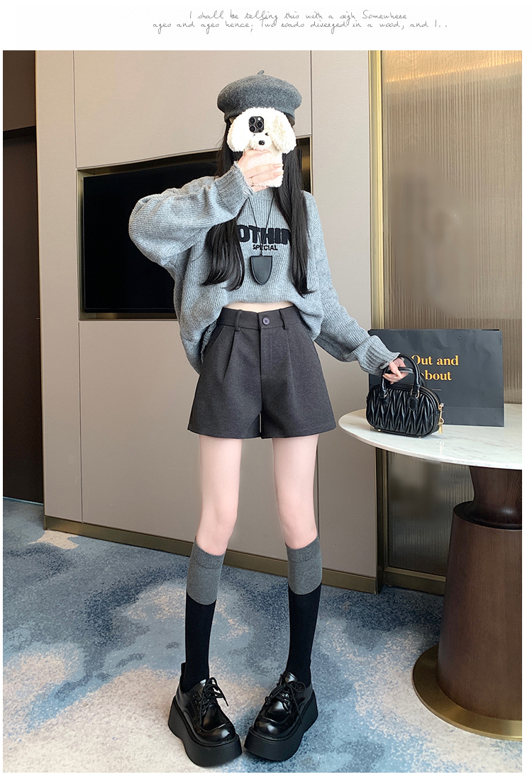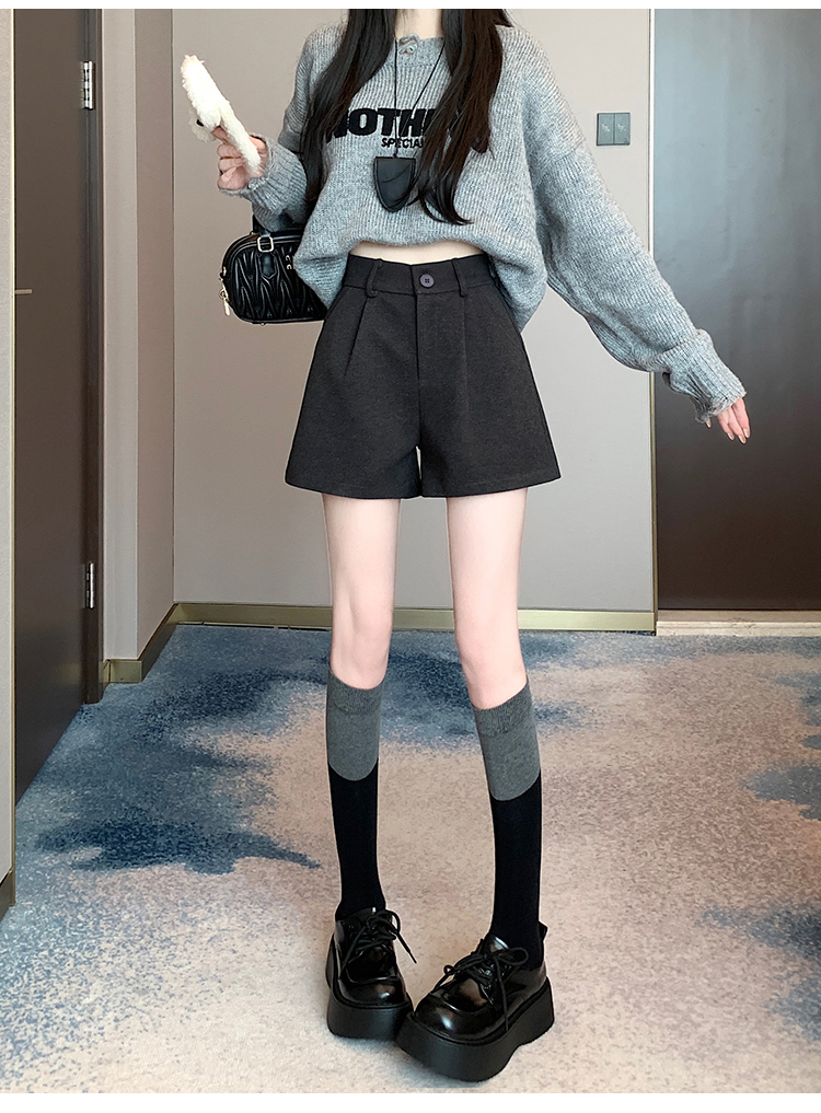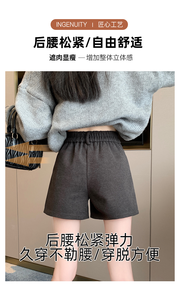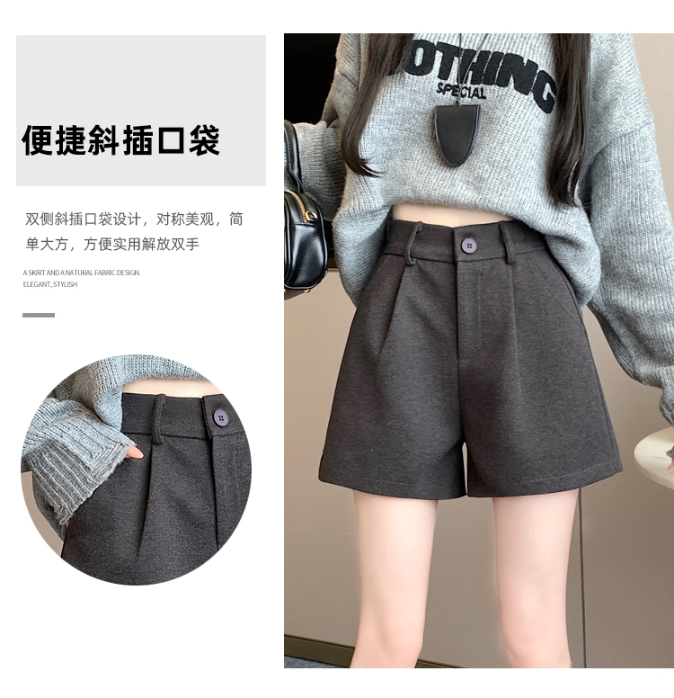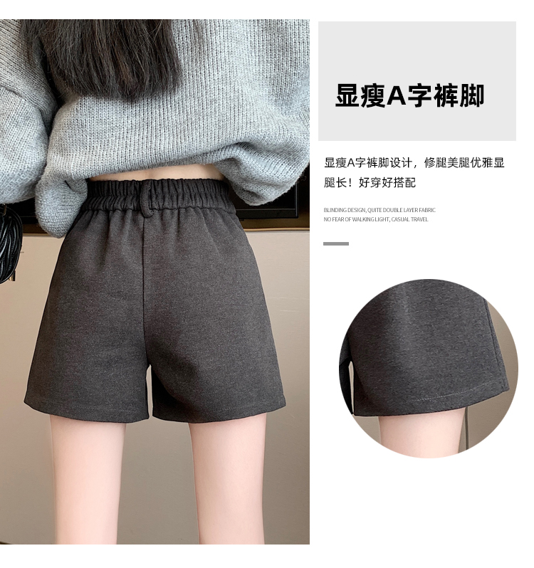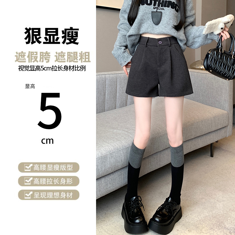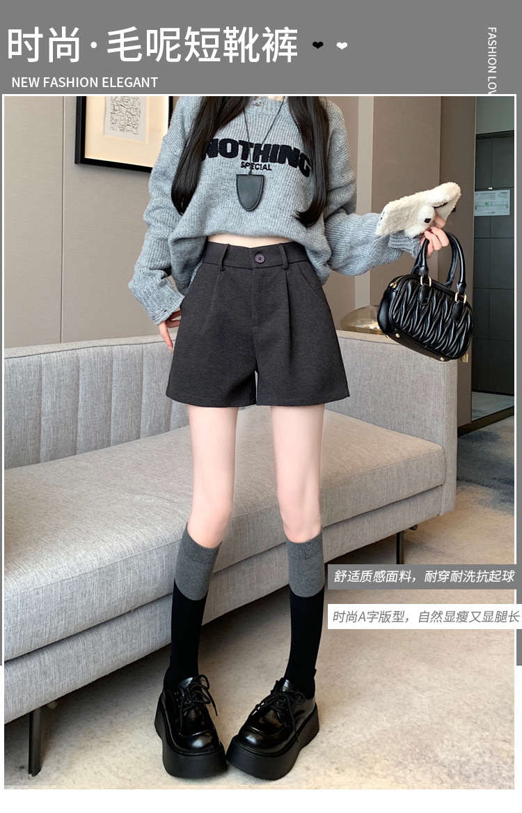 MY15977# 灰色呢料短裤新款阔腿高腰显瘦百搭A字外穿毛呢靴裤女裝貨源服裝批發