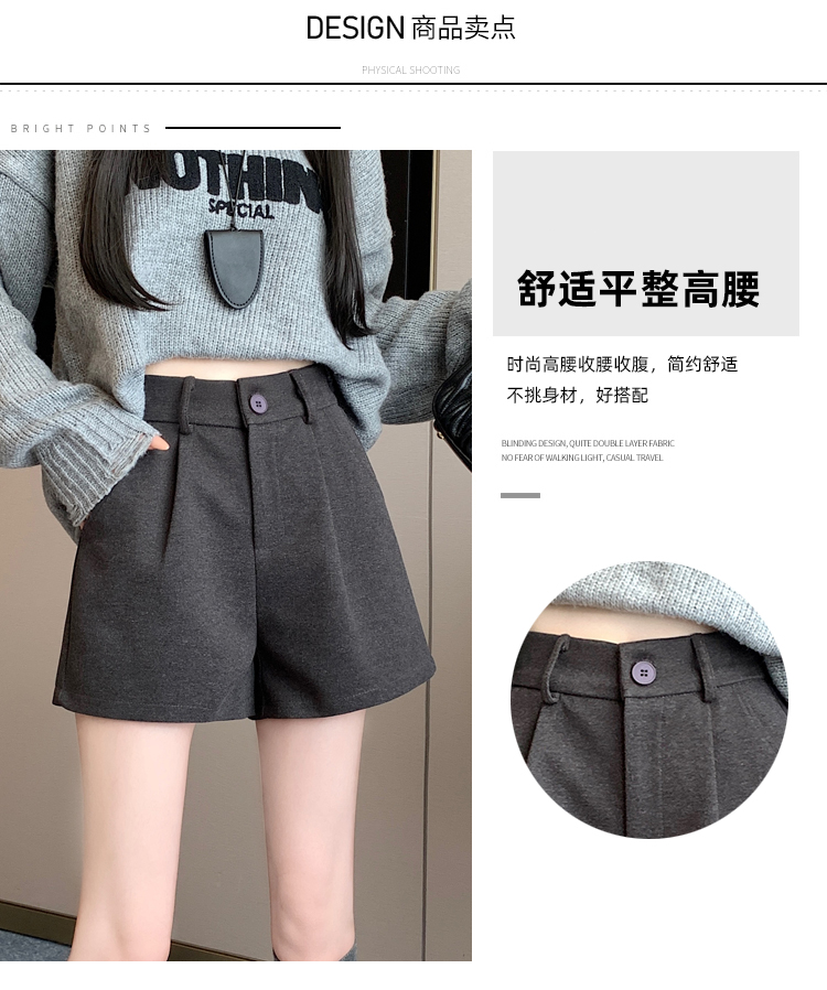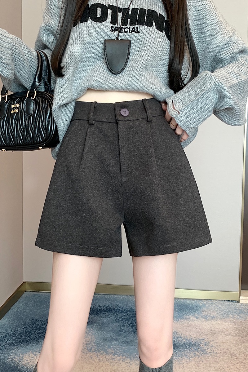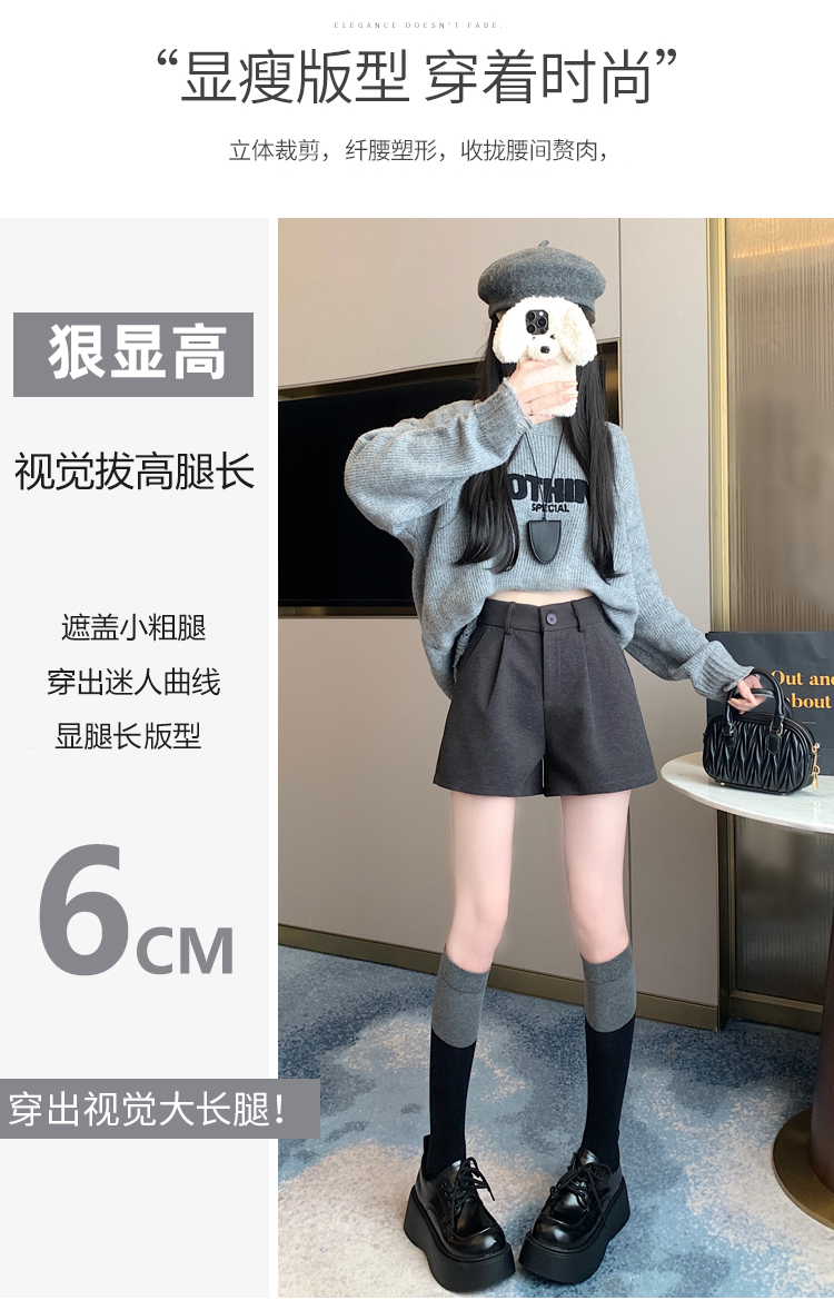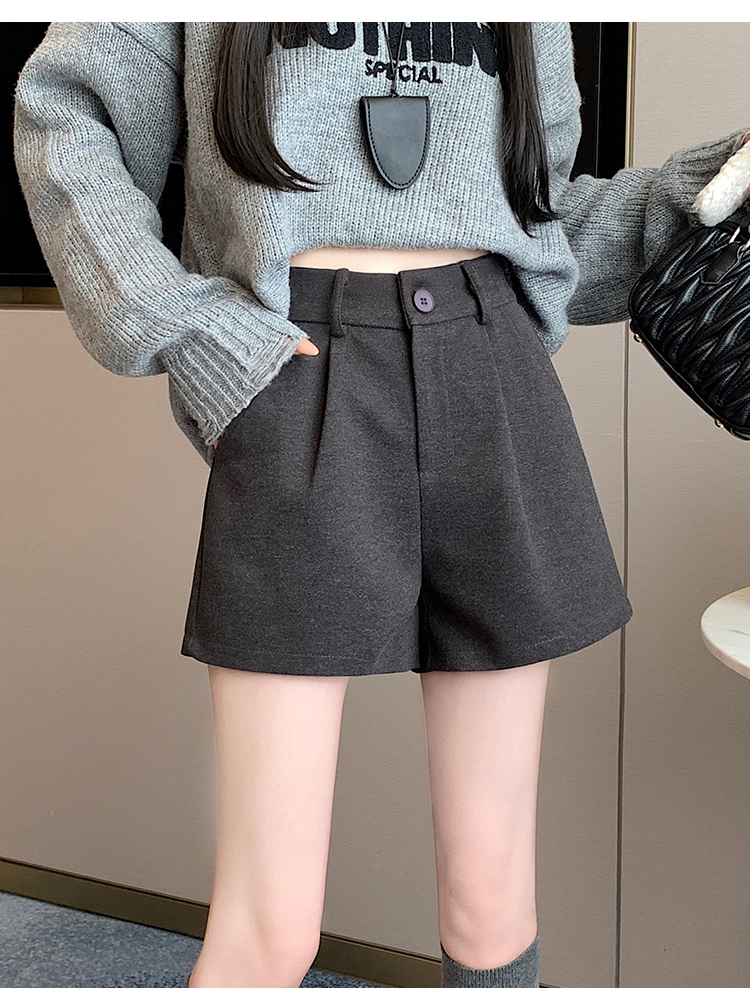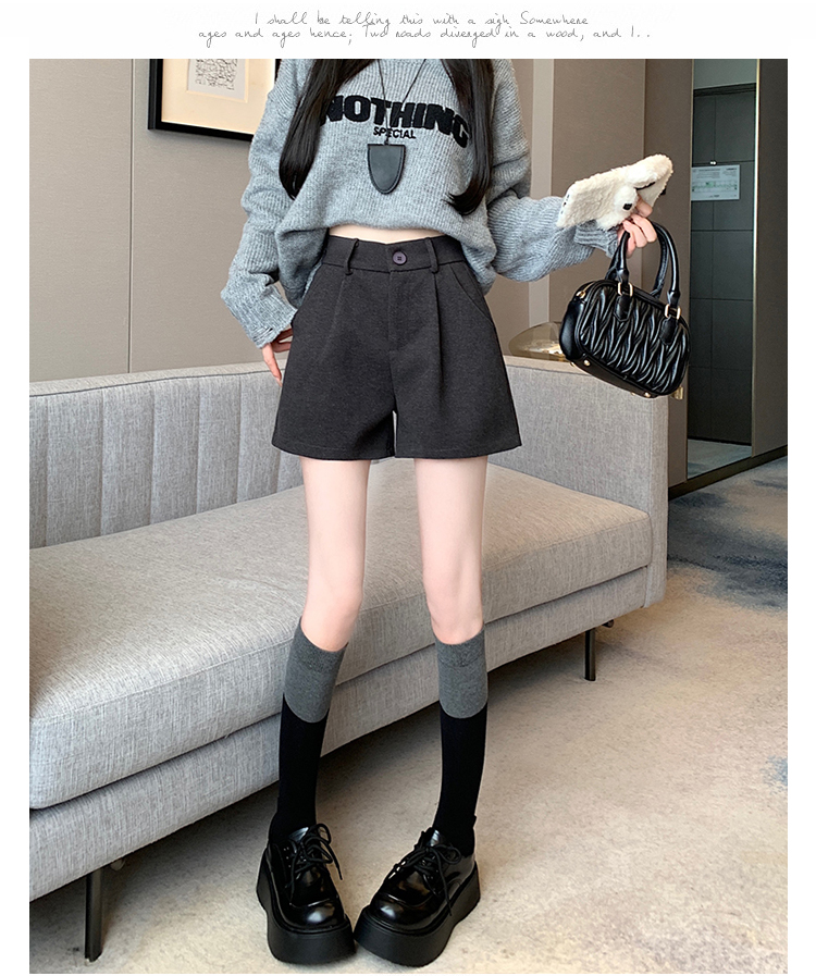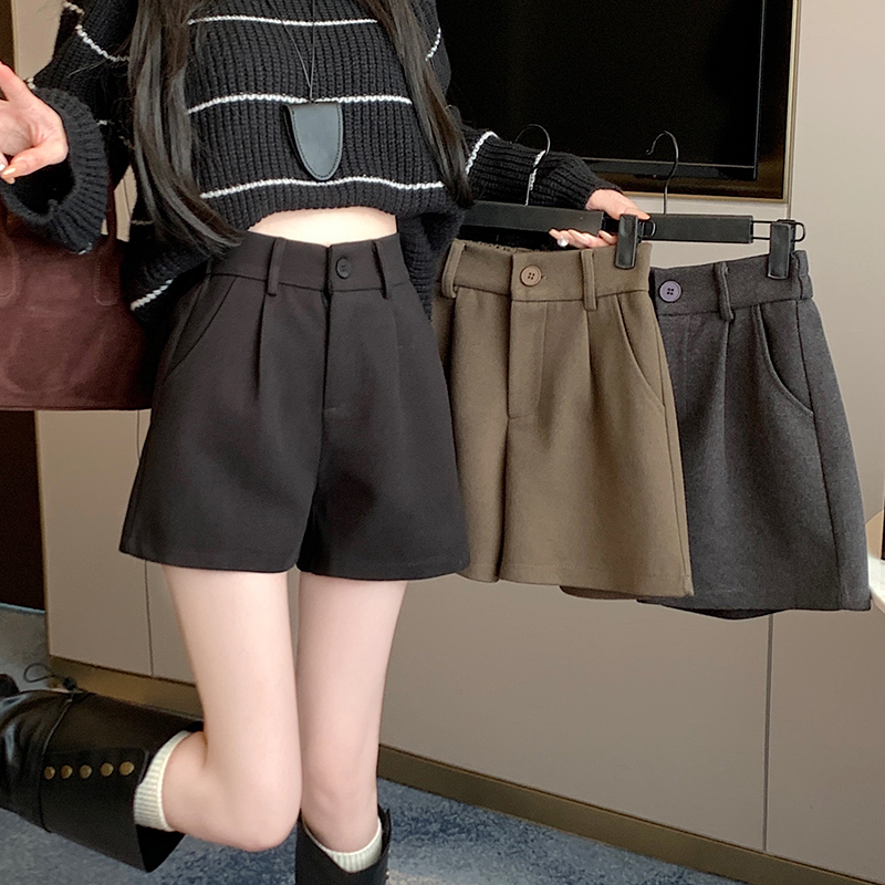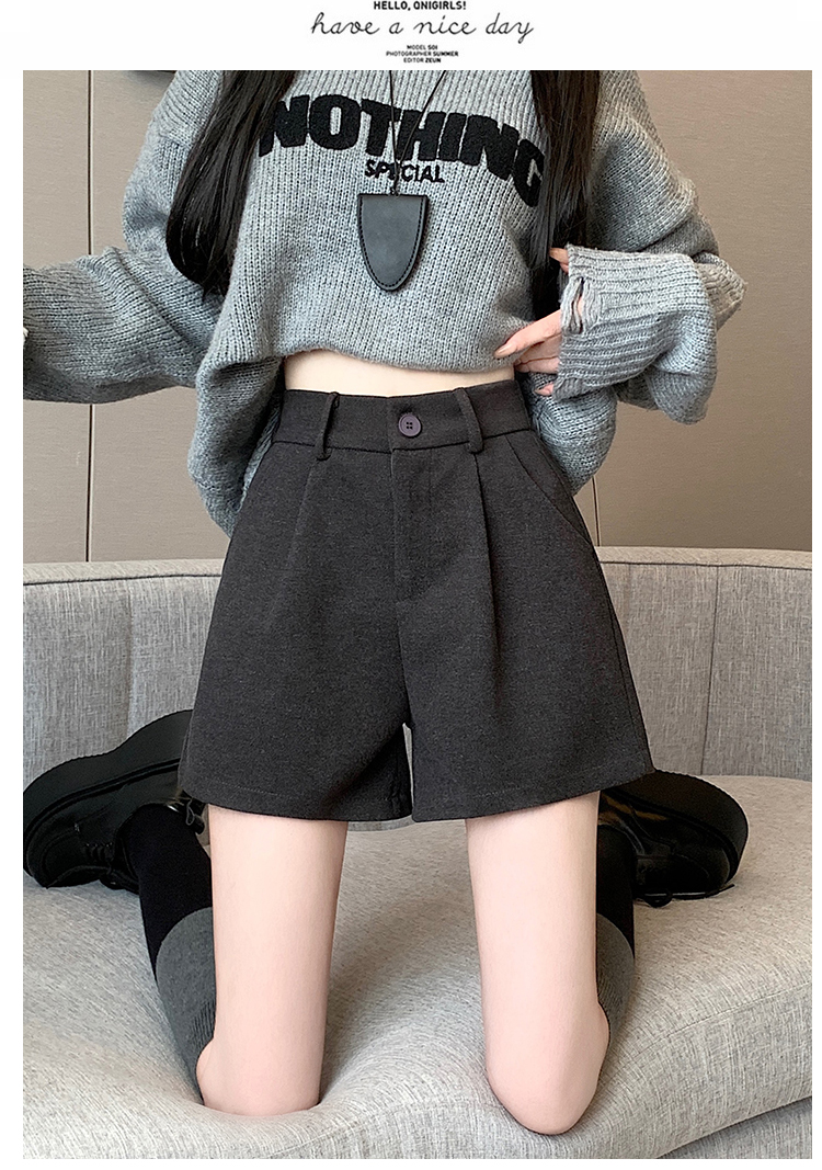 MY15977# 灰色呢料短裤新款阔腿高腰显瘦百搭A字外穿毛呢靴裤女裝貨源服裝批發