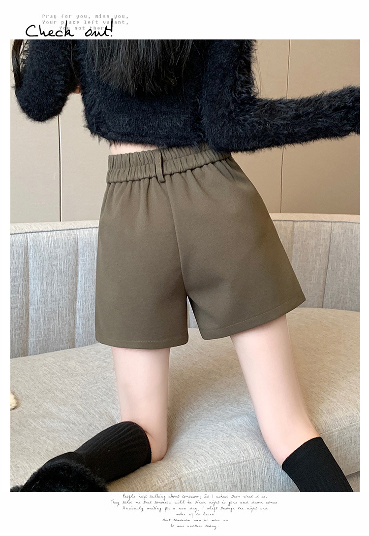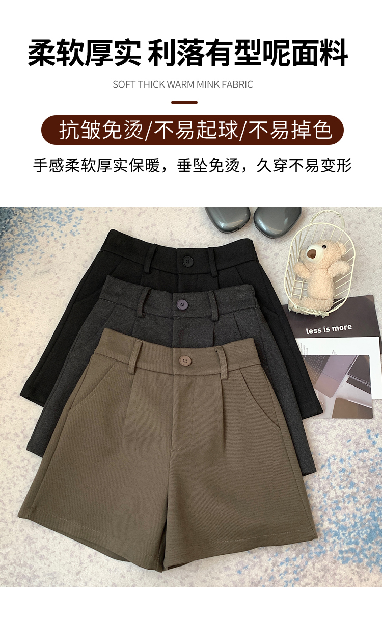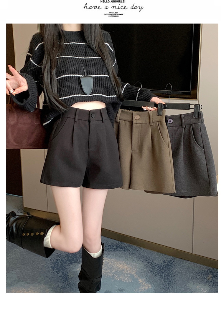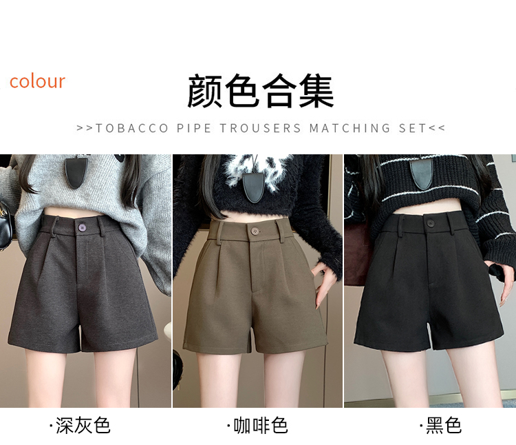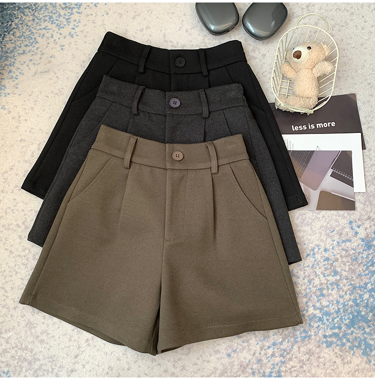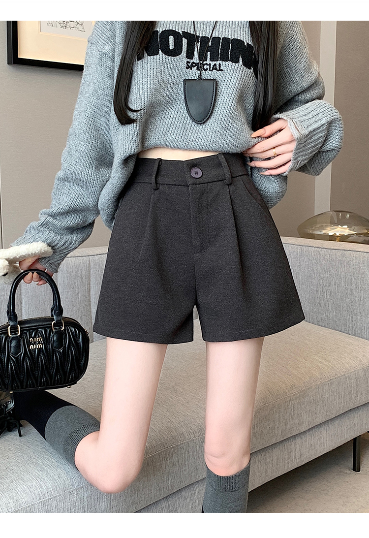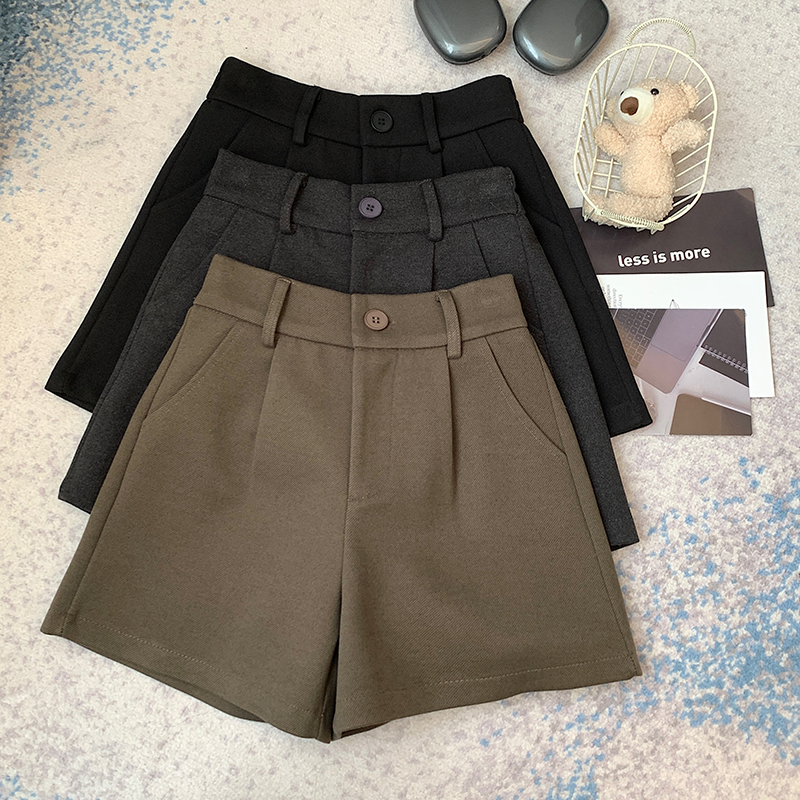 MY15977# 灰色呢料短裤新款阔腿高腰显瘦百搭A字外穿毛呢靴裤女裝貨源服裝批發