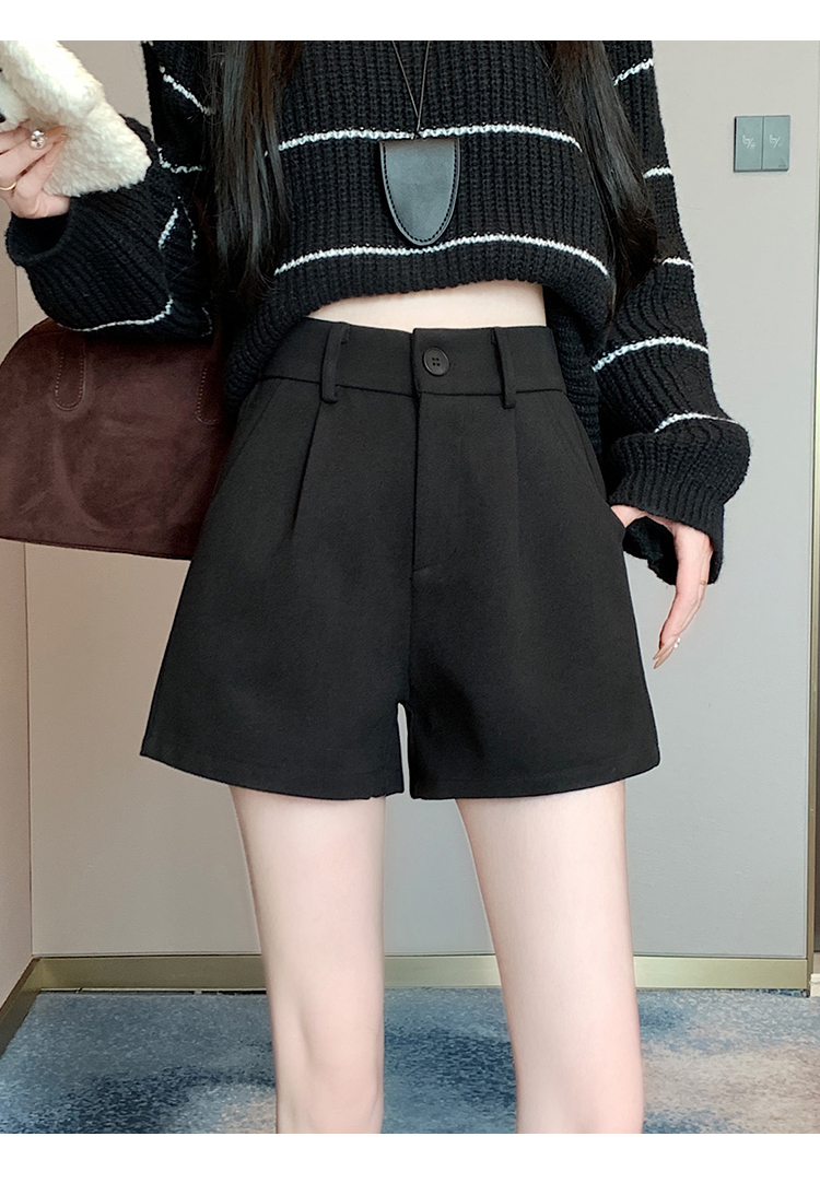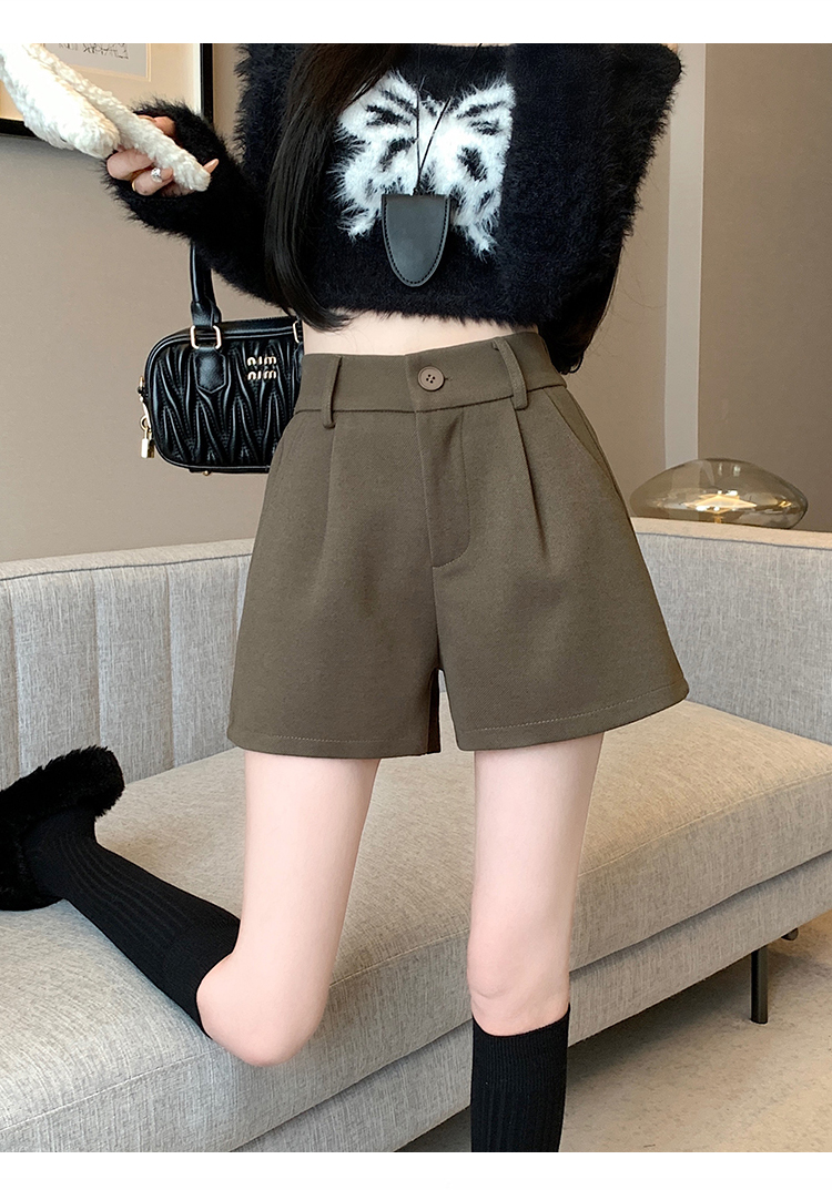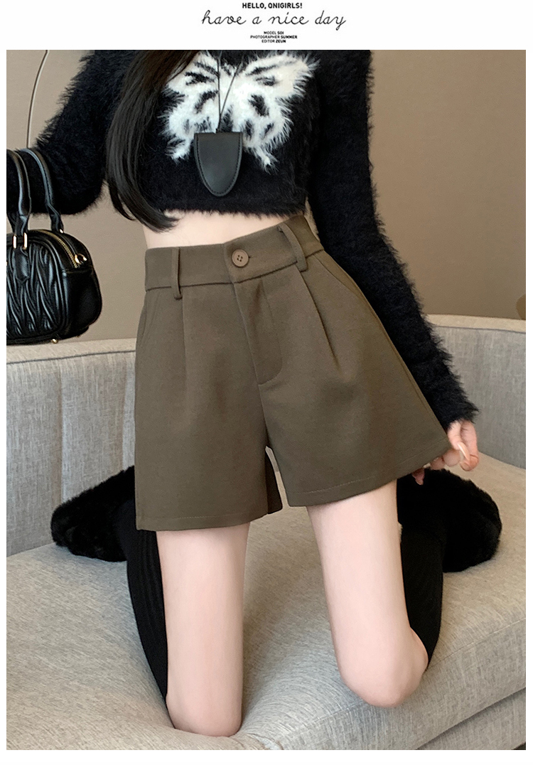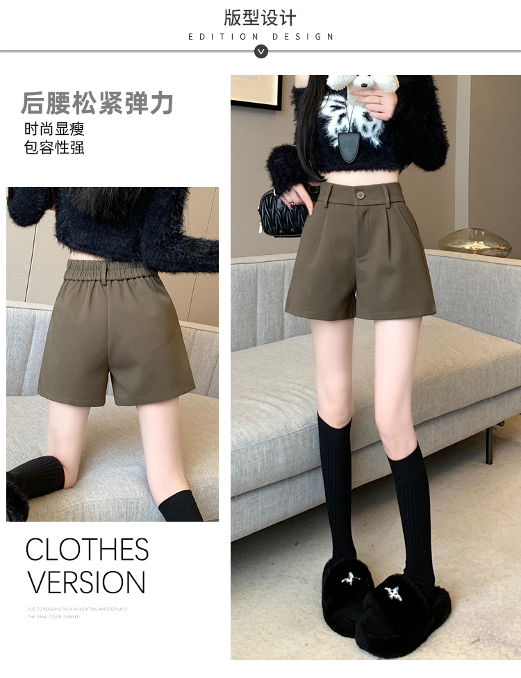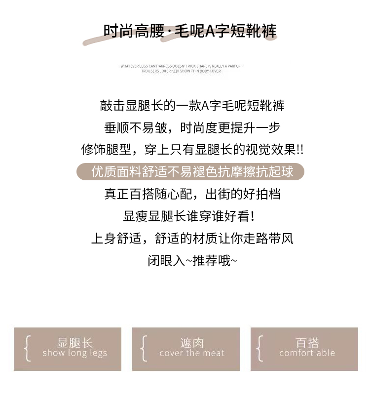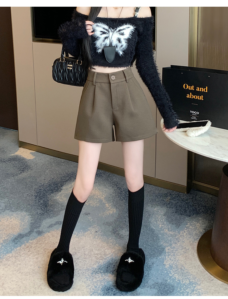 MY15977# 灰色呢料短裤新款阔腿高腰显瘦百搭A字外穿毛呢靴裤女裝貨源服裝批發