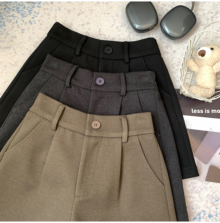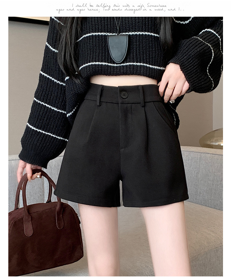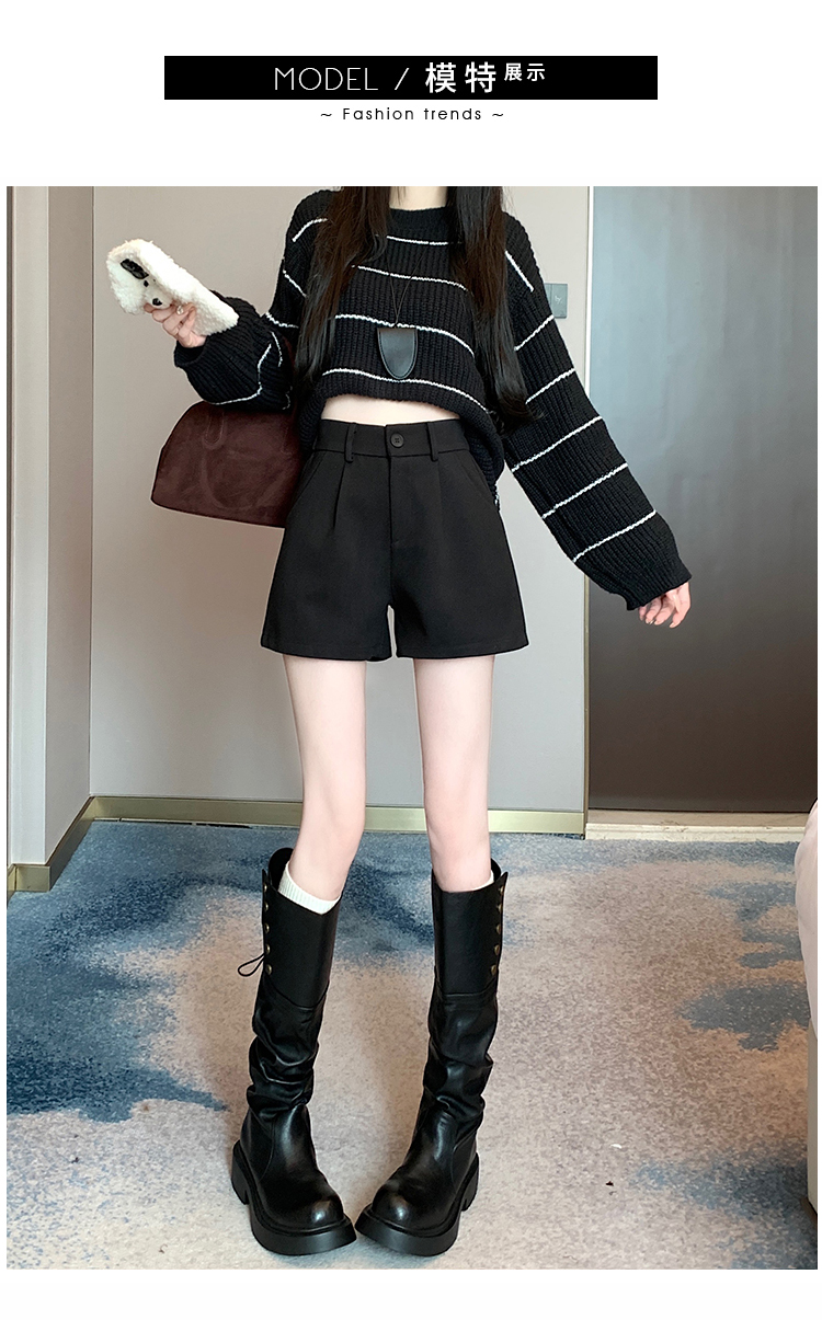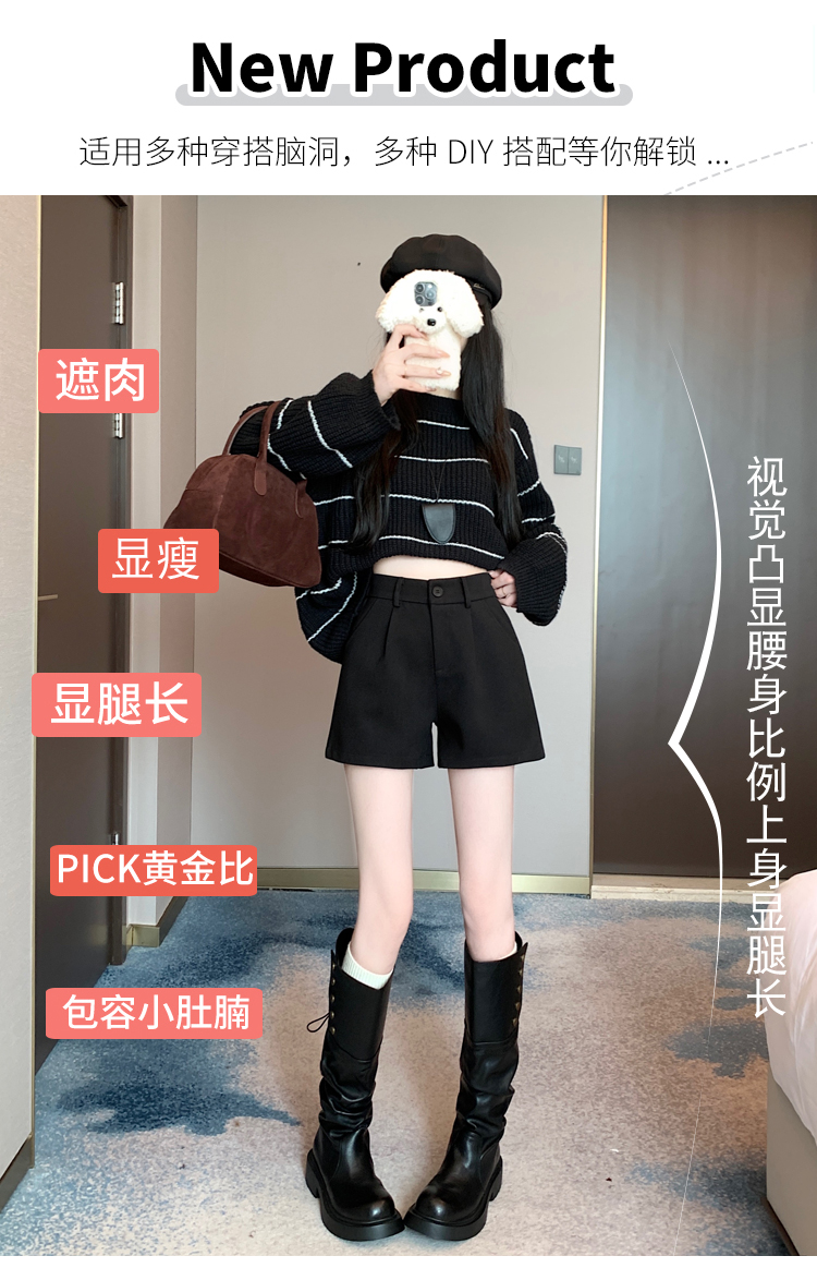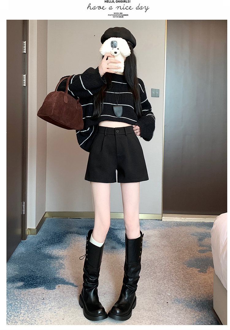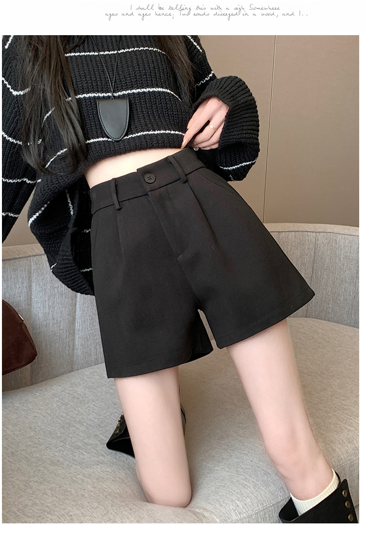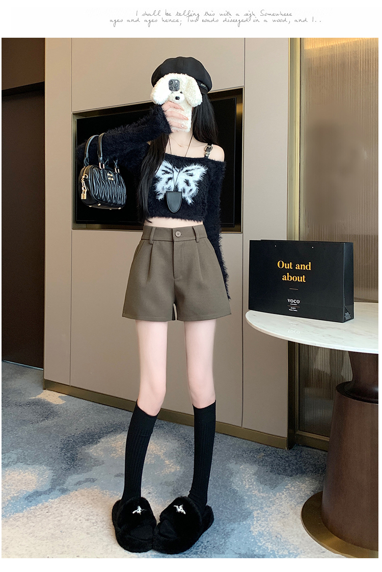 MY15977# 灰色呢料短裤新款阔腿高腰显瘦百搭A字外穿毛呢靴裤女裝貨源服裝批發