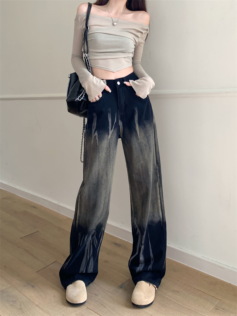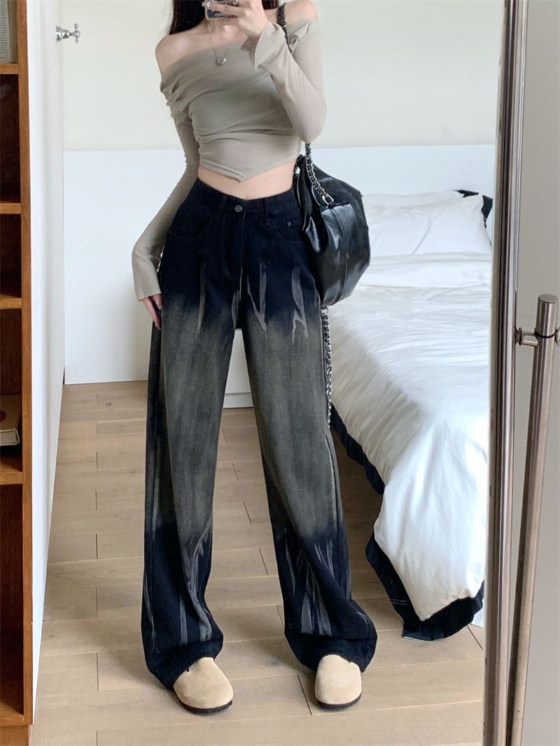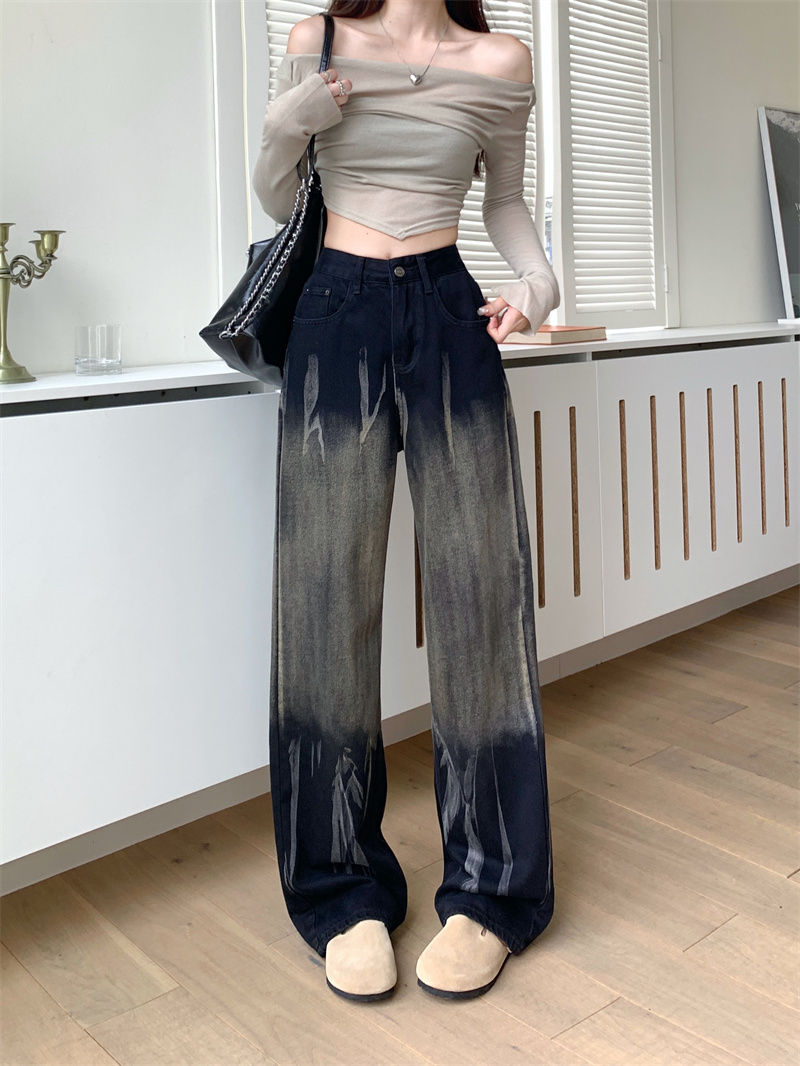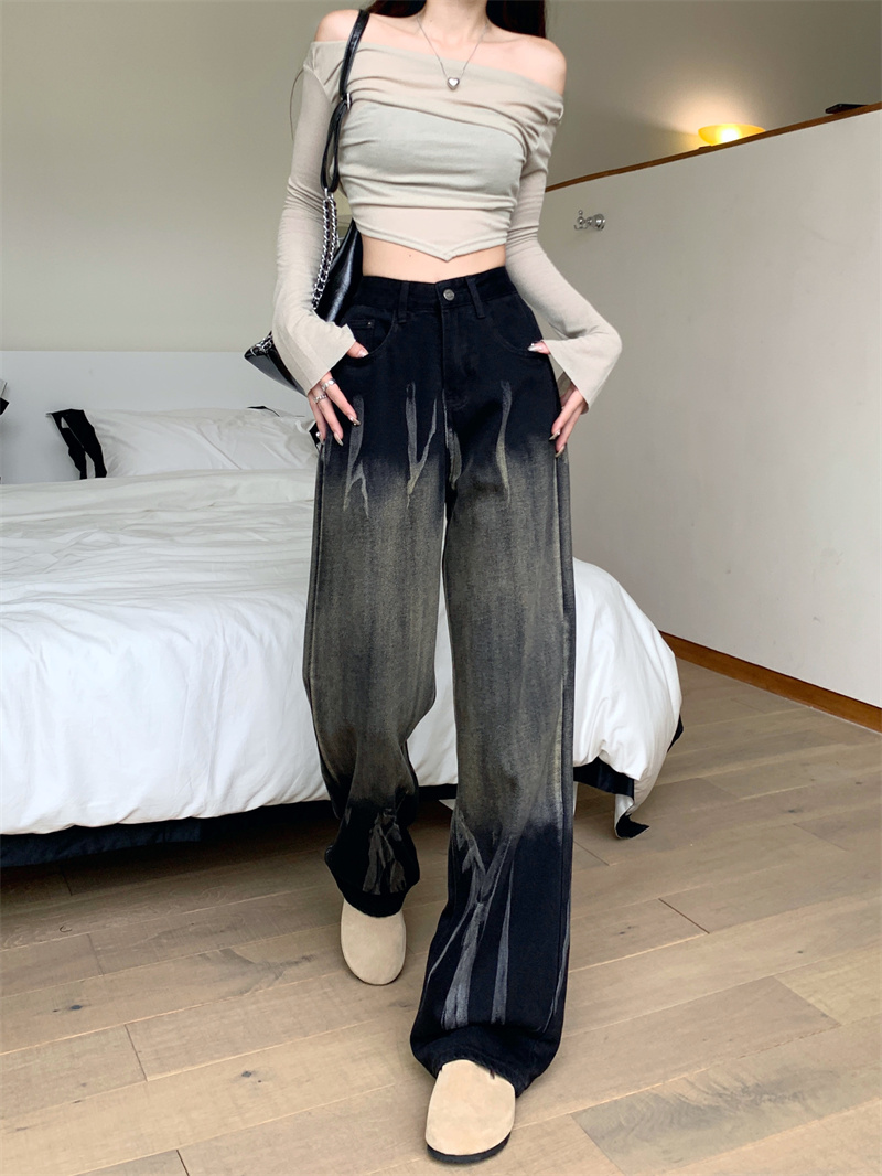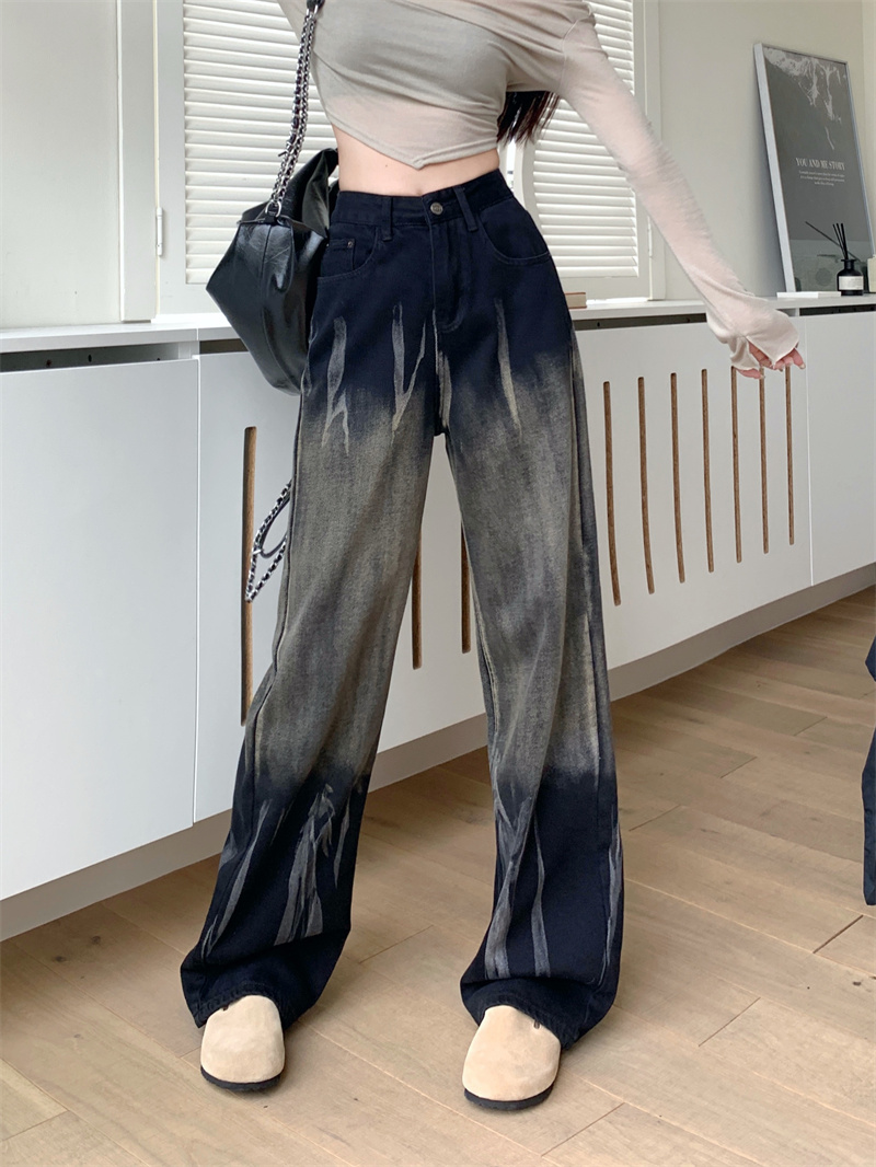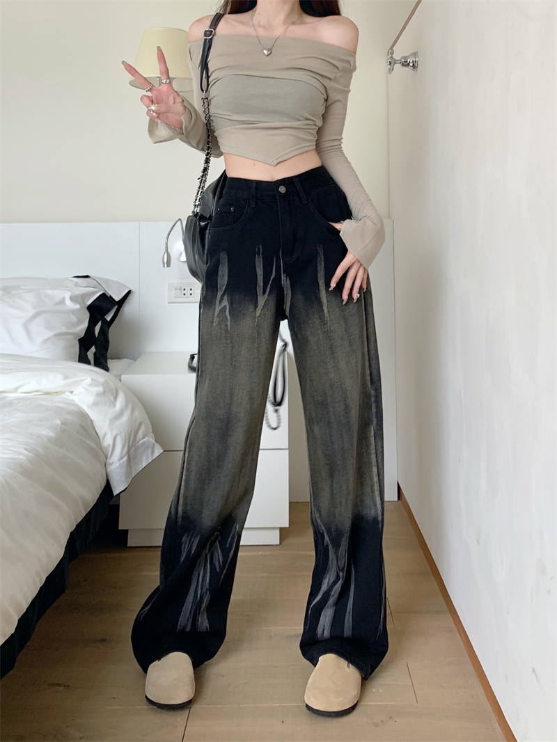 MY15996# 渐变色直筒牛仔裤女装新款高腰显瘦高街潮阔腿裤子女裝貨源服裝批發