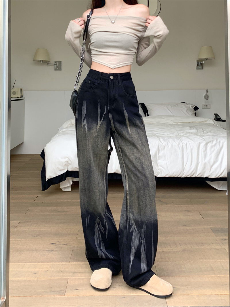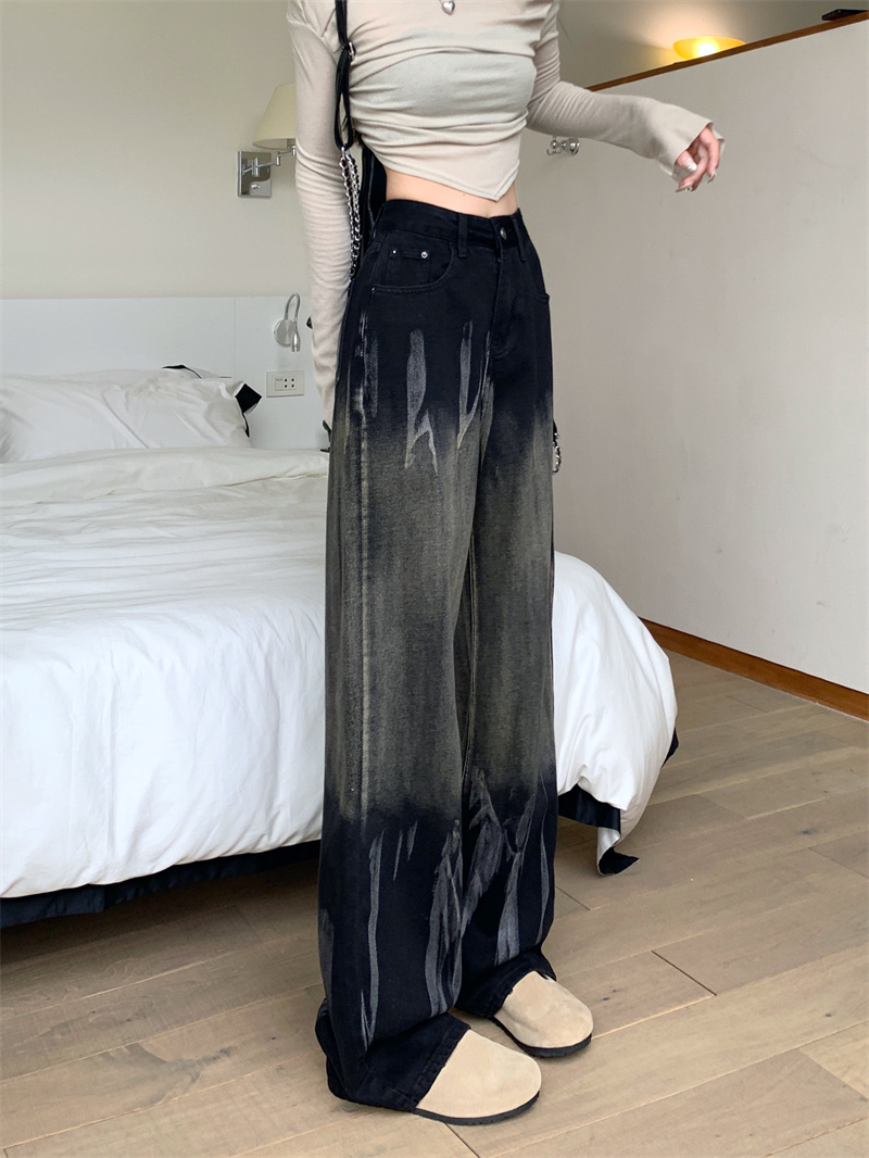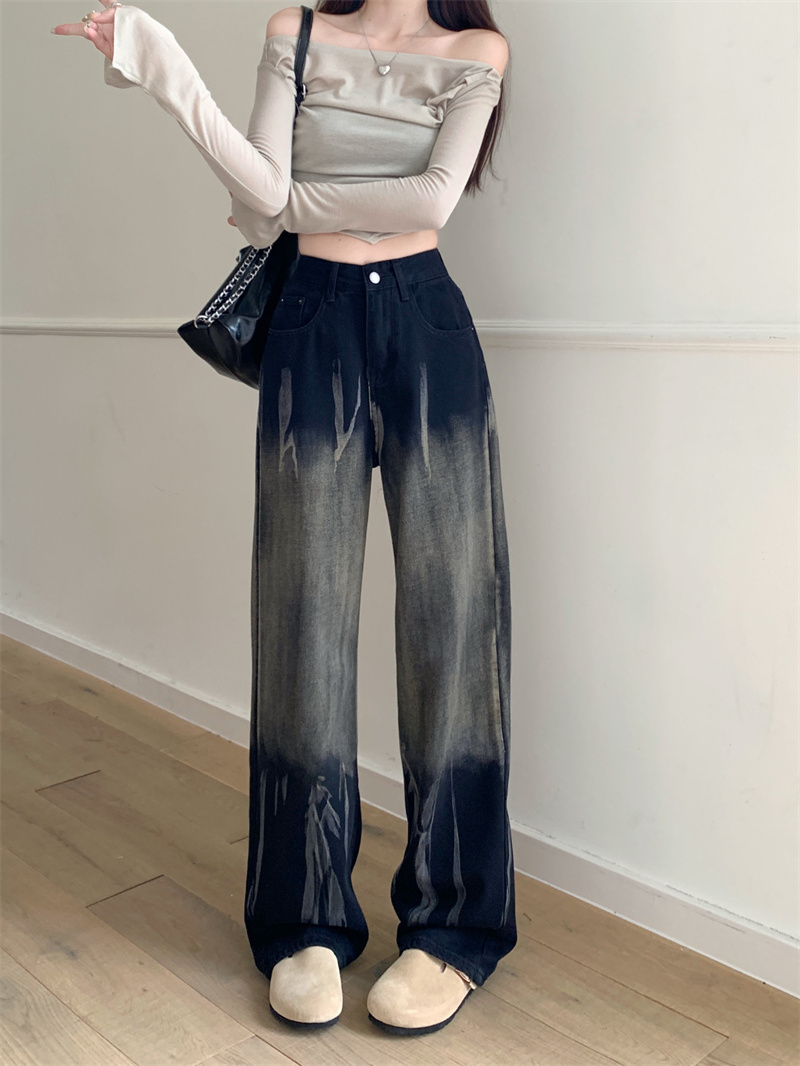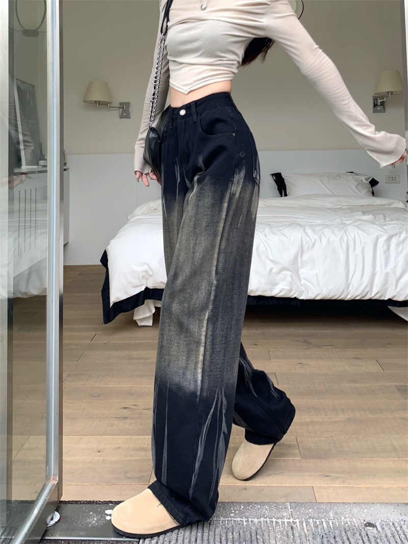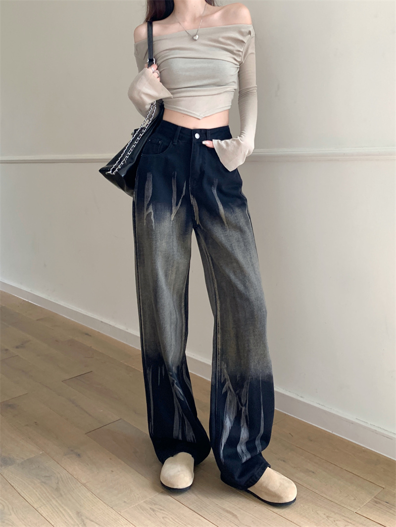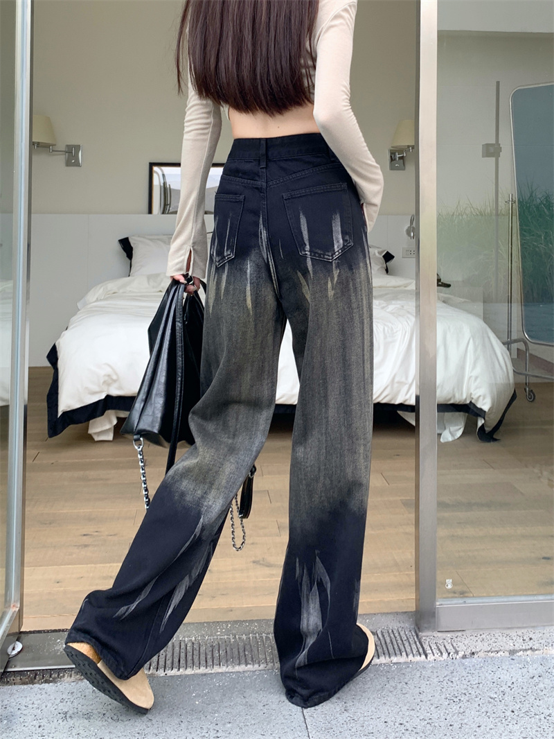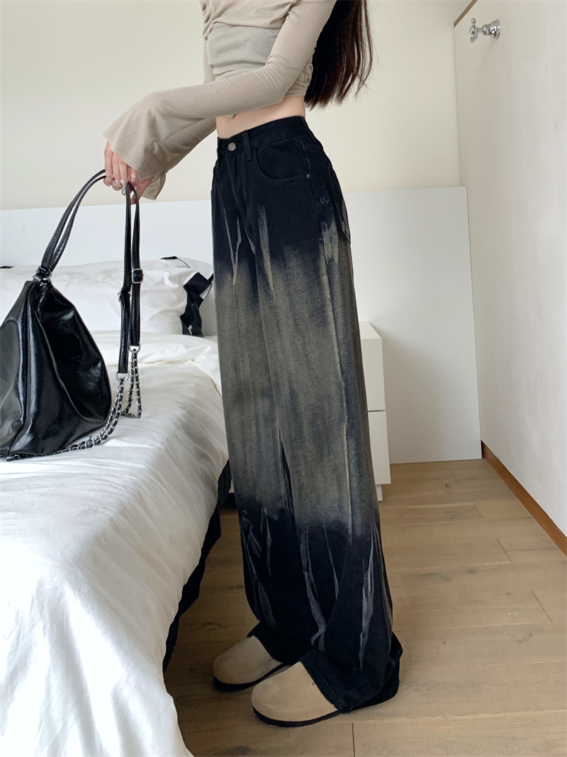 MY15996# 渐变色直筒牛仔裤女装新款高腰显瘦高街潮阔腿裤子女裝貨源服裝批發