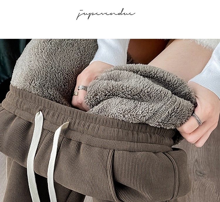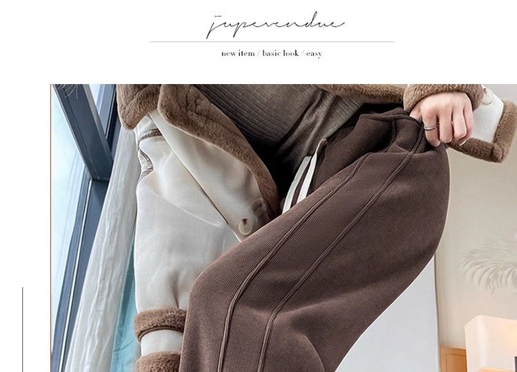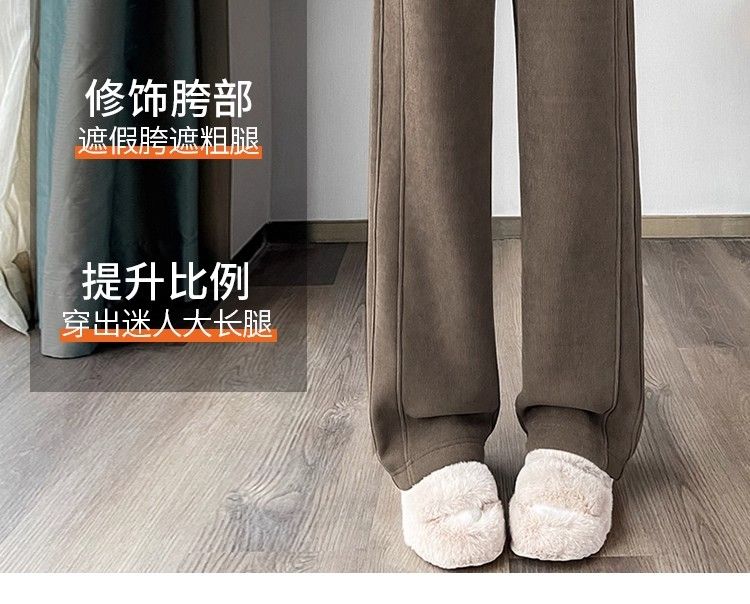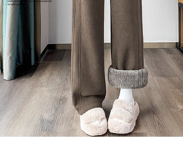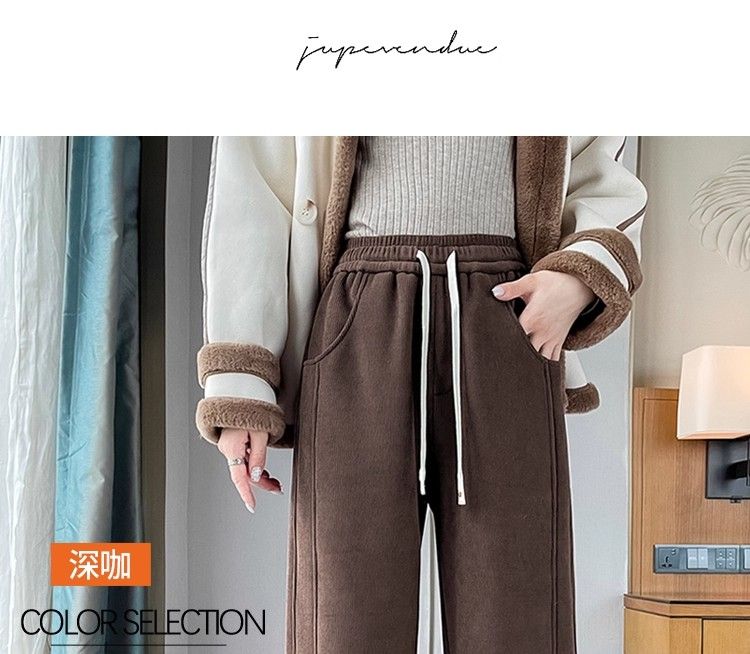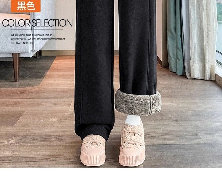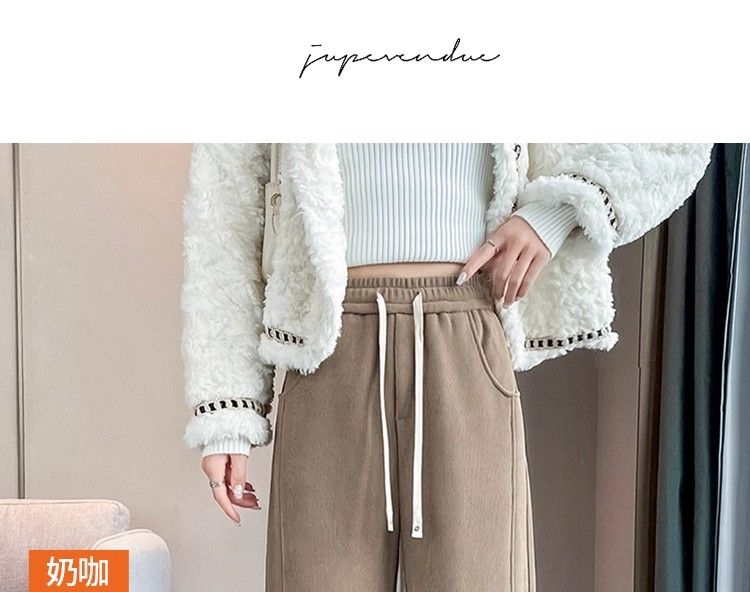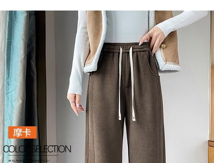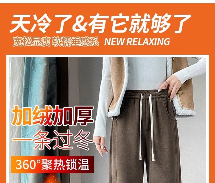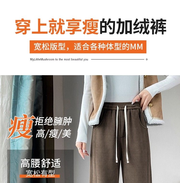 MY16047# 加绒加厚运动裤女大码窄版直筒垂感裤子羊羔绒外穿防风棉裤潮女裝貨源服裝批發