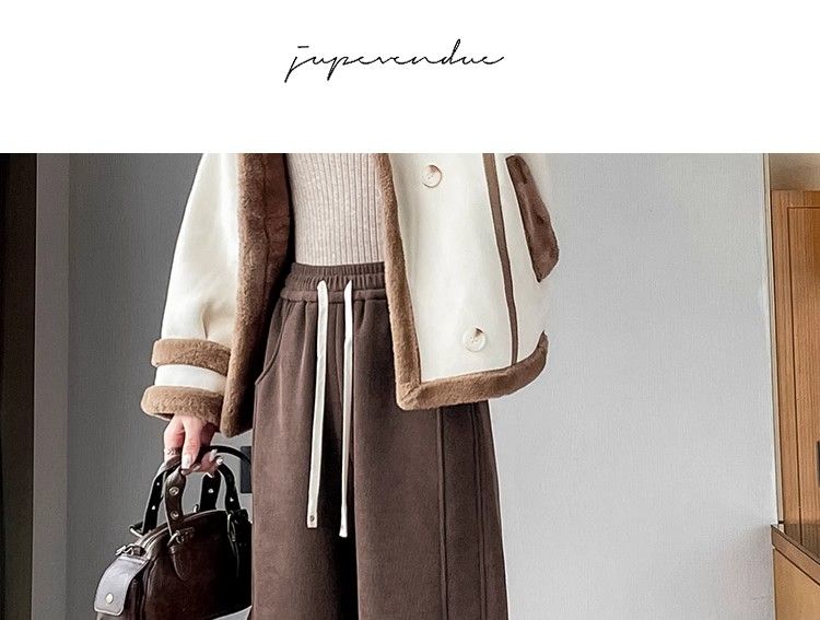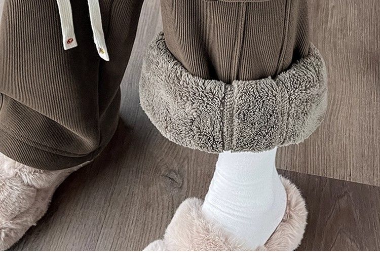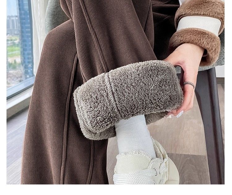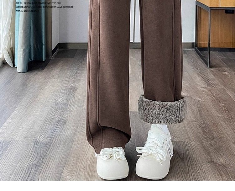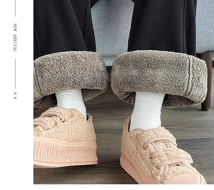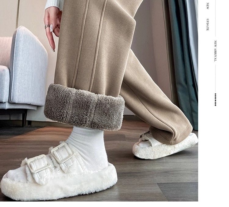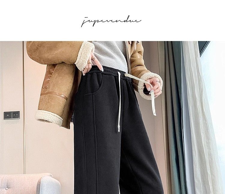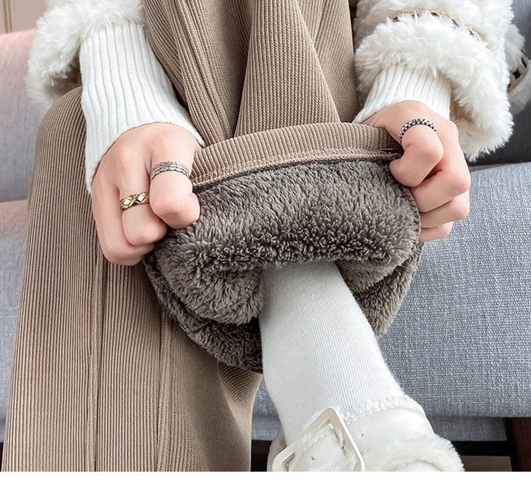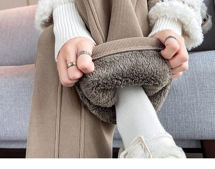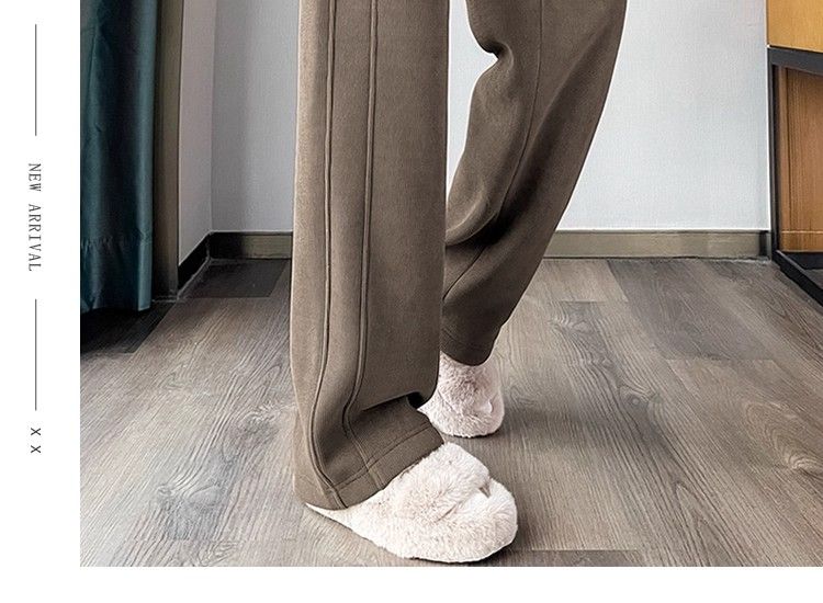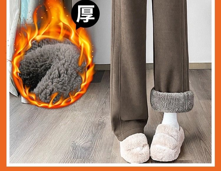 MY16047# 加绒加厚运动裤女大码窄版直筒垂感裤子羊羔绒外穿防风棉裤潮女裝貨源服裝批發